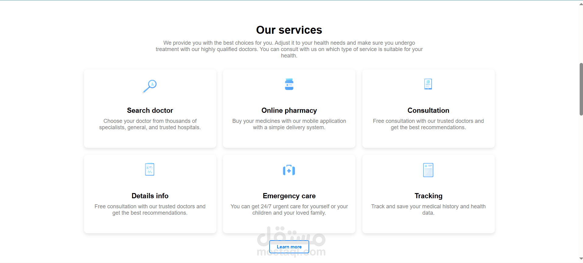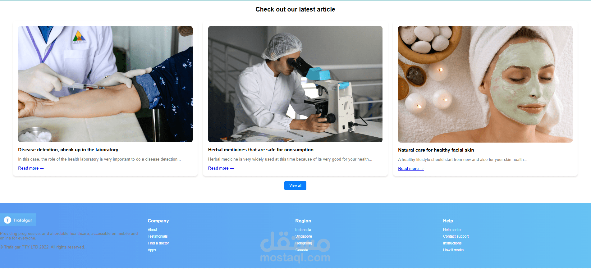 قمت بتصميم صفحة ويب احترافية وجذابة لخدمة رعاية صحية افتراضية متكاملة. يهدف التصميم إلى توفير تجربة مستخدم سلسة ومريحة للوصول إلى مختلف الخدمات الصحية عن بعد. تتميز الصفحة بتصميم عصري ونظيف مع استخدام ألوان مريحة للعين ورسوم توضيحية عالية الجودة تجسد الخدمات المقدمة بشكل واضح وجذاب. تشمل الخدمات المعروضة: البحث عن أطباء متخصصين وحجز المواعيد، صيدلية إلكترونية مع خدمة توصيل الأدوية، استشارات طبية عن بعد، رعاية عاجلة، وفحوصات مخبرية وتصوير. تم التركيز في التصميم على سهولة الوصول إلى المعلومات وأزرار واضحة للحث على اتخاذ إجراء. يعكس التصميم العام احترافية وموثوقية الخدمة، مما يساهم في جذب المزيد من المستخدمين وتعزيز علامتهم التجارية في مجال الرعاية الصحية الرقمية، كما تمت إضافة بعض المقالات التي تم نشرها حديثا والمختصة بمجال الرعاية الصحية التي تقدمها الخدمة.