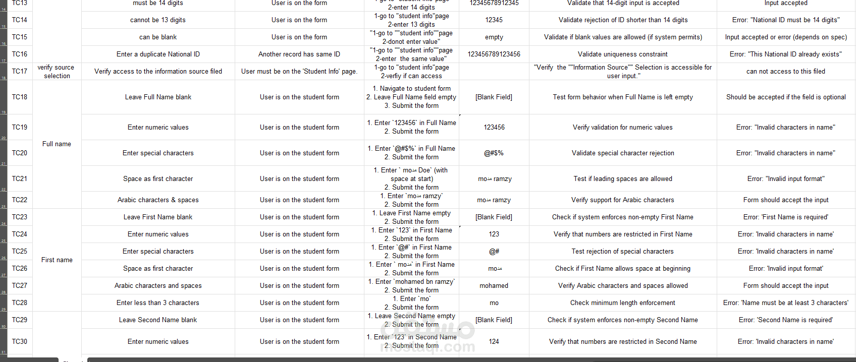 Student Profile Management: Test features like adding, editing, viewing, and deleting student information (name, ID, courses, contact info, etc.).