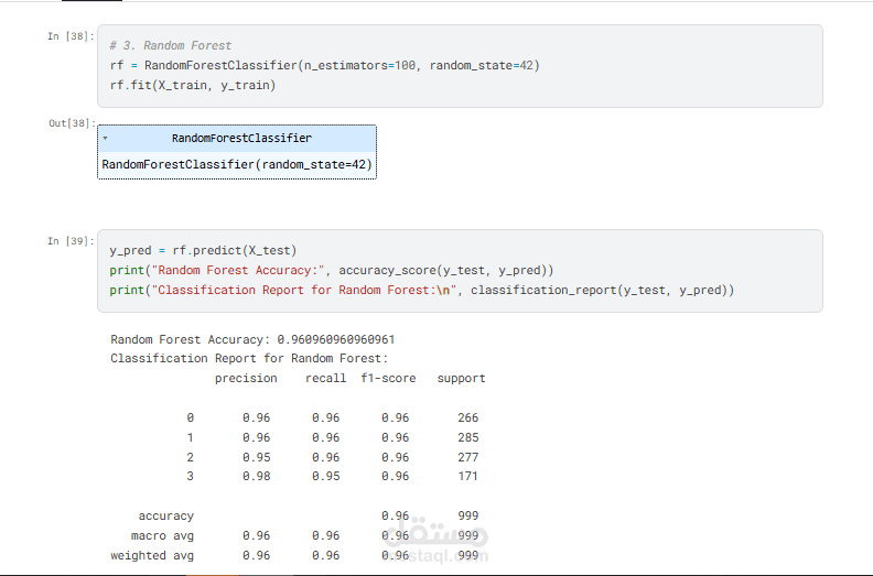 * تدريب عدة نماذج واختيار Random Forest Classifier نظرًا لأدائه المرتفع