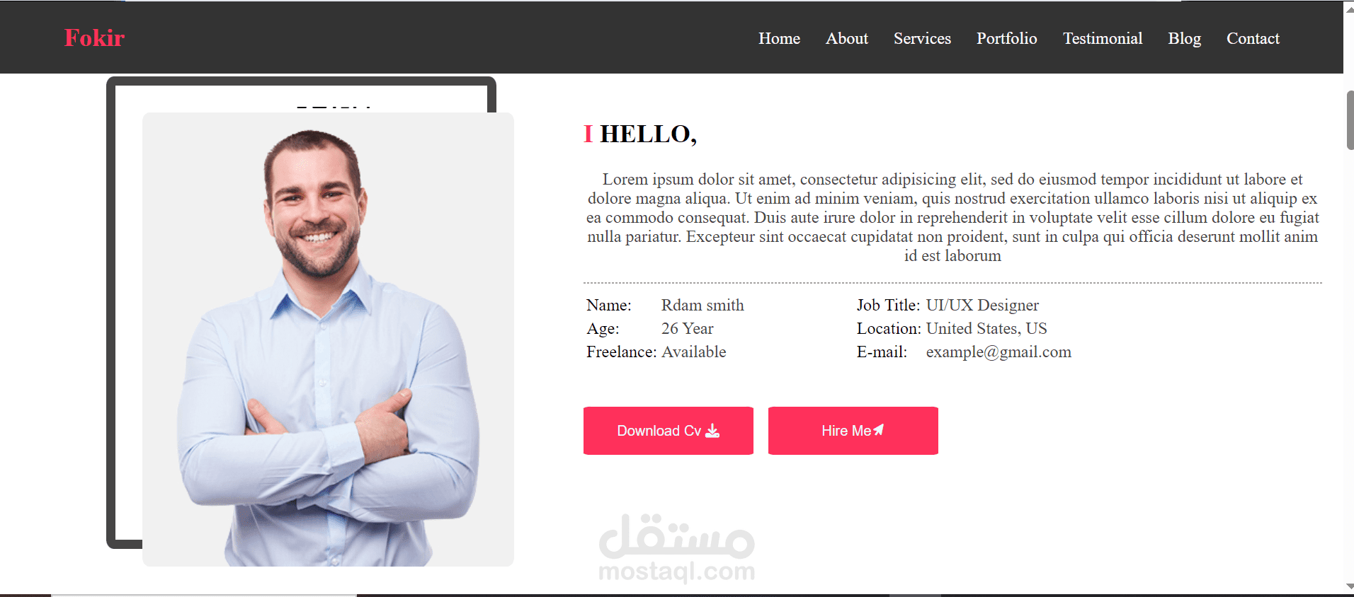The Fokir project is a responsive and modern personal portfolio website template primarily built using HTML, CSS, JavaScript, jQuery, and optionally enhanced with Bootstrap for styling. It is widely used by web developers and designers to showcase their skills, projects, and resume in a clean and interactive format.