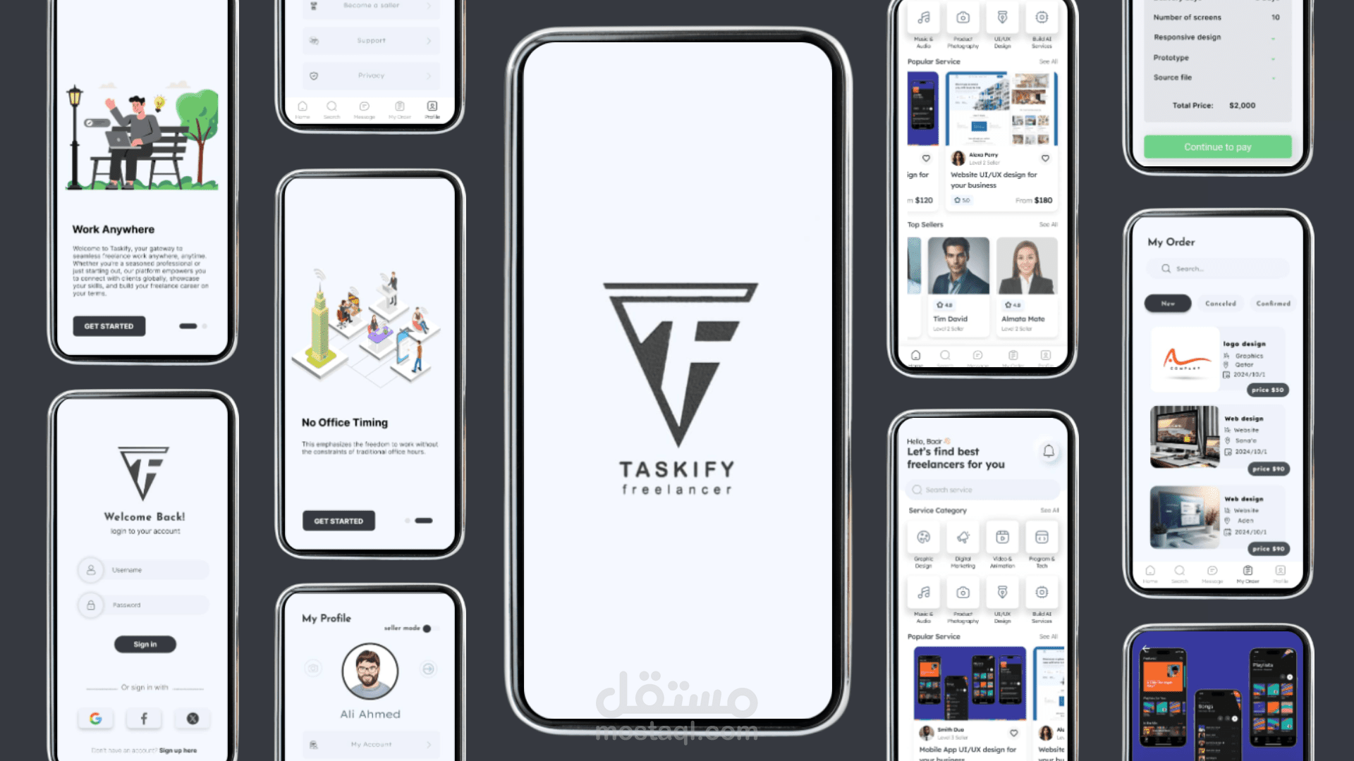 قمت بتطوير تطبيق Taskify كمنصة متكاملة تربط بين المستقلين (Freelancers) وأصحاب المشاريع. يتيح التطبيق للمستخدمين إنشاء حسابات كبائع أو مشتري، استعراض الخدمات، تقديم الطلبات، متابعة الطلبات الجارية، وتقييم المستقلين بشكل احترافي وسهل الاستخدام.