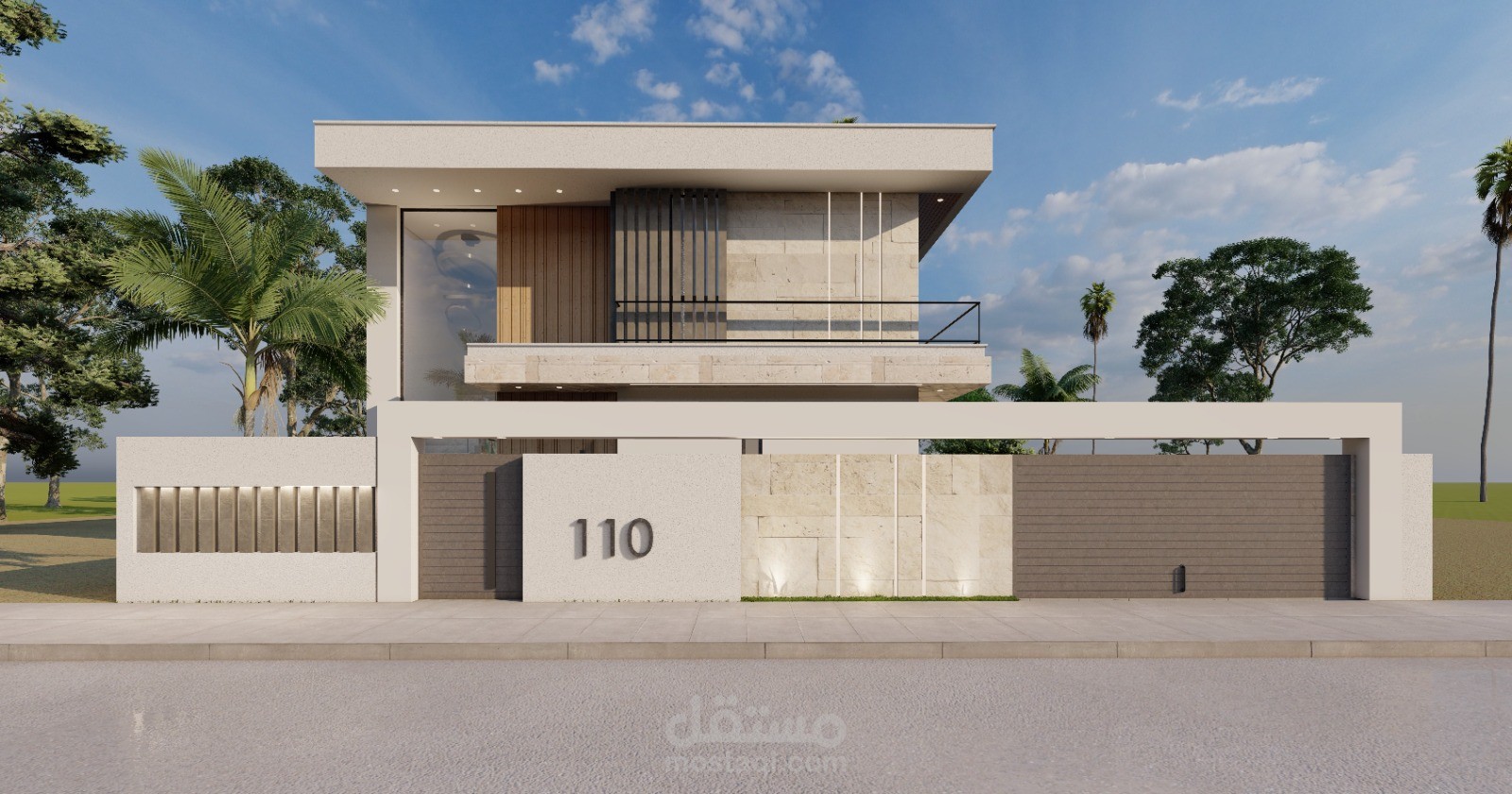 This highly detailed 3D render showcases a stunning luxury villa design that blends modern elegance with timeless charm. Featuring spacious living areas, sleek architectural elements, and beautiful landscaping, the design highlights the villa's open-plan layout and luxurious finishes. The realistic lighting and textures bring the space to life, offering a glimpse into a truly exclusive living experience.