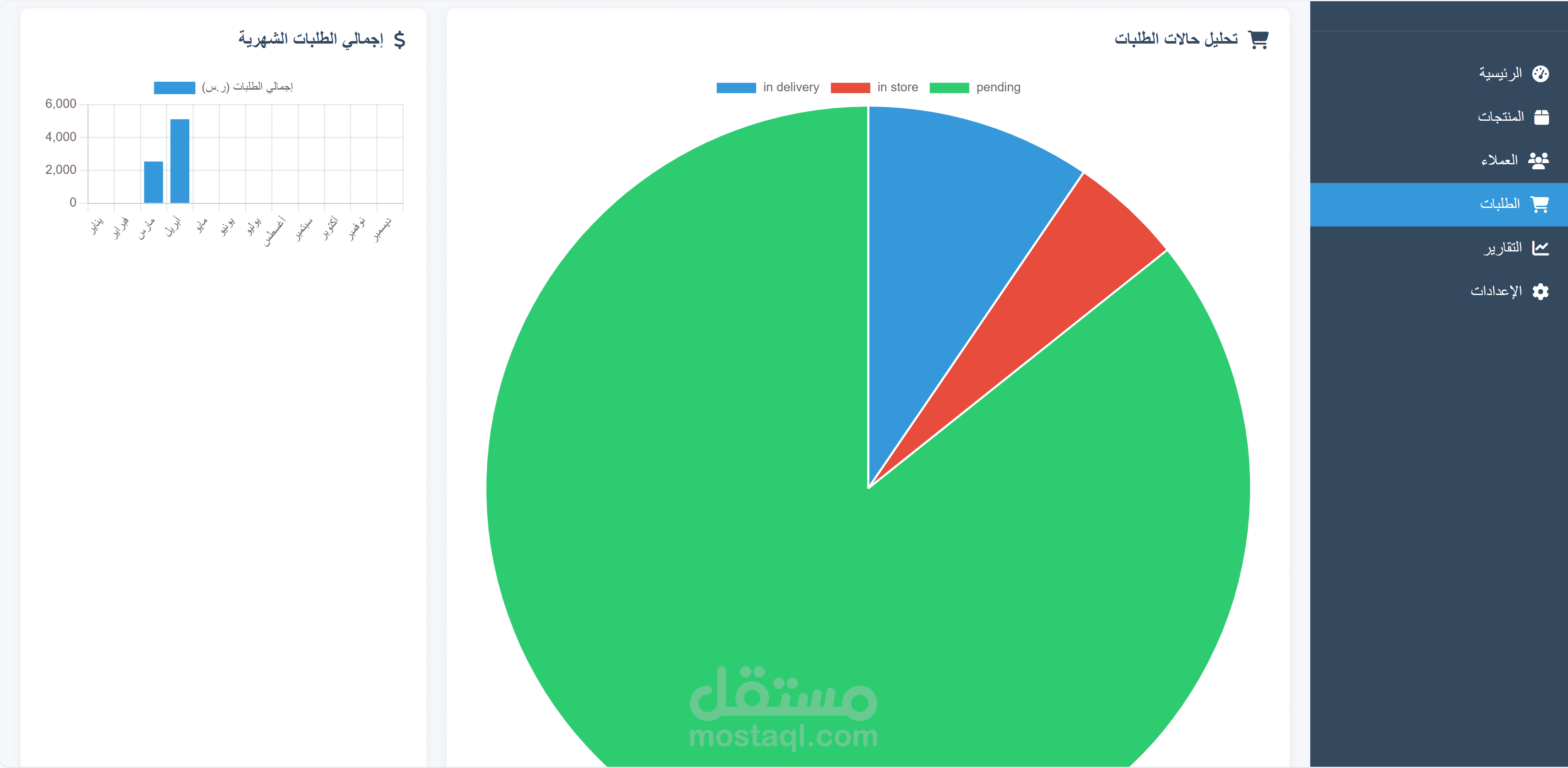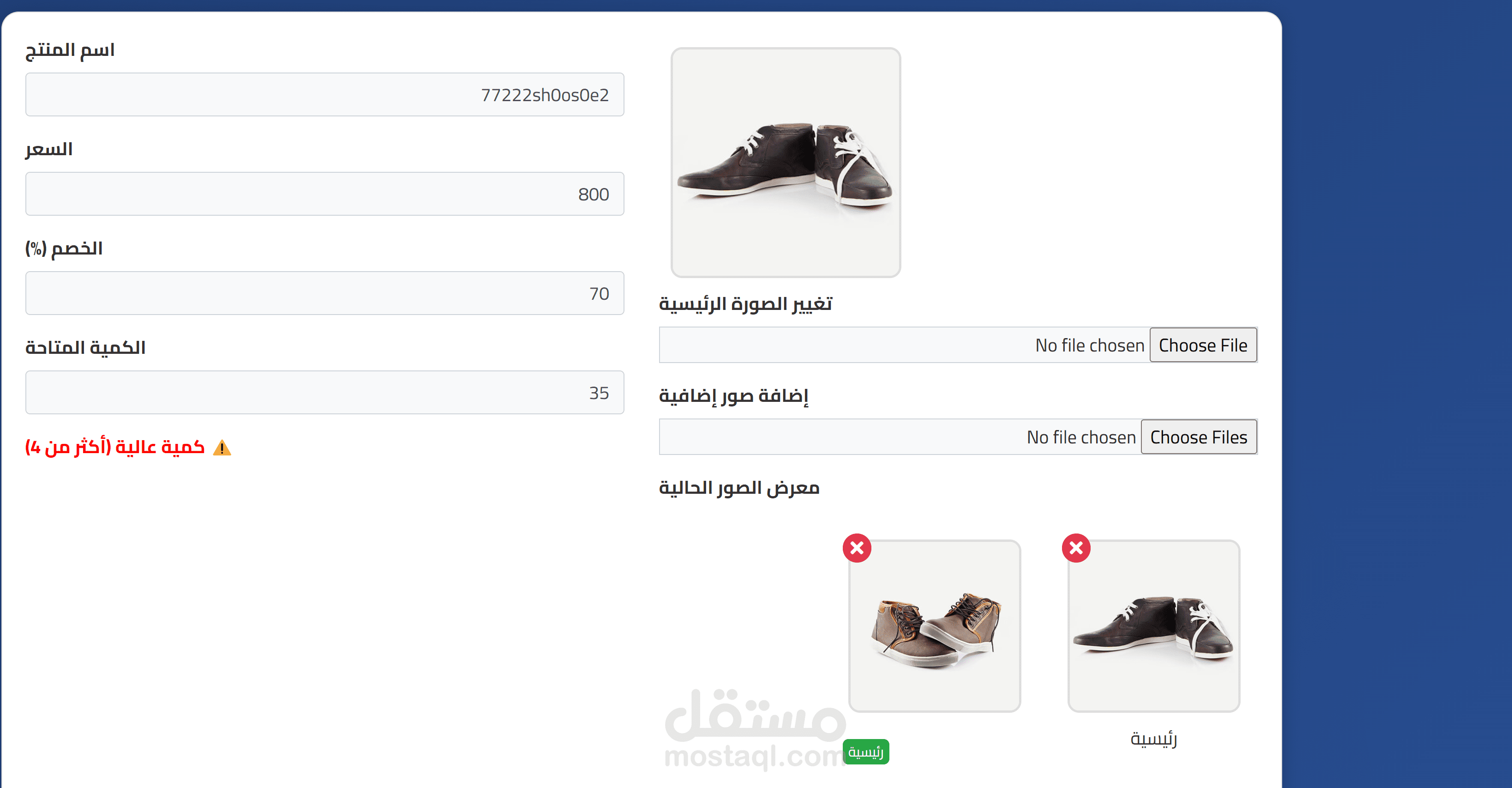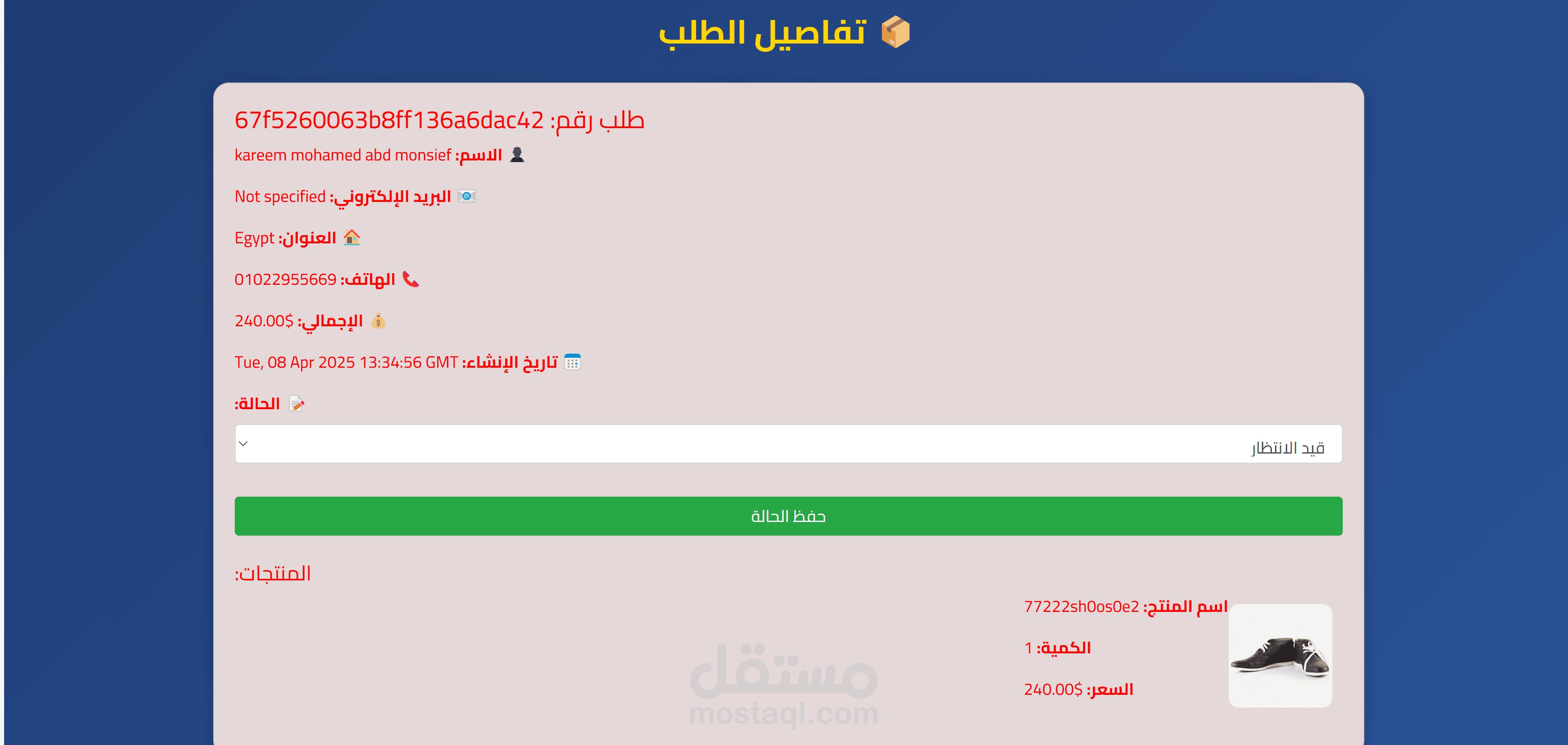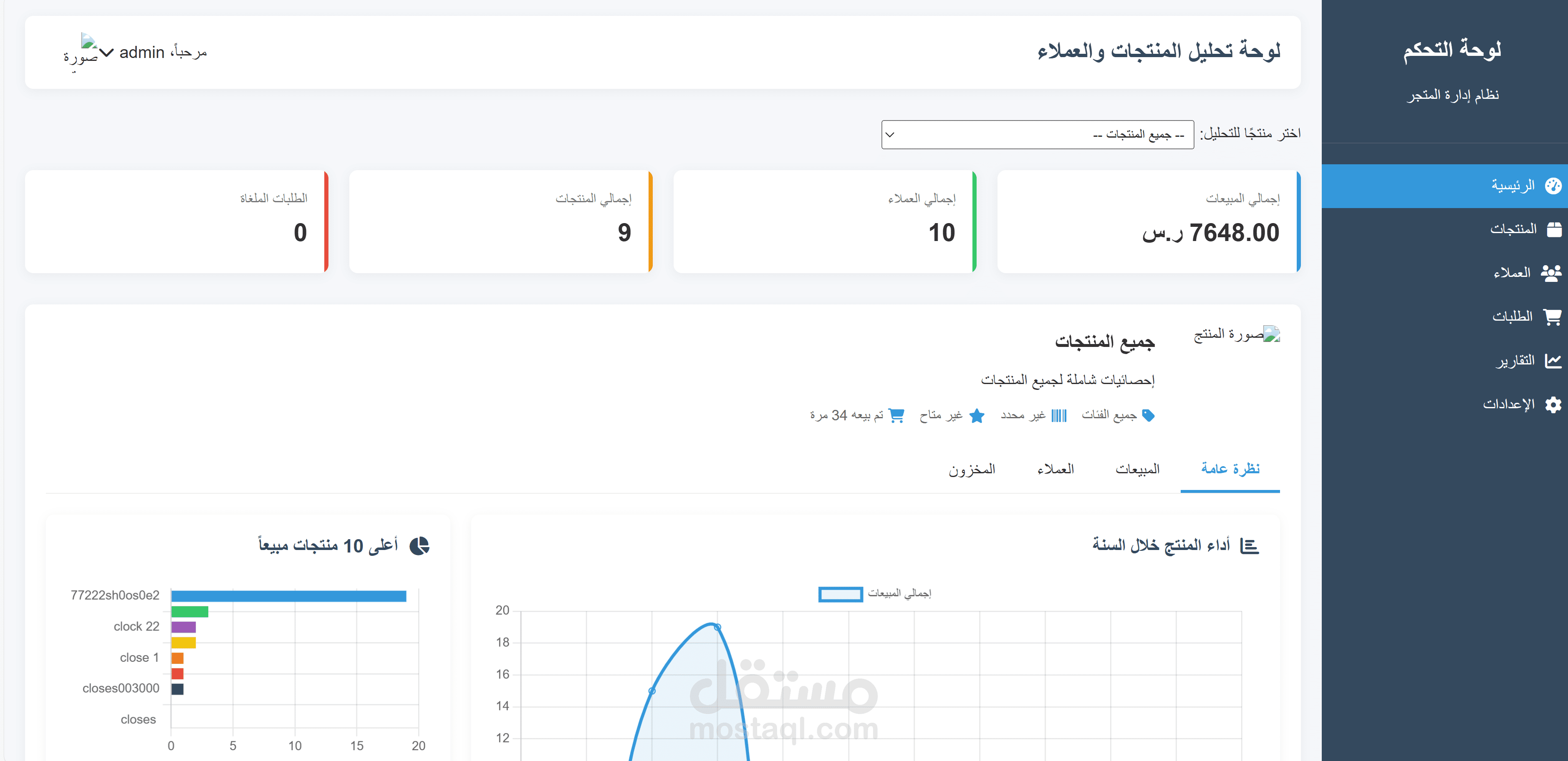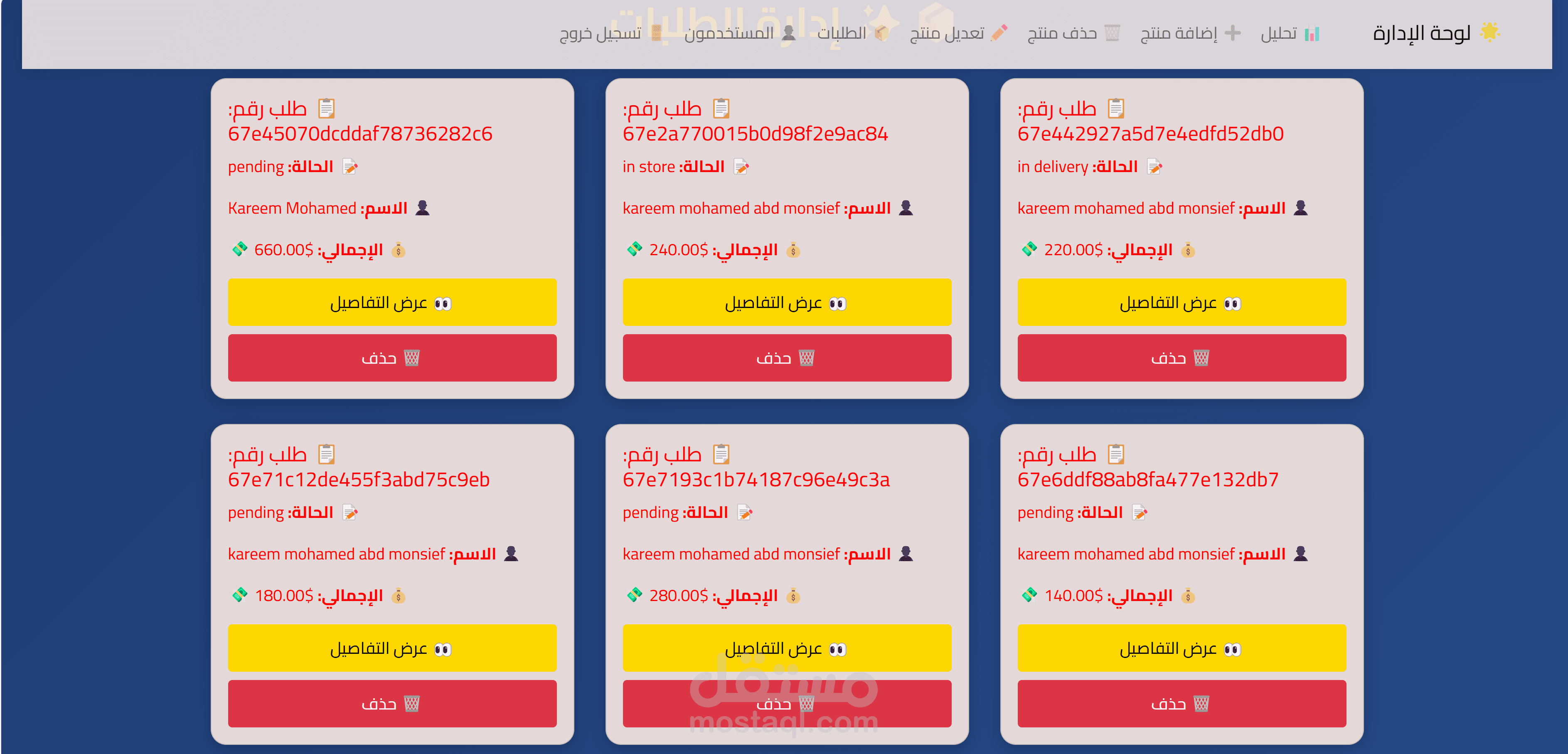 لوحة تحكم إدارية (Admin Dashboard) تُمكن المسؤول من حذف المنتجات أو تحديث حالتها، ومعاينة الشكاوى.