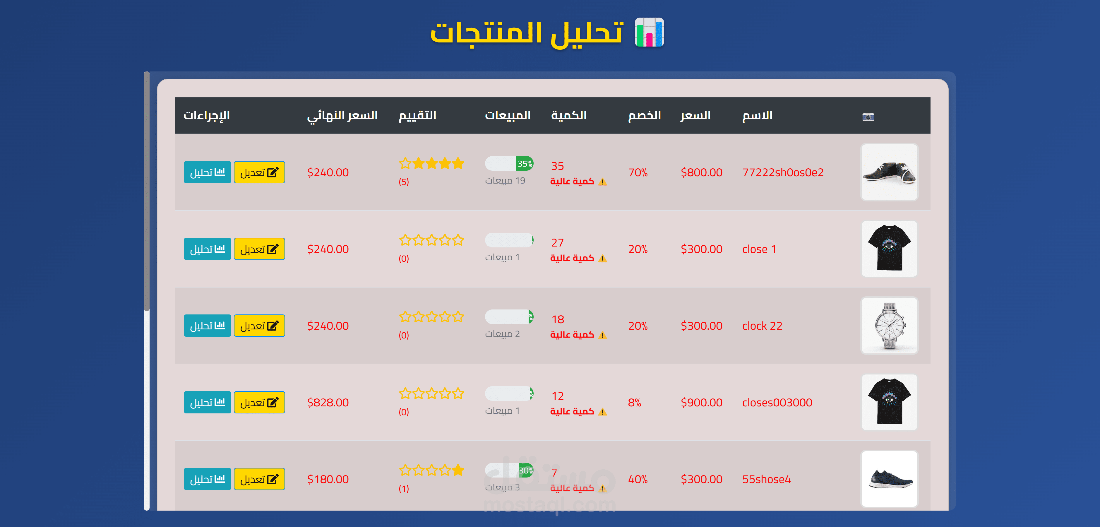 إمكانية تقييم المنتجات (Rating) من 1 إلى 5 مع كتابة تعليق.