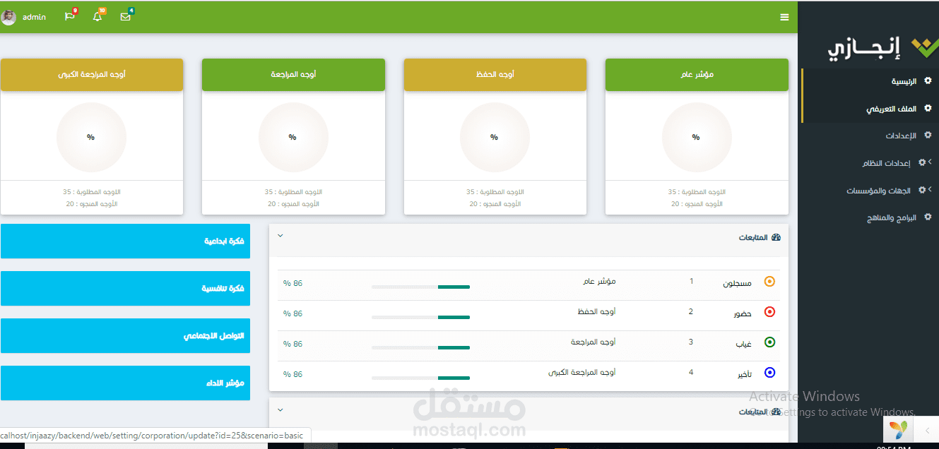 عبارة عن موقع تعليمي لجمعية إنجازي لتحفيظ القرآن الكريم بالمملكة العربية السعودية ، وقد قمت ببرمجة لوحات التحكم على هذا الموقع على Backend
