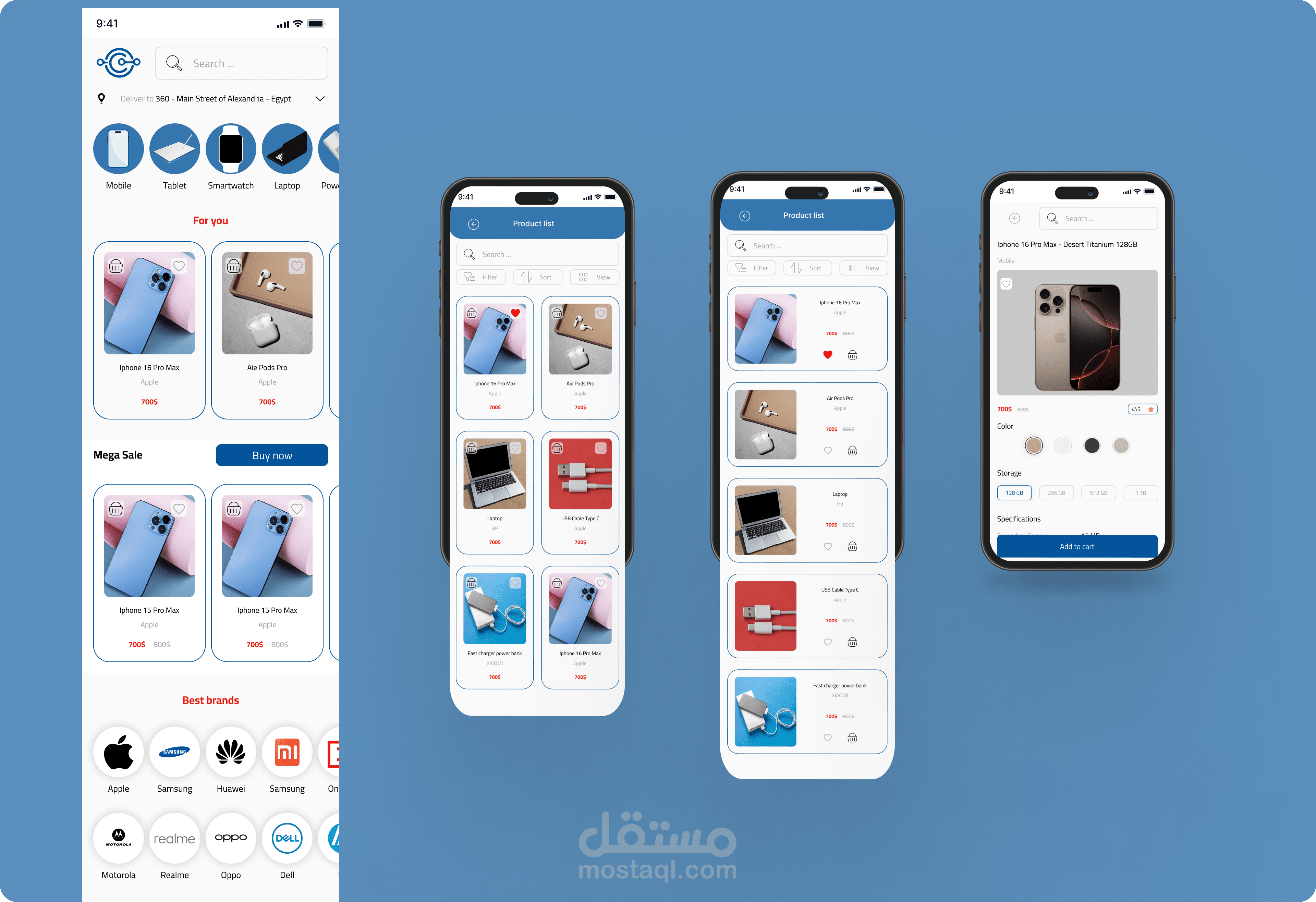 تصميم تطبيق خاص بشراء اجهزة الموبايل - التابلت - اللابتوب - اكسسوارات الموبايل