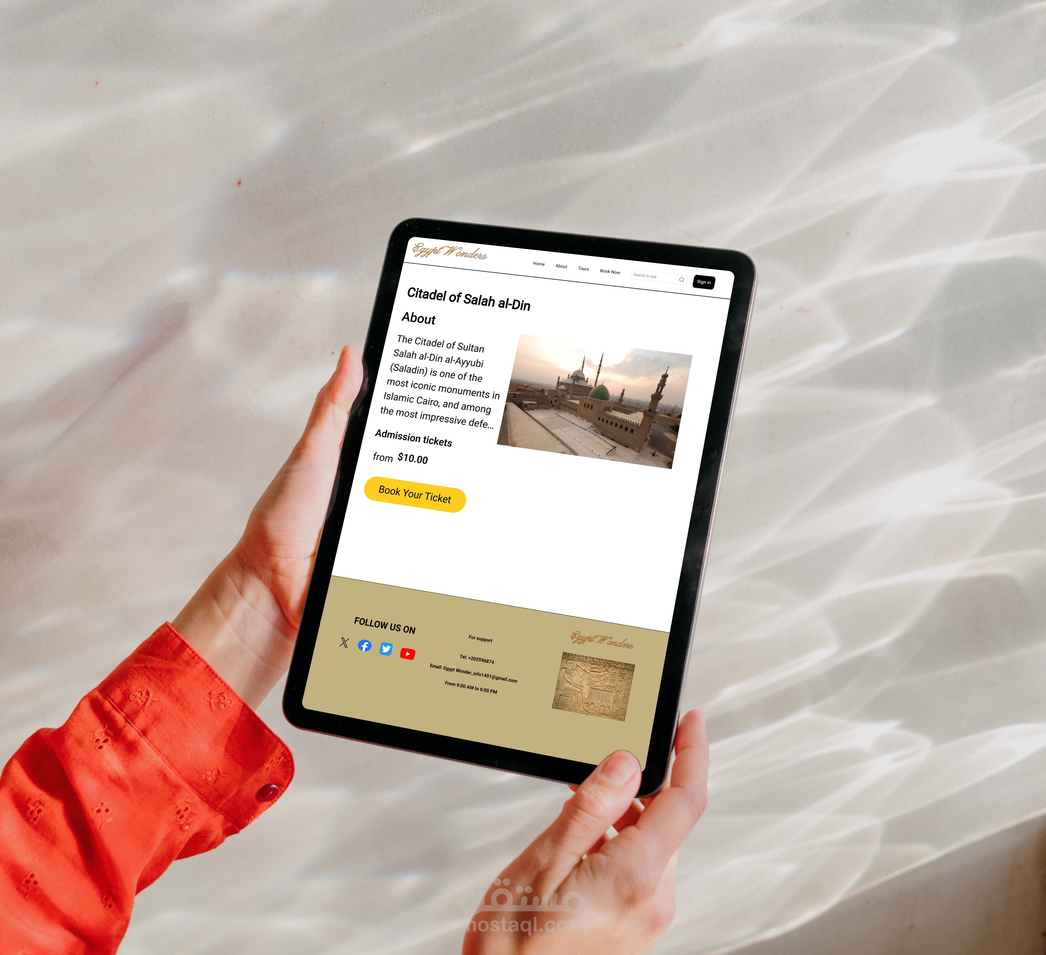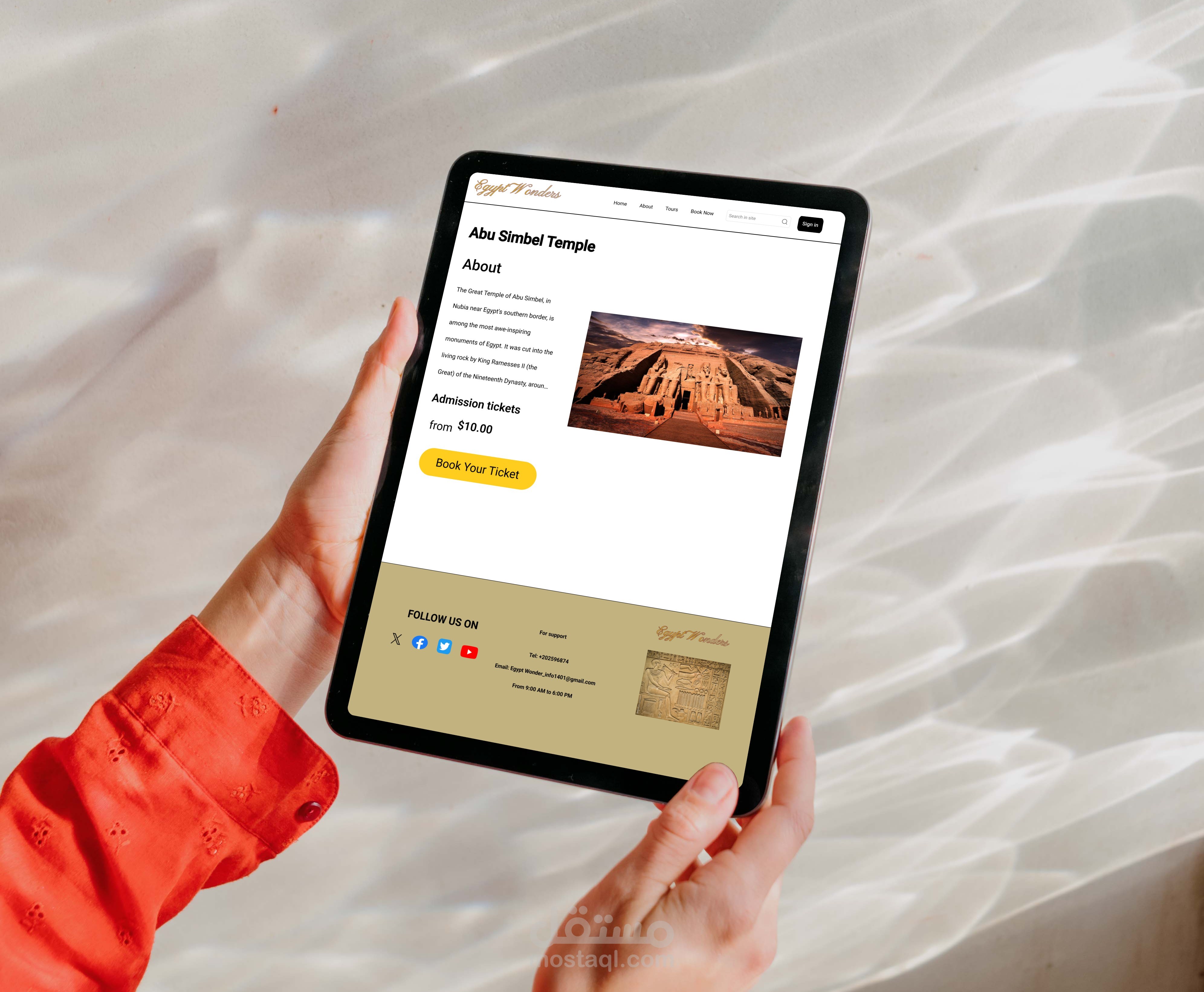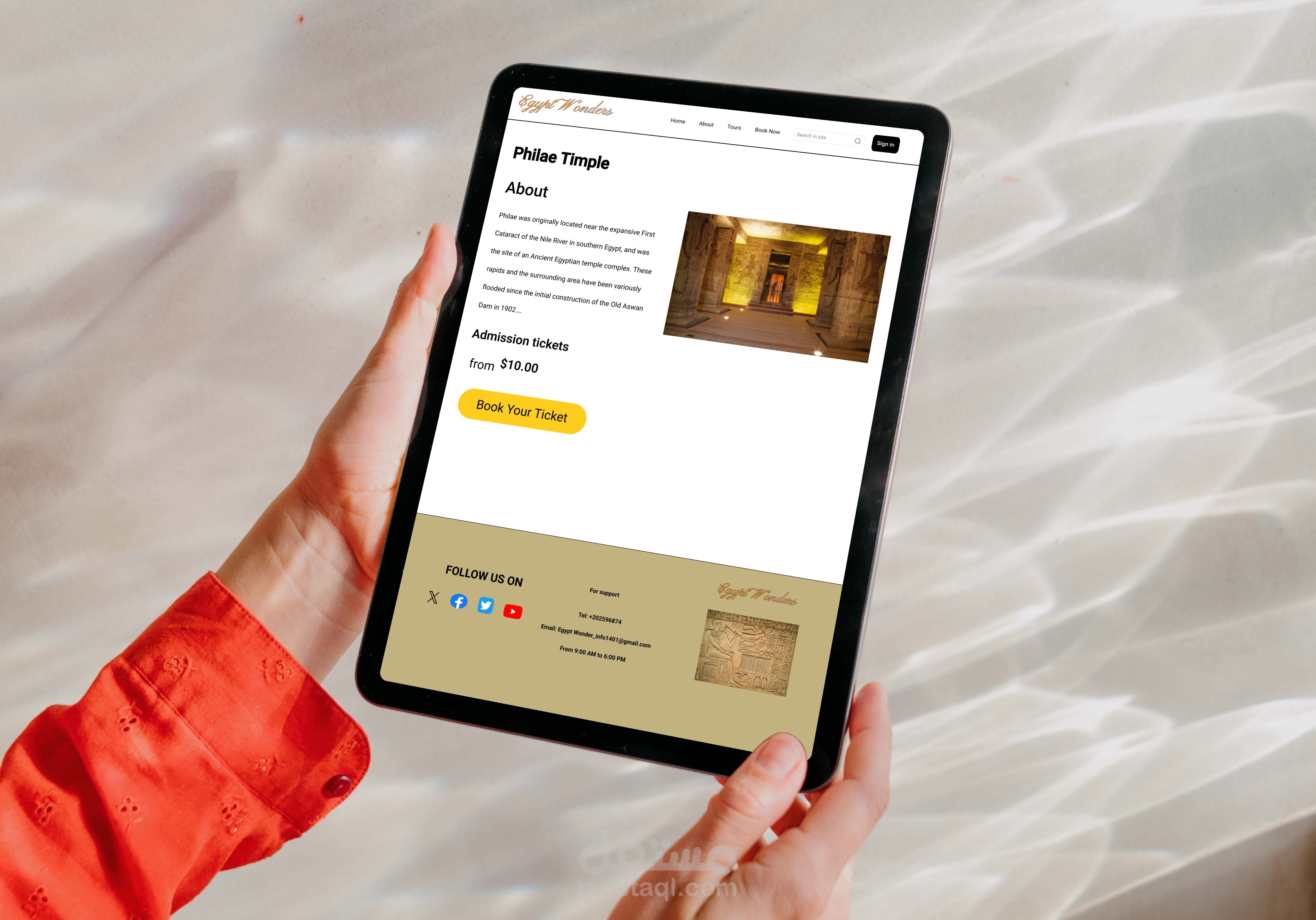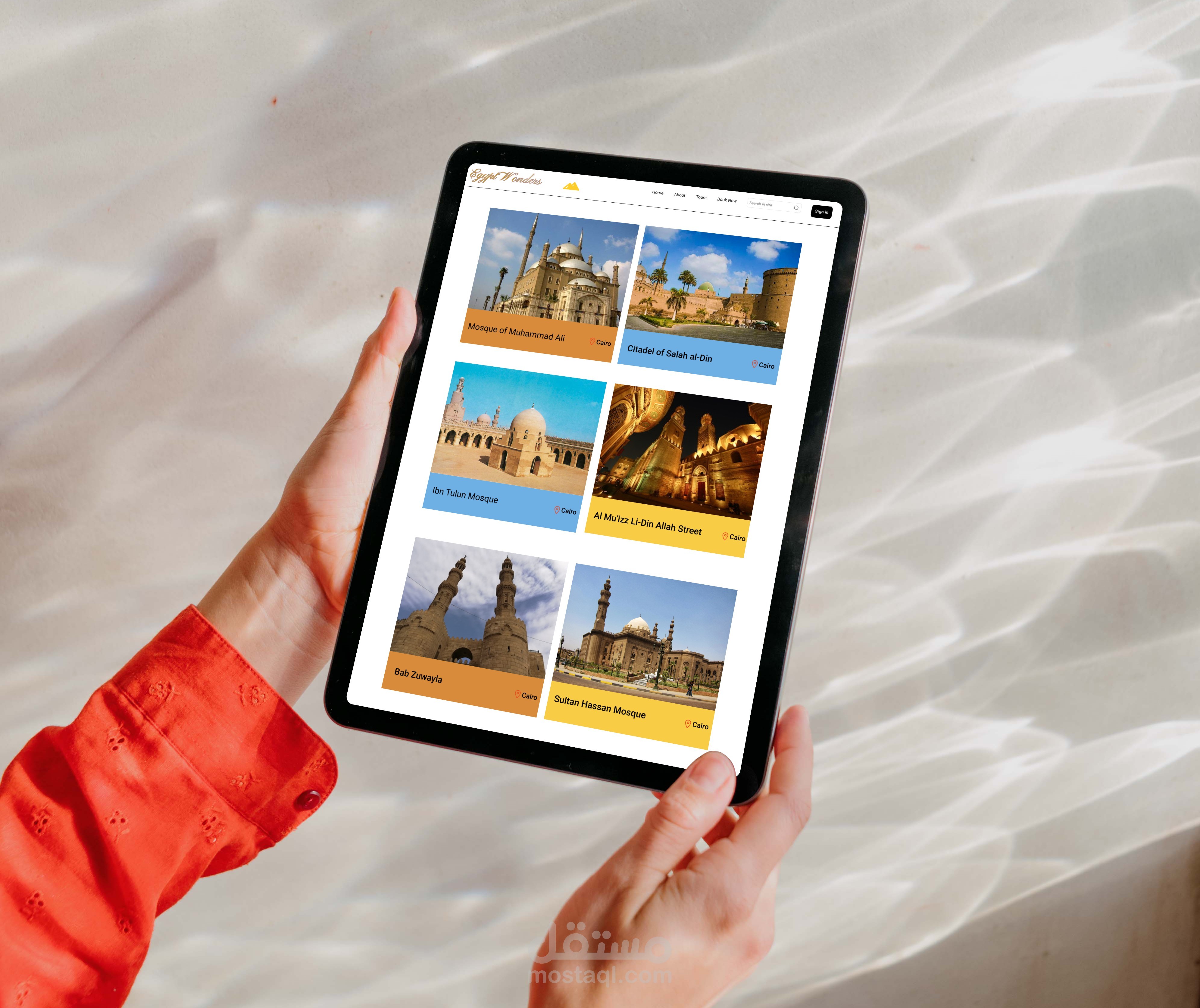 موقع سياحي متكامل لعرض المعالم المصرية مثل الأهرامات ومعابد الأقصر وآثار القاهرة، مع نظام حجز تذاكر إلكتروني.