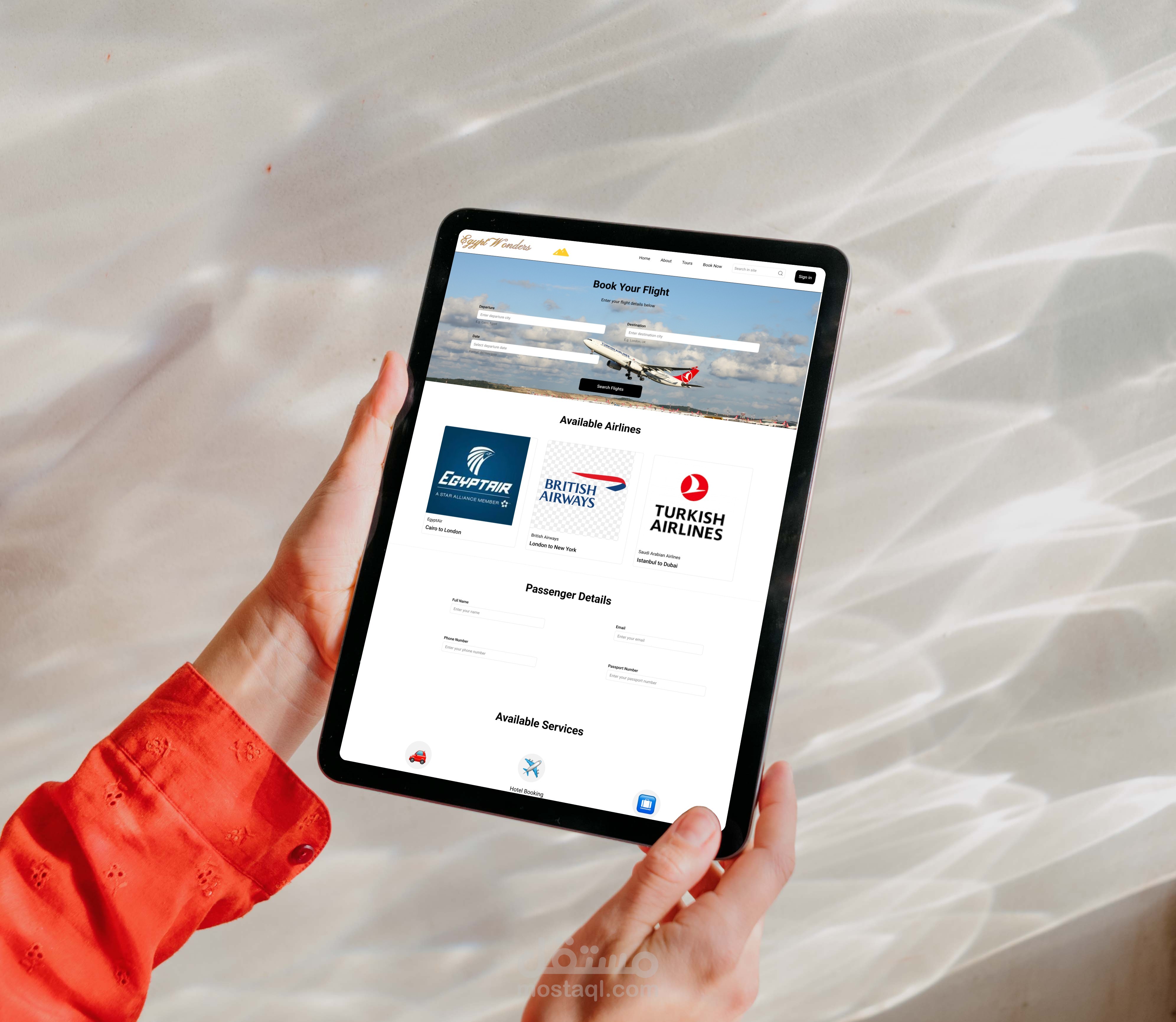 واجهة وتجربة المستخدم لموقع سياحي فهو تصميمًا احترافيًا مكون من 10 شاشات متكاملة، مع واجهة مستخدم (UI) سهلة الاستخدام وتجربة مستخدم (UX)