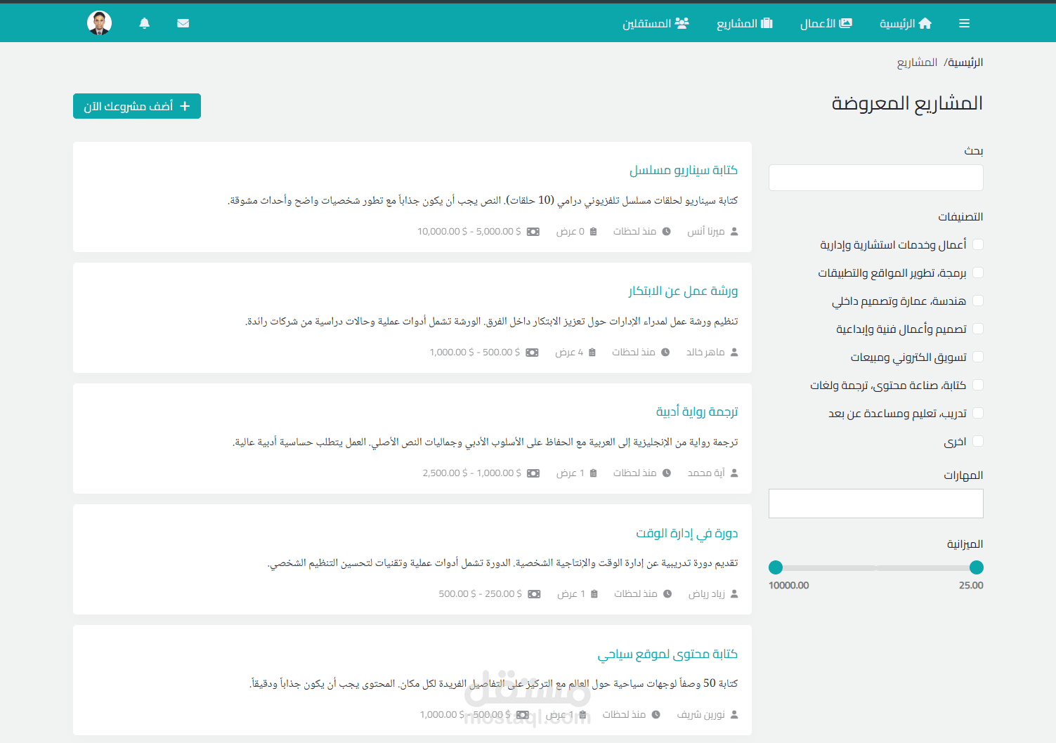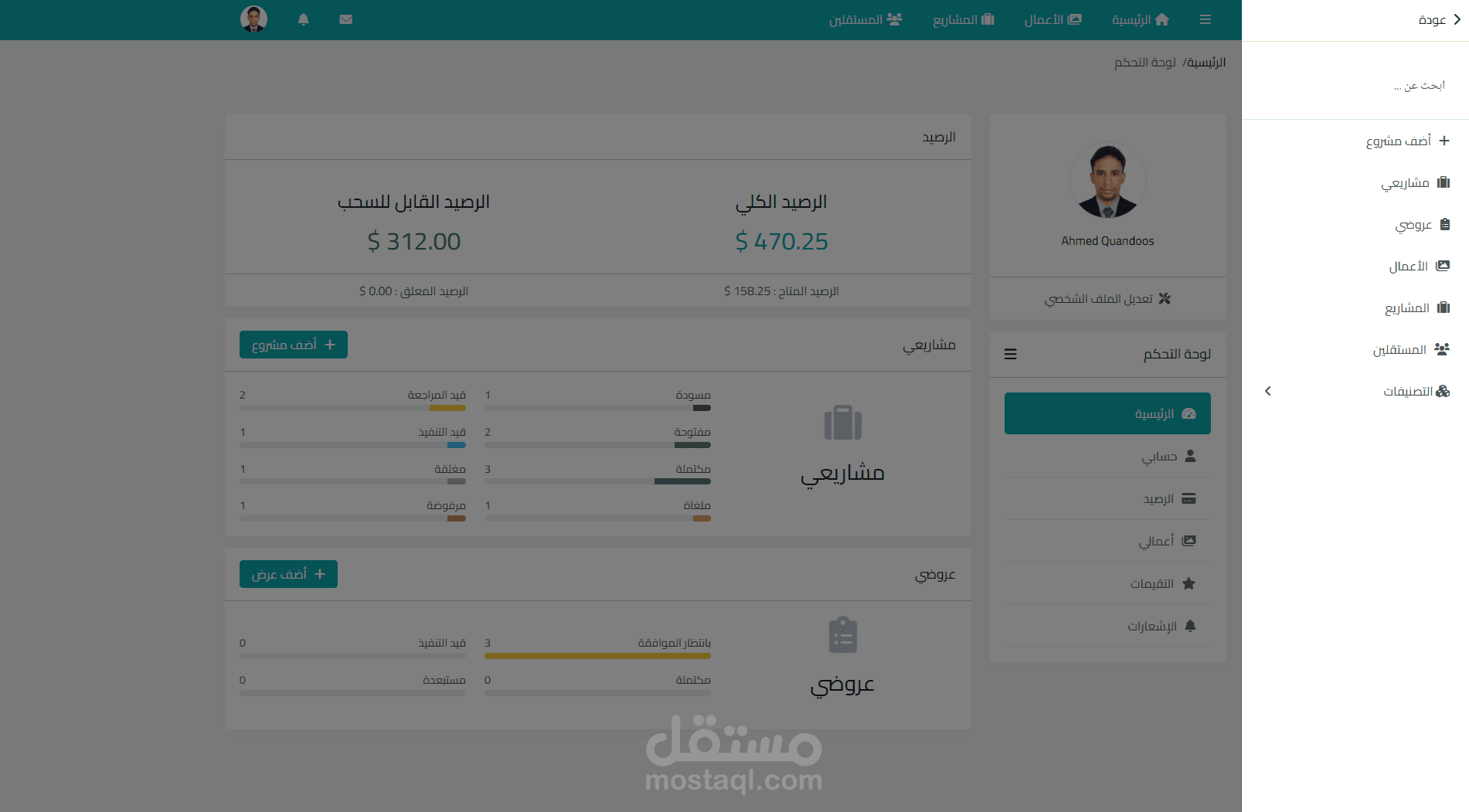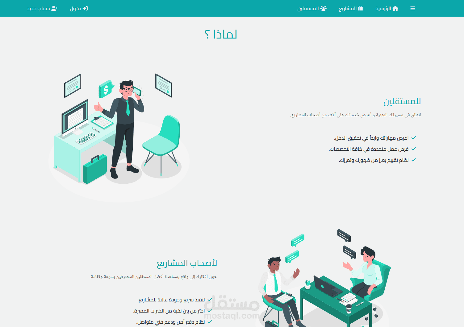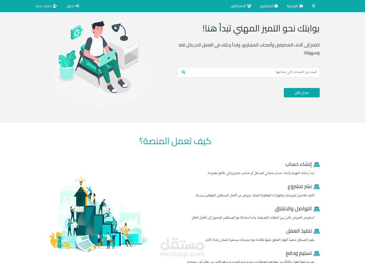 تطوير منصة عمل حر متكاملة تهدف إلى ربط أصحاب المشاريع بالمستقلين بكل سهولة وفعالية