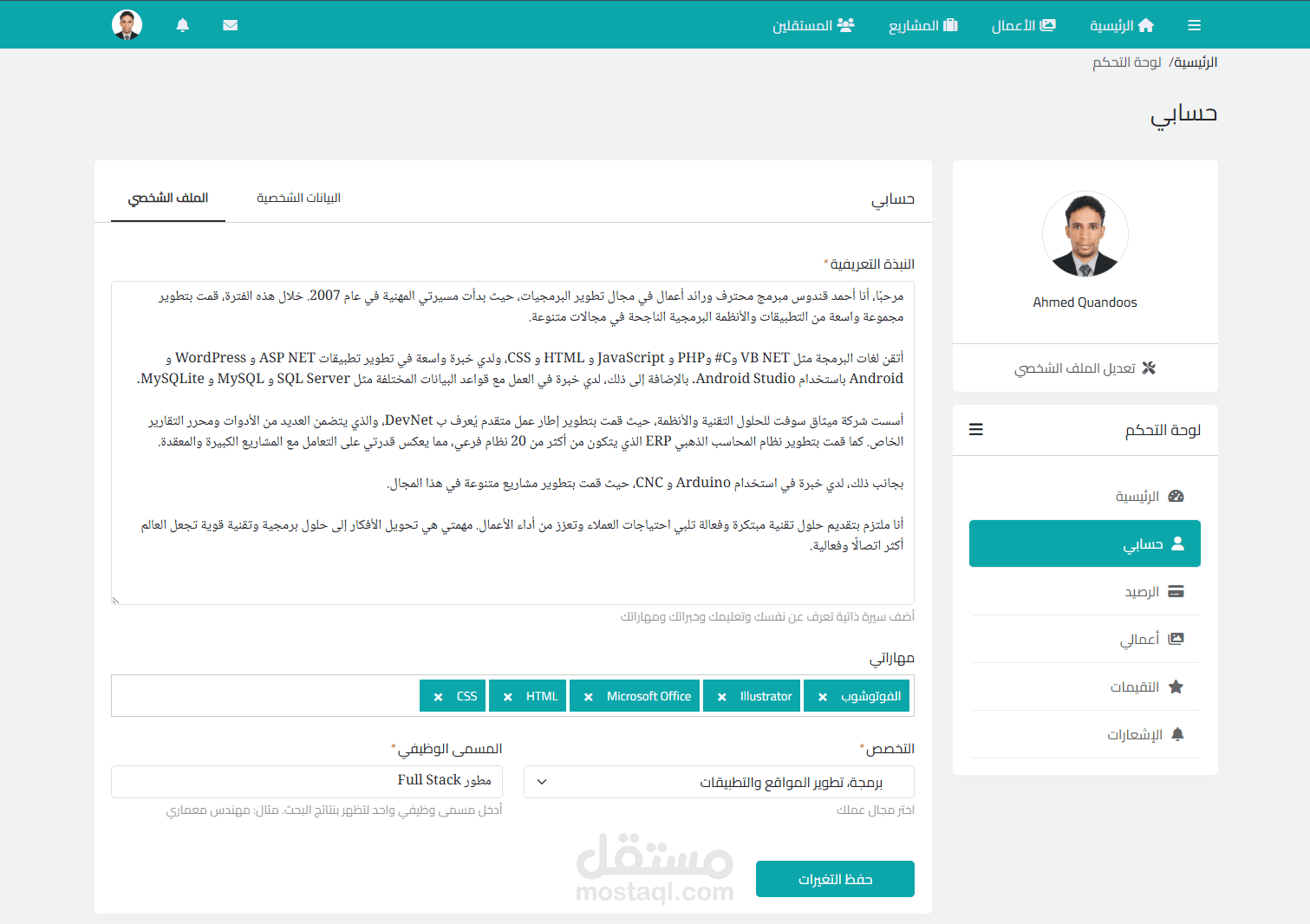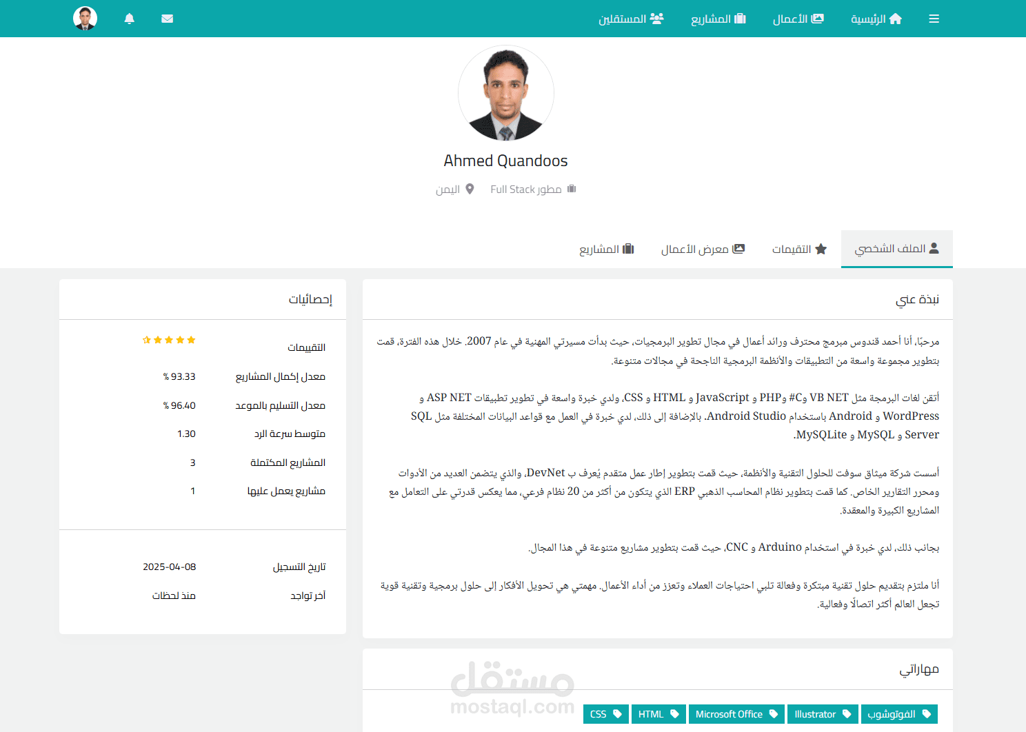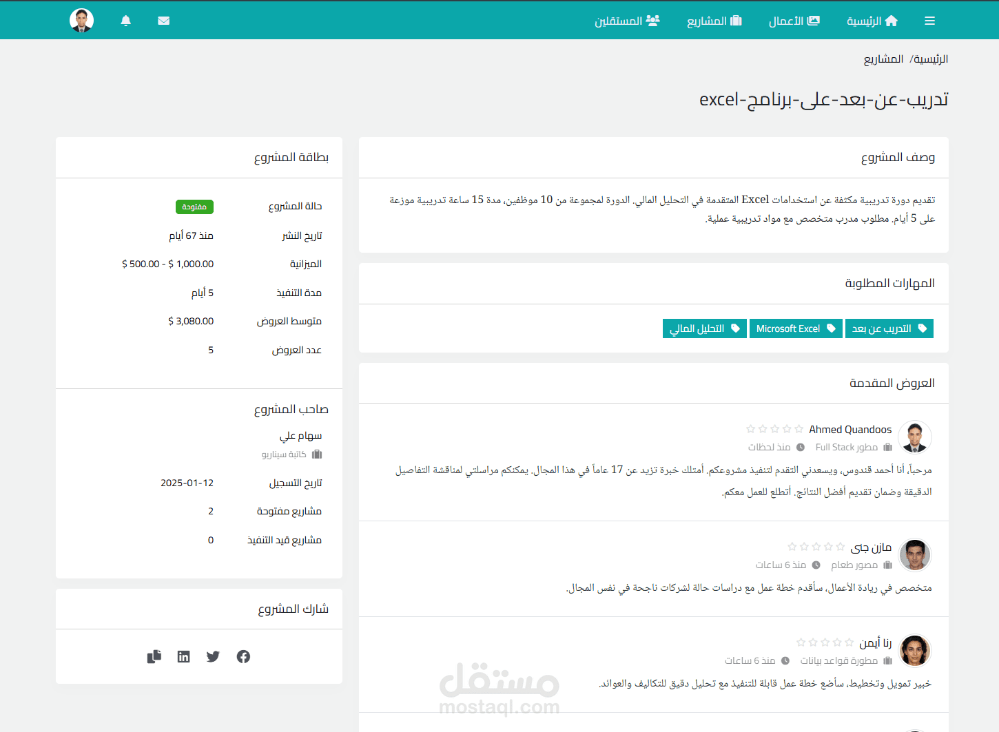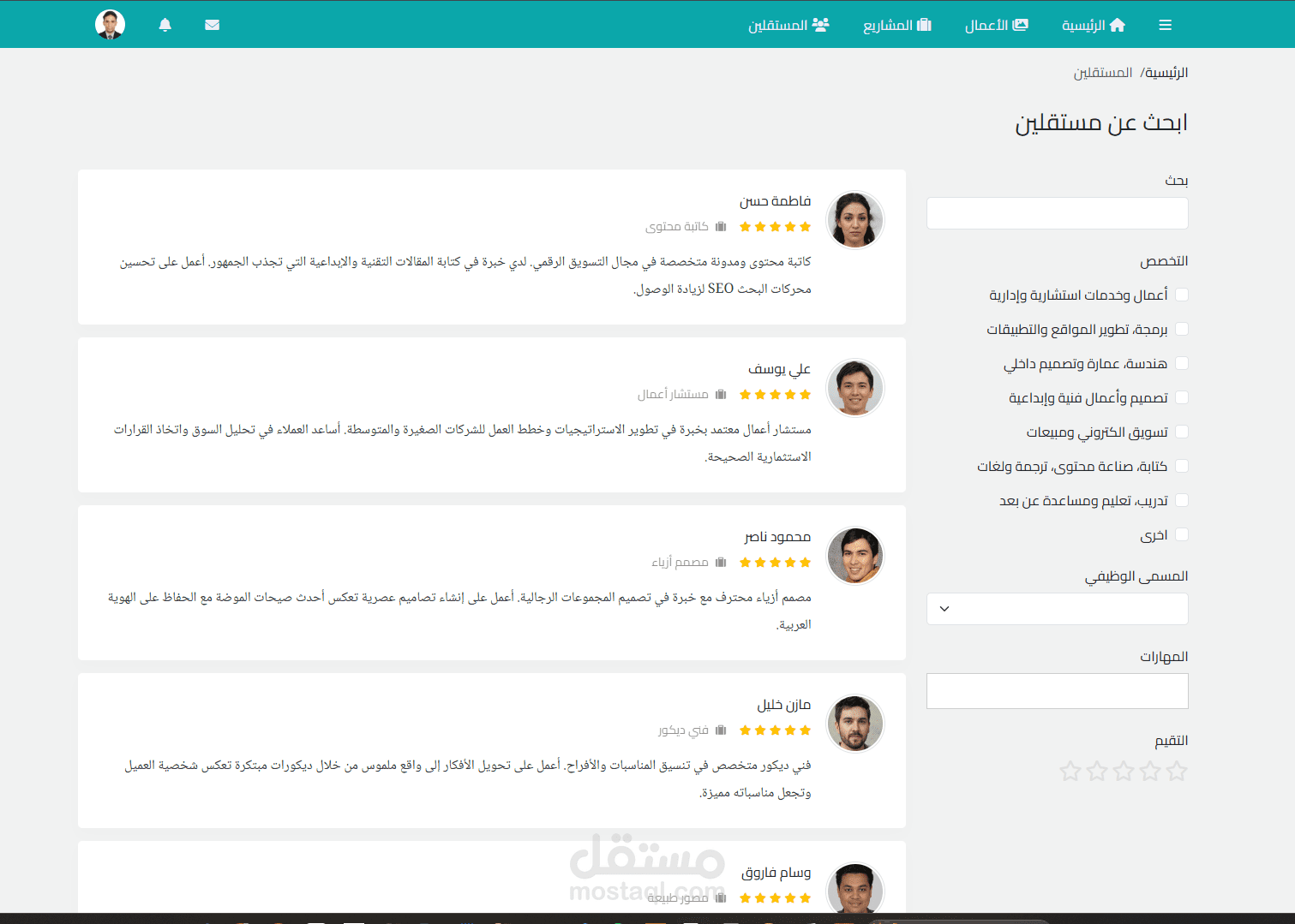 تطوير منصة عمل حر متكاملة تهدف إلى ربط أصحاب المشاريع بالمستقلين بكل سهولة وفعالية