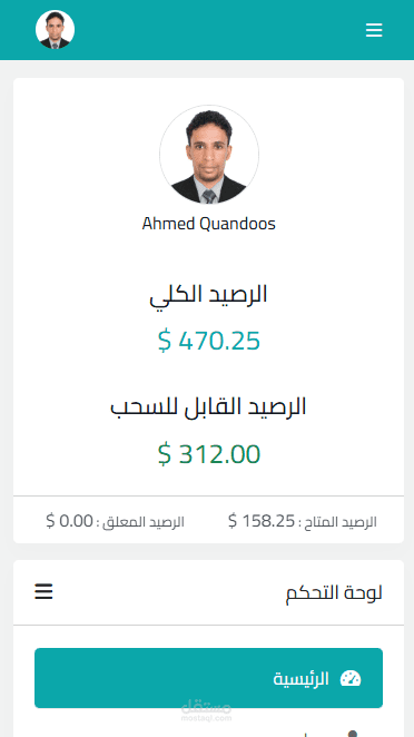 لوحة تحكم متقدمة لكل مستخدم لإدارة مشاريعه.