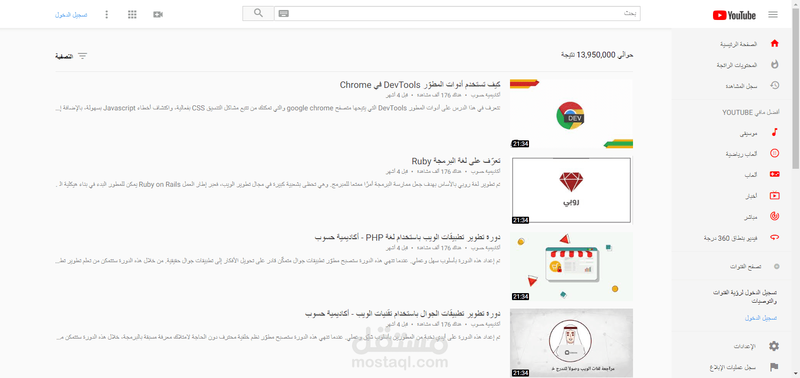 مثال لموقع يوتيوب بتصميم نفس طبق الأصل.