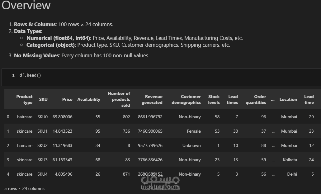 - استخدام MySQL Workbench لتنفيذ استعلامات SQL بهدف تصفية البيانات واستخراج معلومات مبدئية.