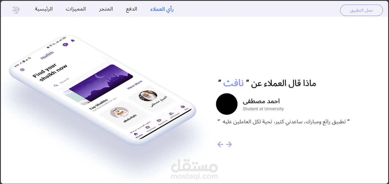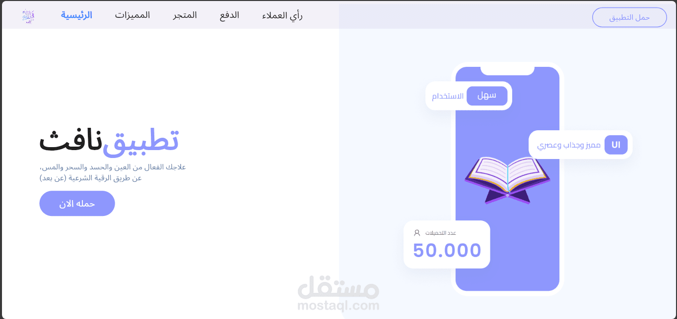 تطبيق Nafith هو حل مبتكر وموثوق للعلاج من العين والحسد باستخدام الرقية الشرعية. كان في البداية موقعًا إلكترونيًا يقدم خدمات علاجية قائمة على قراءة الرقى الشرعية، والآن أصبح متاحًا في متناول يدك عبر تطبيق موبايل يسهل الوصول إليه في أي وقت ومن أي مكان.