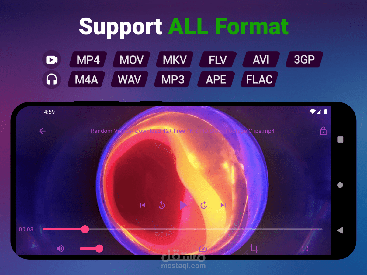 يشغّل كل الصيغ: من .mp4 لـ .mkv – لو فيديو، فهو جاهز يشتغل.