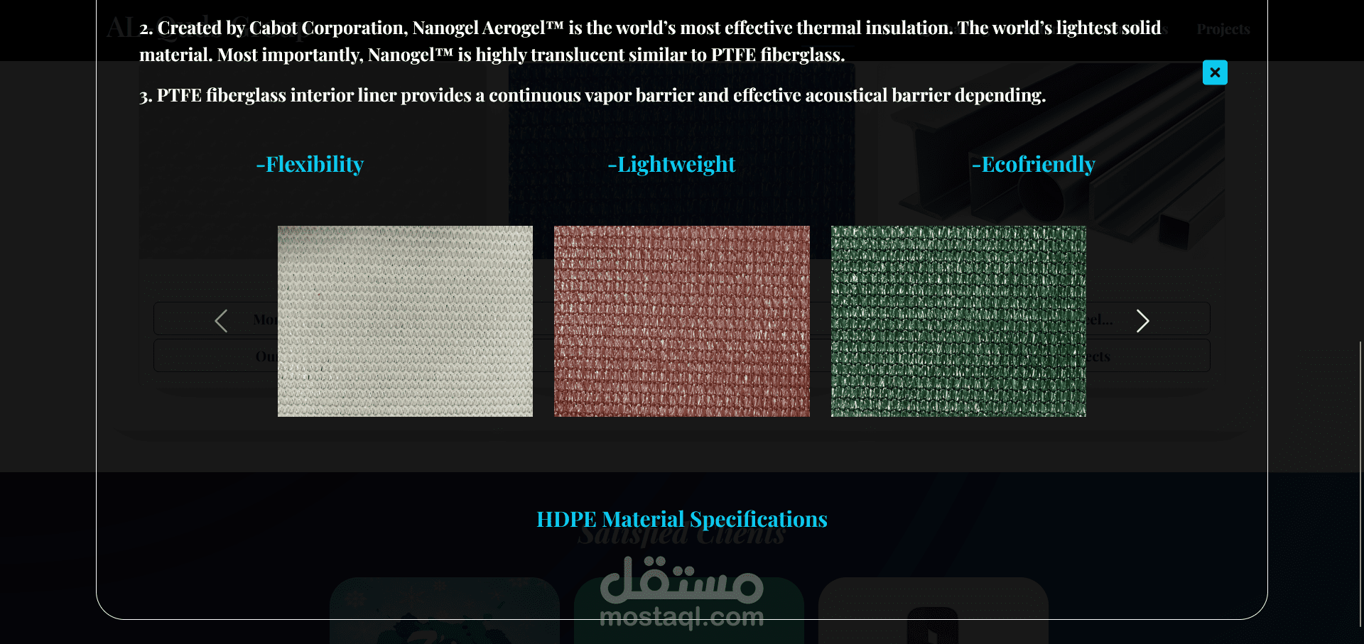 عرض المشاريع السابقة مع تفاصيل دقيقة (أوزان الحديد، المساحات، المواقع).