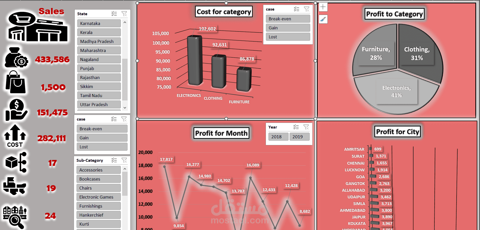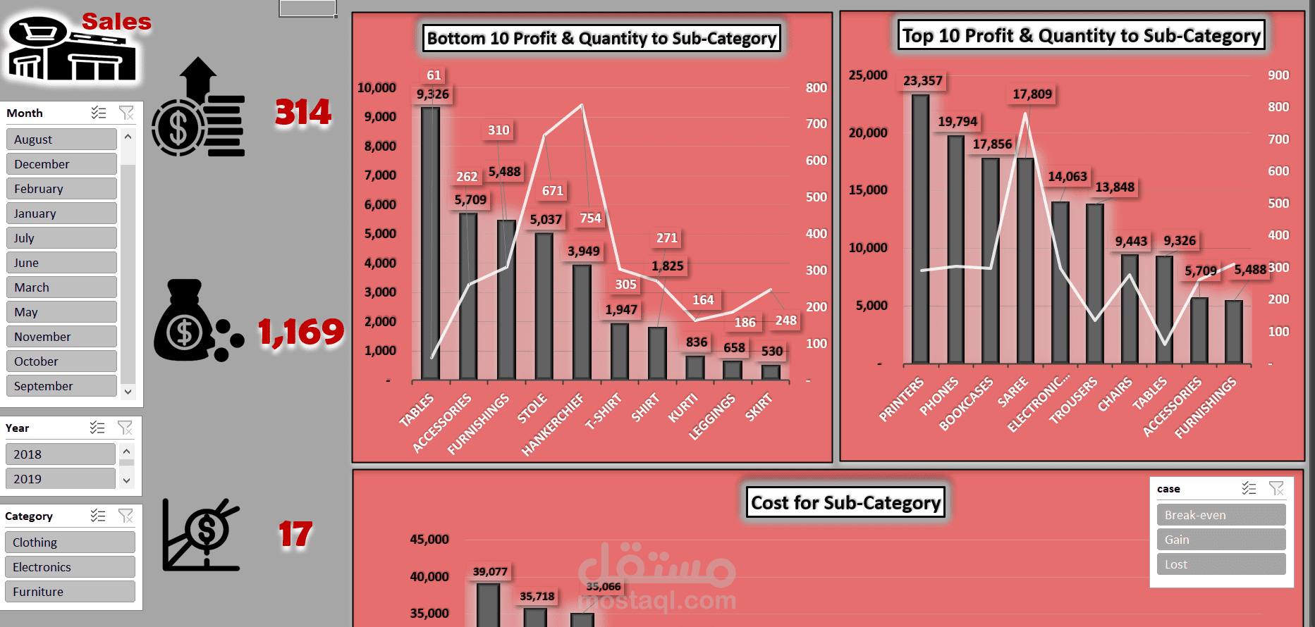 Comparing cost vs. profit to determine product status (Profit - Loss - Break-even)