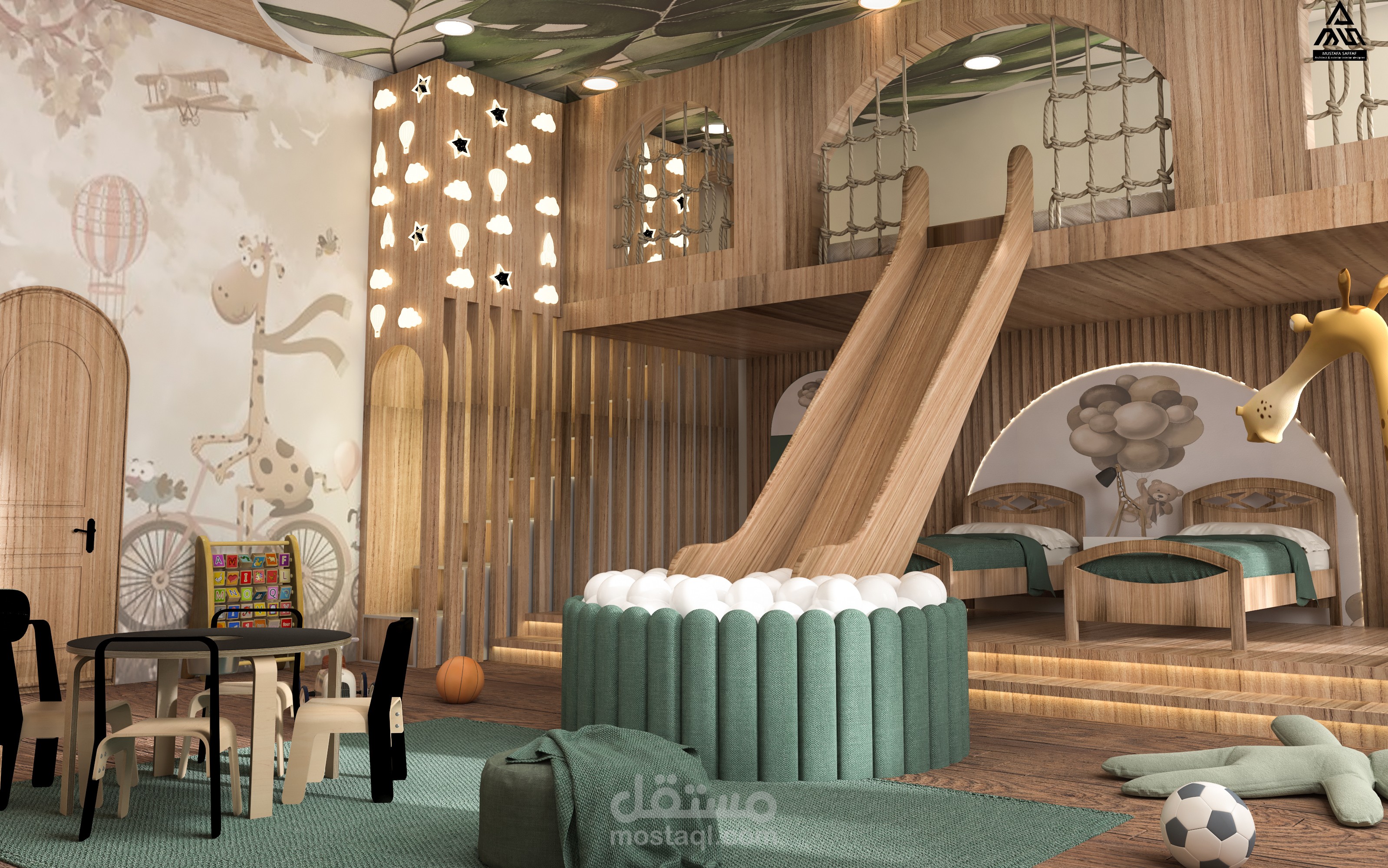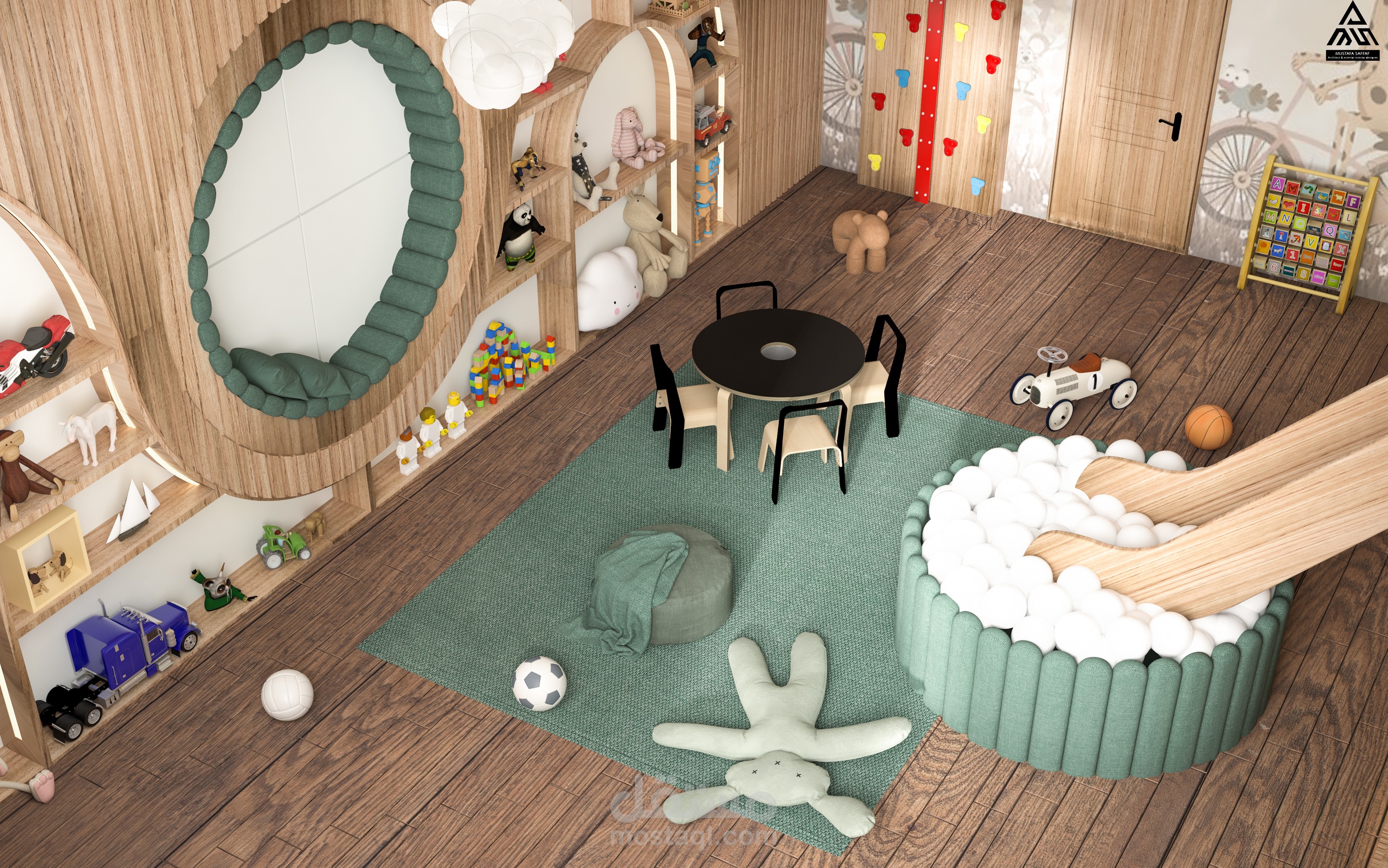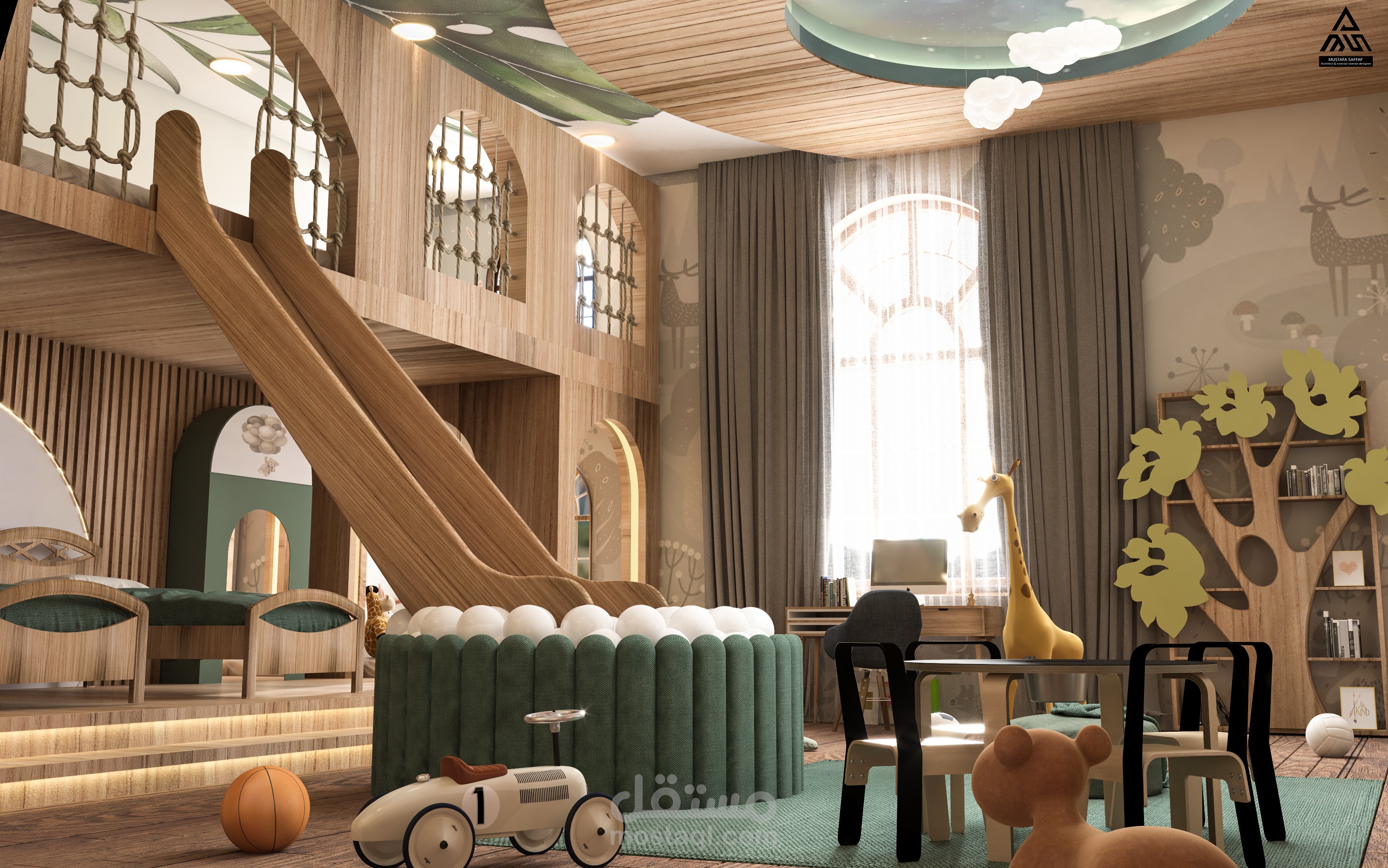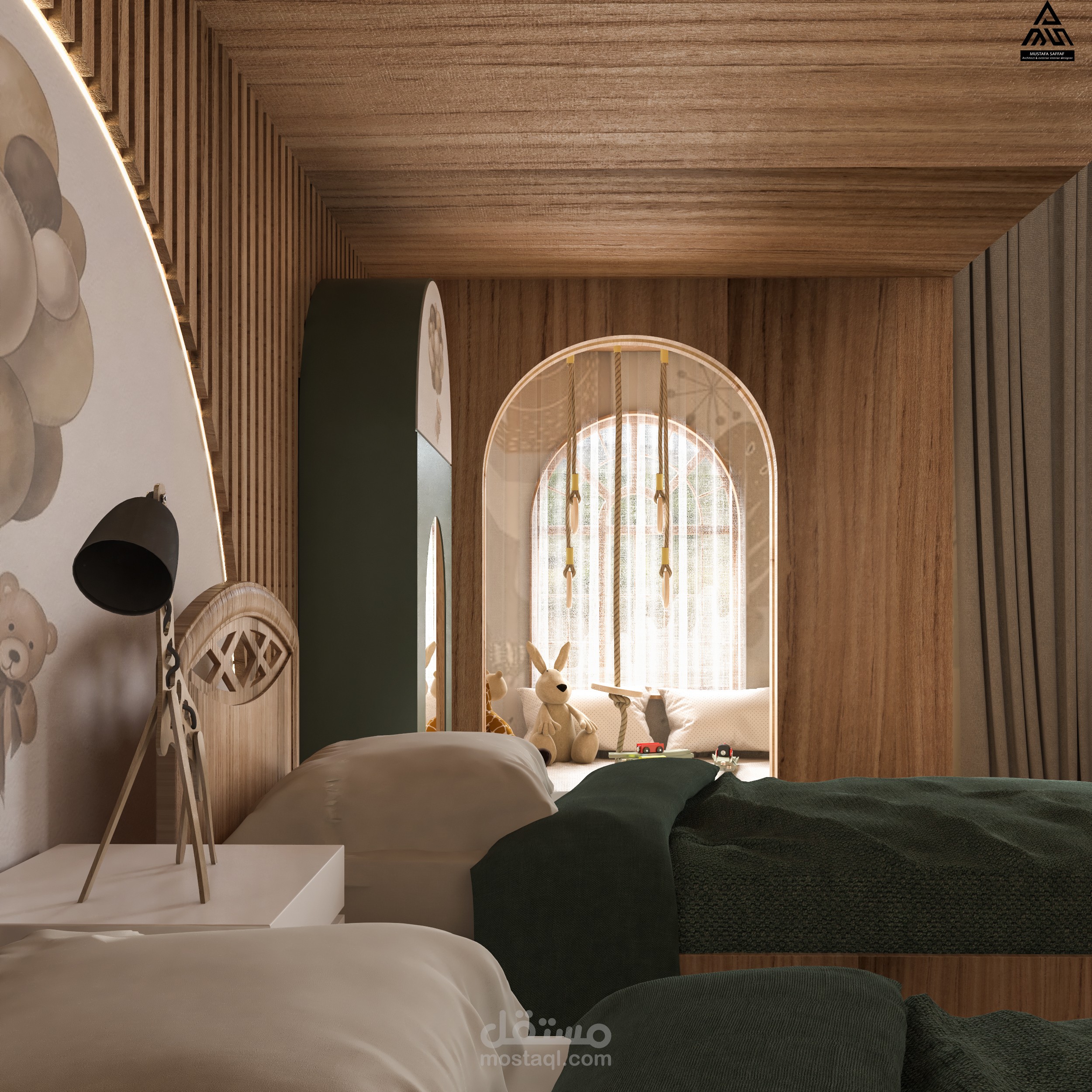 تصميم غرفة نوم اطفال على الطراز المودرن تلاؤم احتياجات الطفل ويكتفي بها بكل رغباته مع الوان عصرية وهادئة