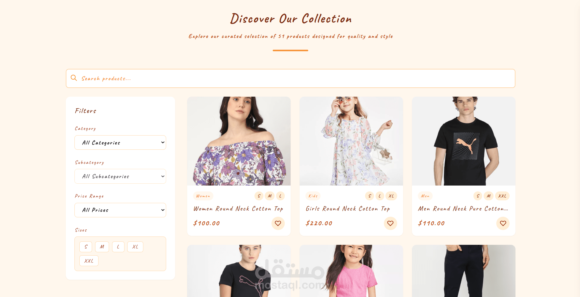 متجر الكتروني بسيط وأنيق لبيع الملابس باستخدام React , Tailwind CSS