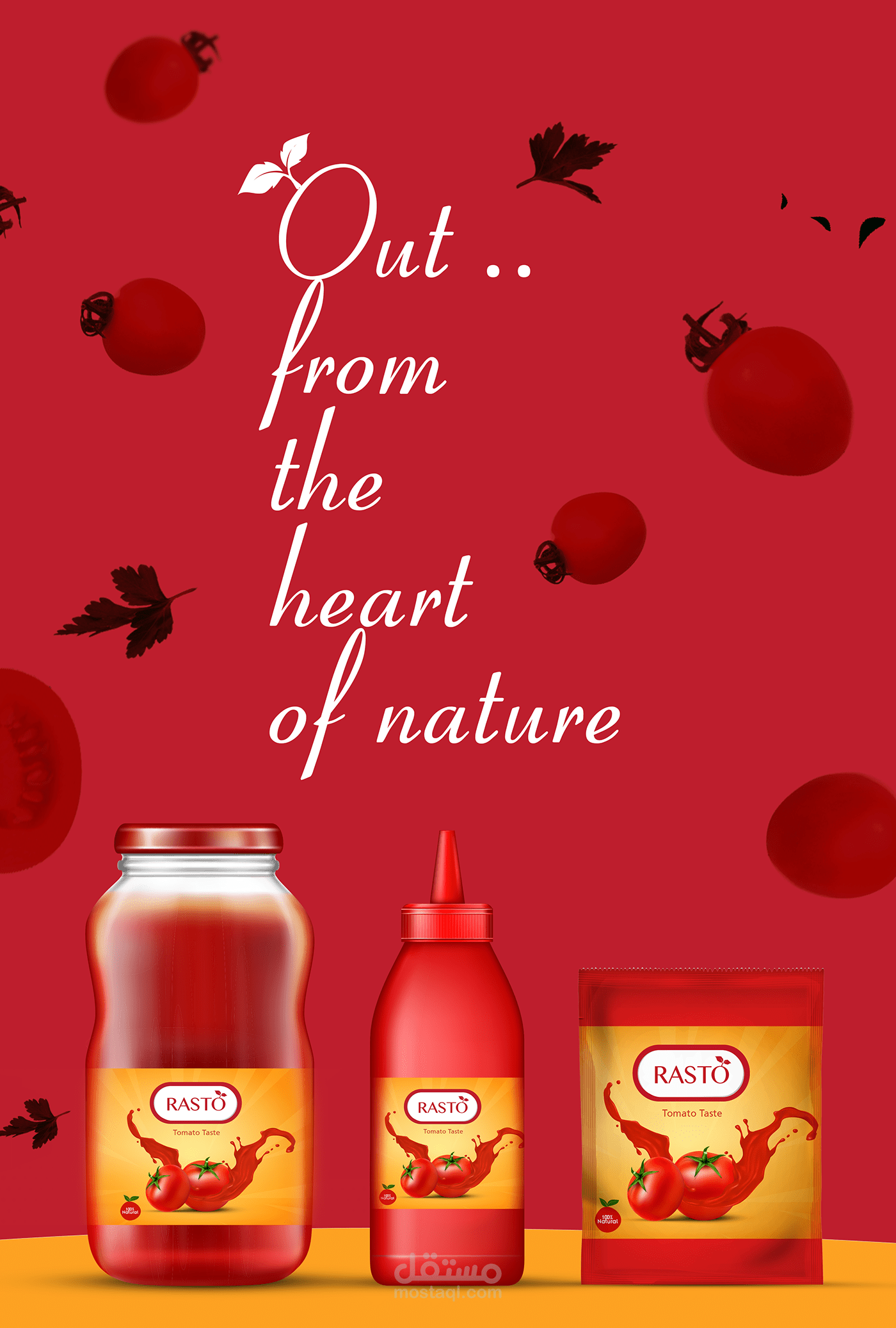 تصميم وتغليف لمنتج راستو " صلصة طماطم وكاتشب "
