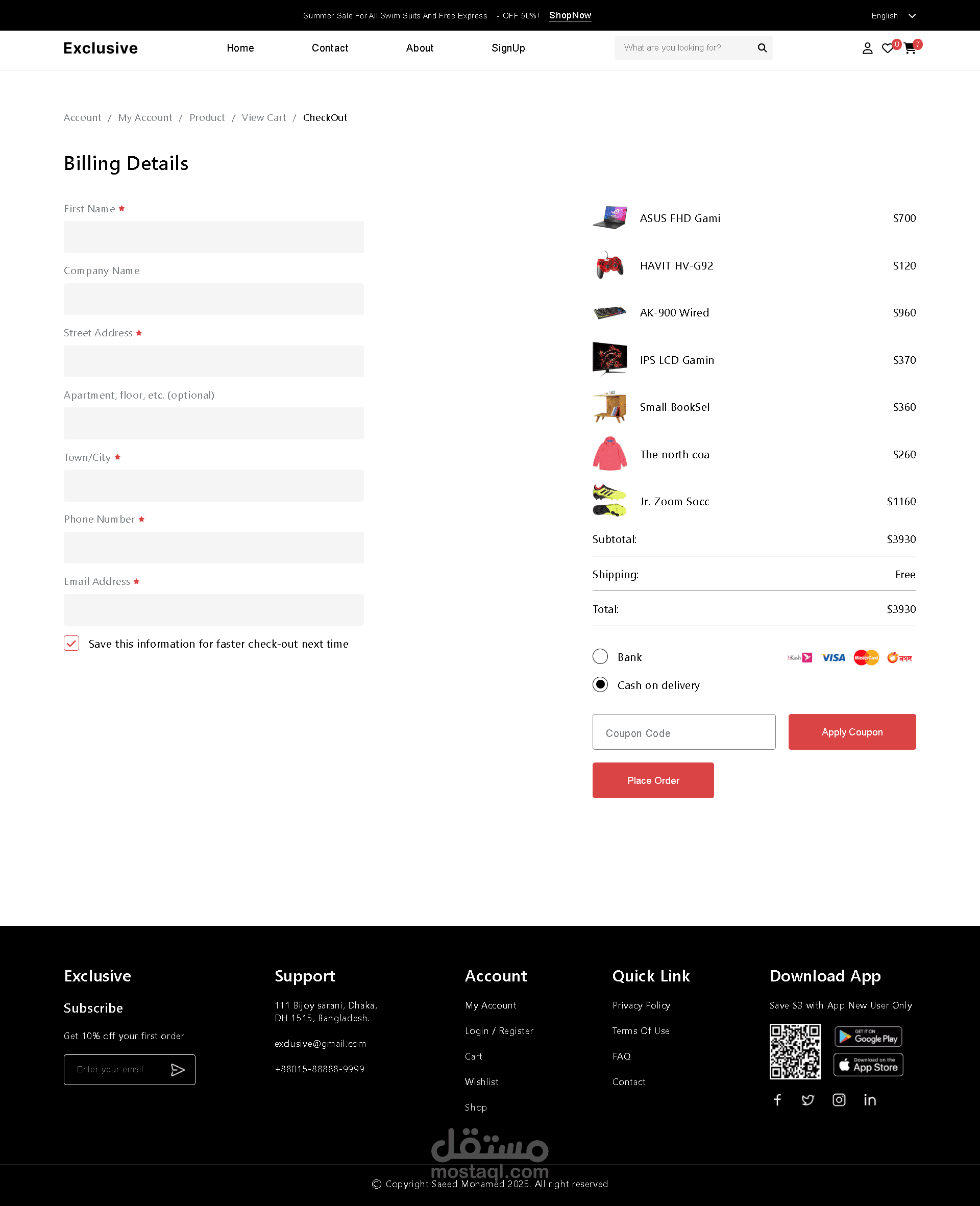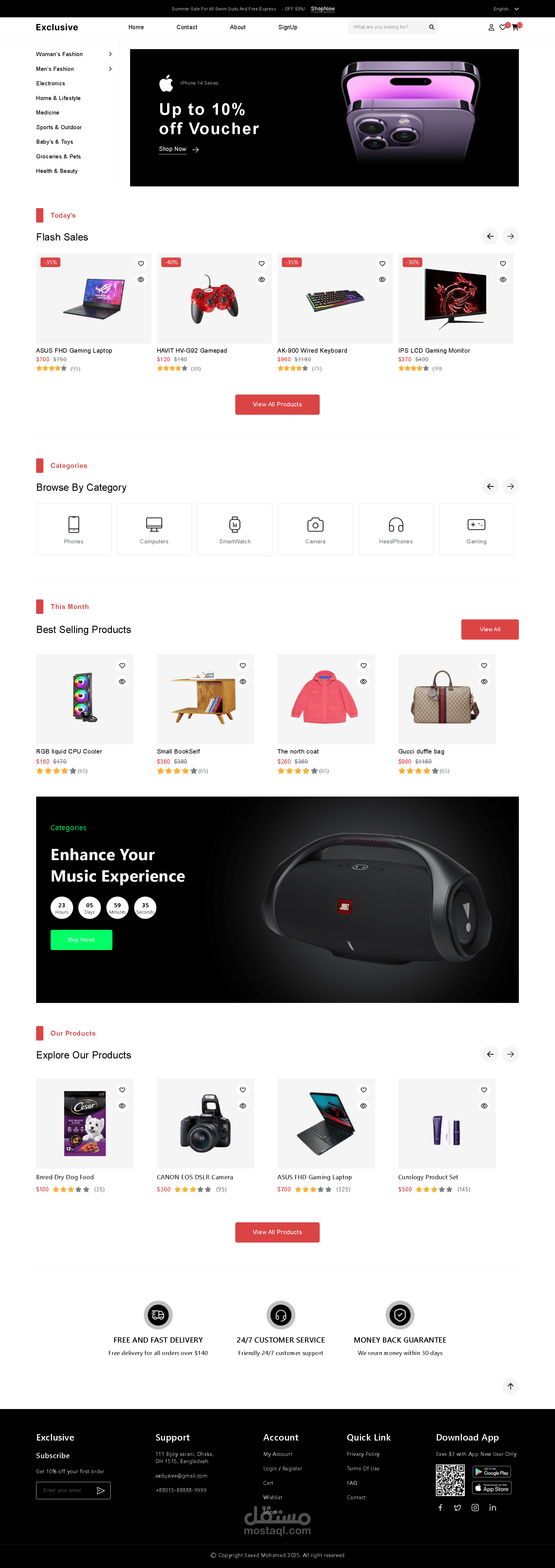 موقع تجارة إلكترونية متكامل ومتجاوب تم بناؤه باستخدام React.js وVite، ويستعرض بنية متقدمة للواجهة الأمامية وإدارة الحالة باستخدام Redux Toolkit وReact Redux.