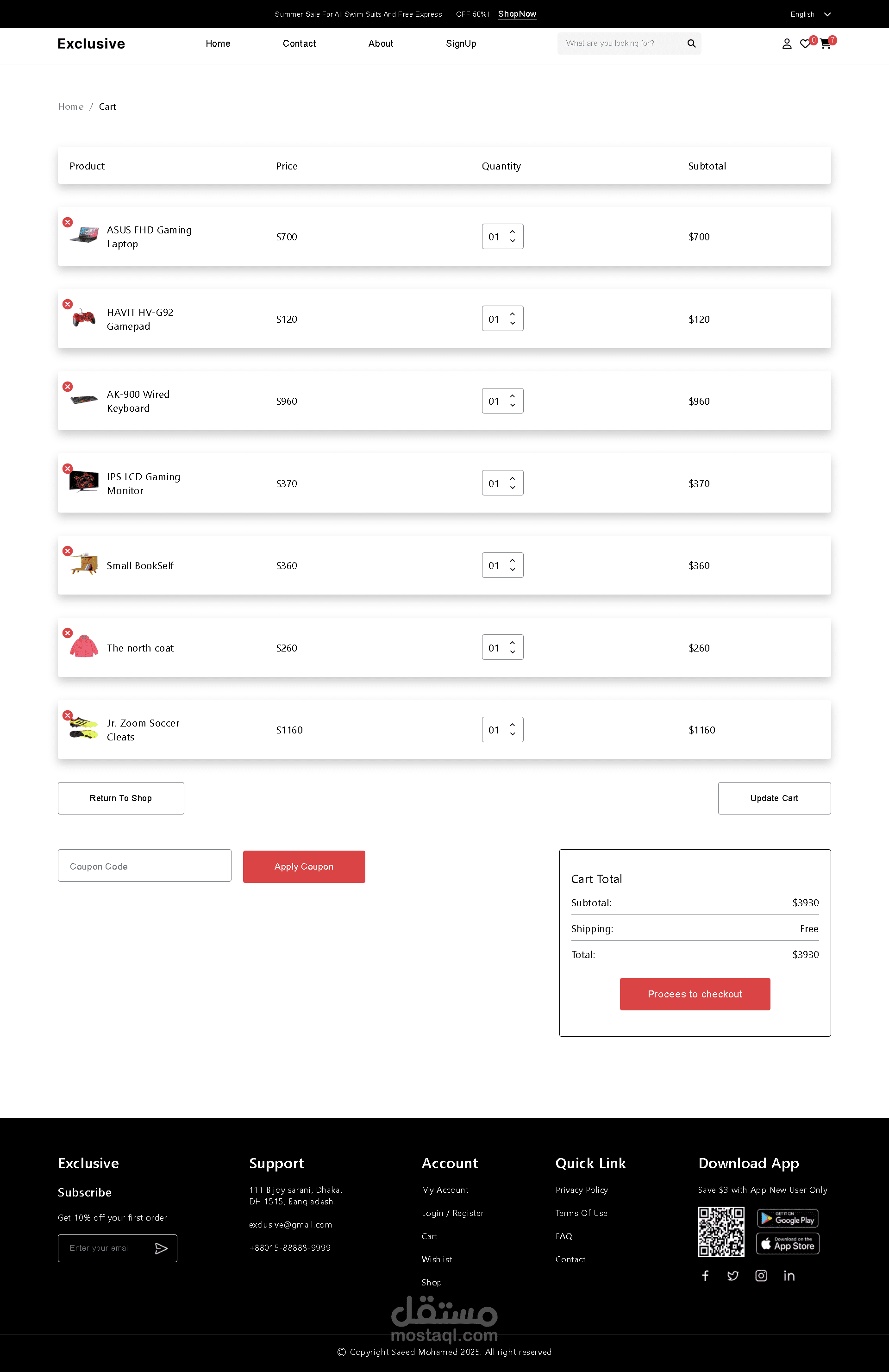 •Includes multiple pages: Home, Contact, About, Shop Now, My Account, Cart, Checkout.