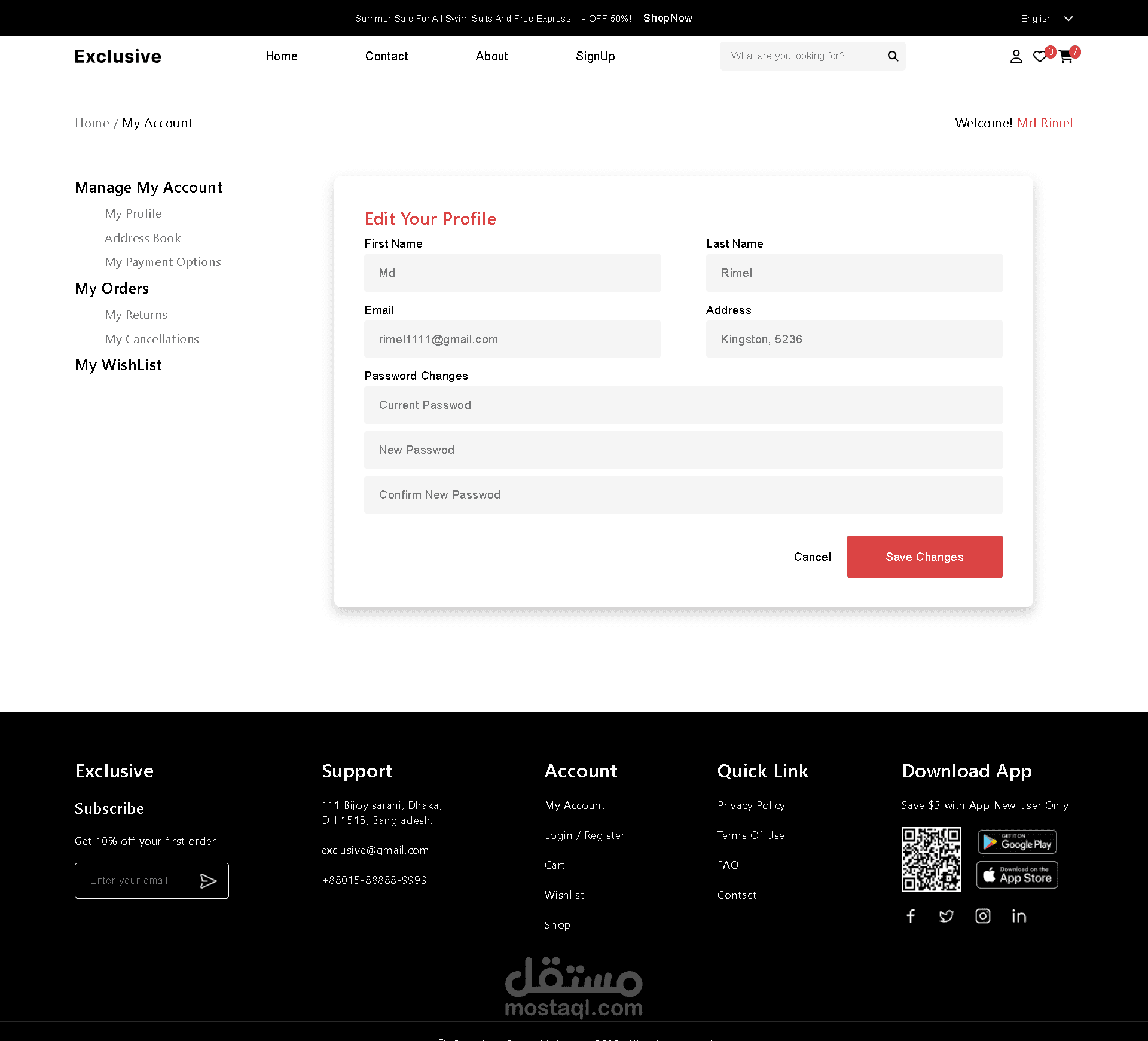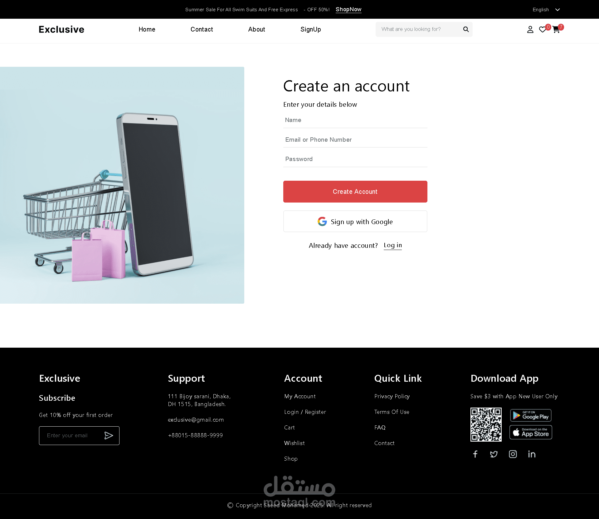 •Full authentication flow: Sign Up, Log In, and user-specific My Account page.