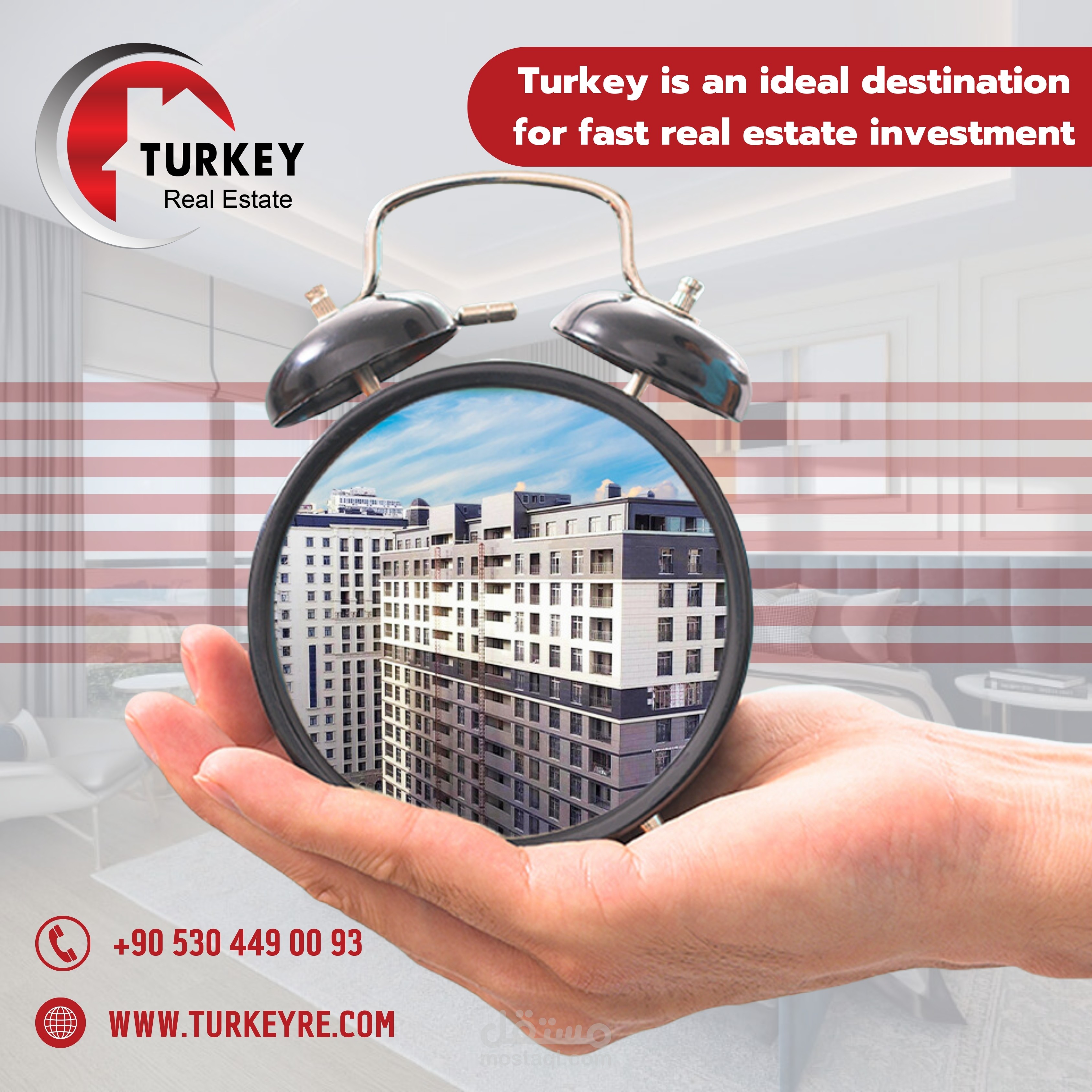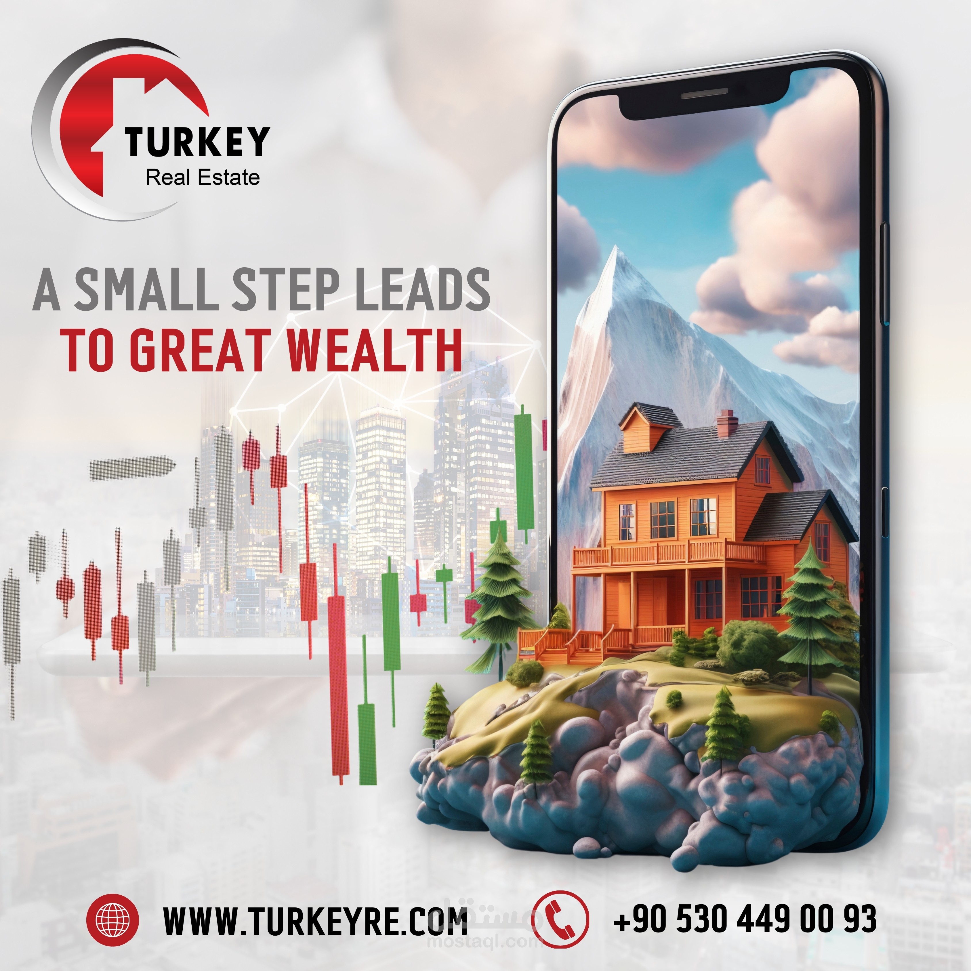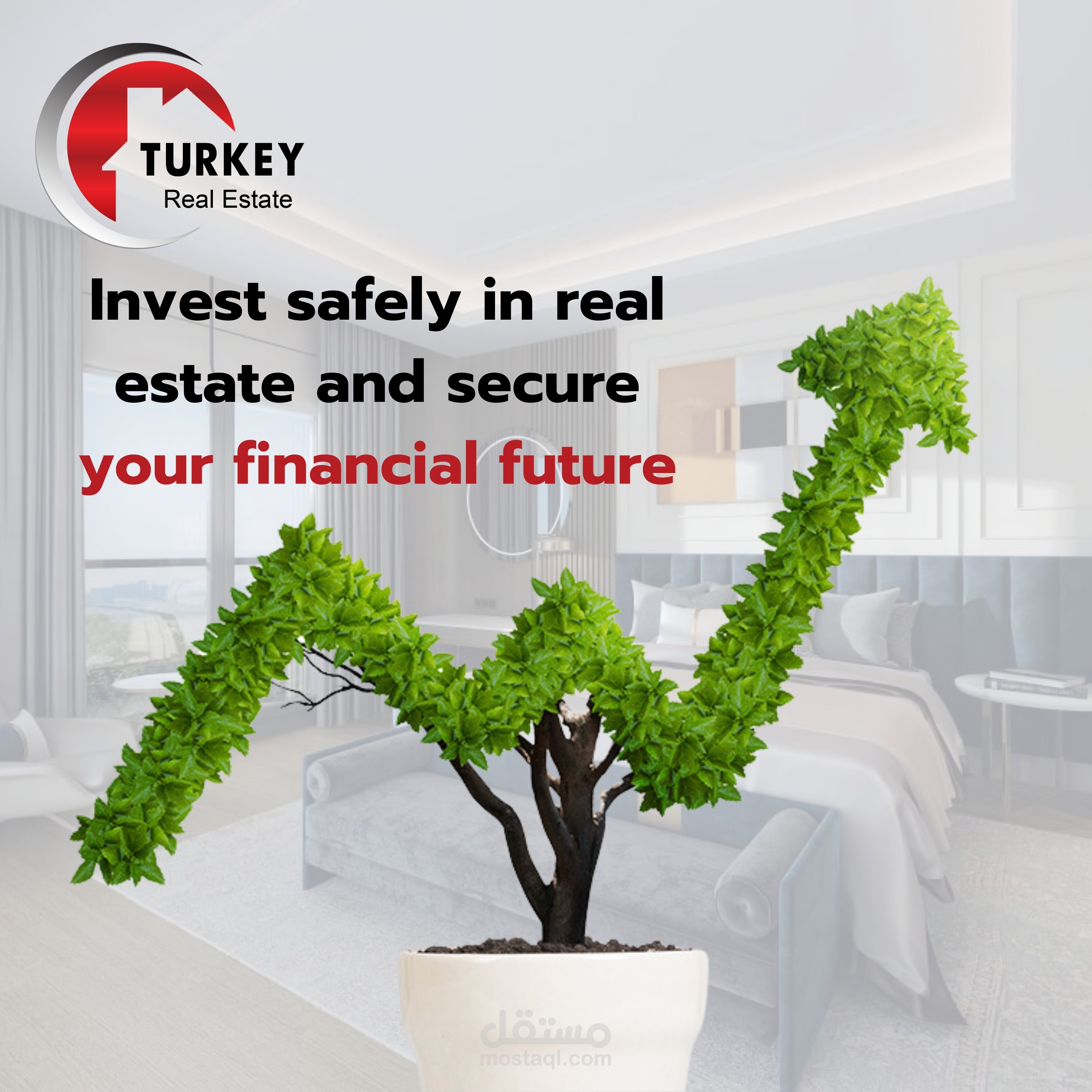 تصميم مجموعة بوستات سوشال ميديا لشركة عقارات في تركيا ، بأسلوب احترافي يجمع بين الجاذبية البصرية والرسائل التسويقية الواضحة.