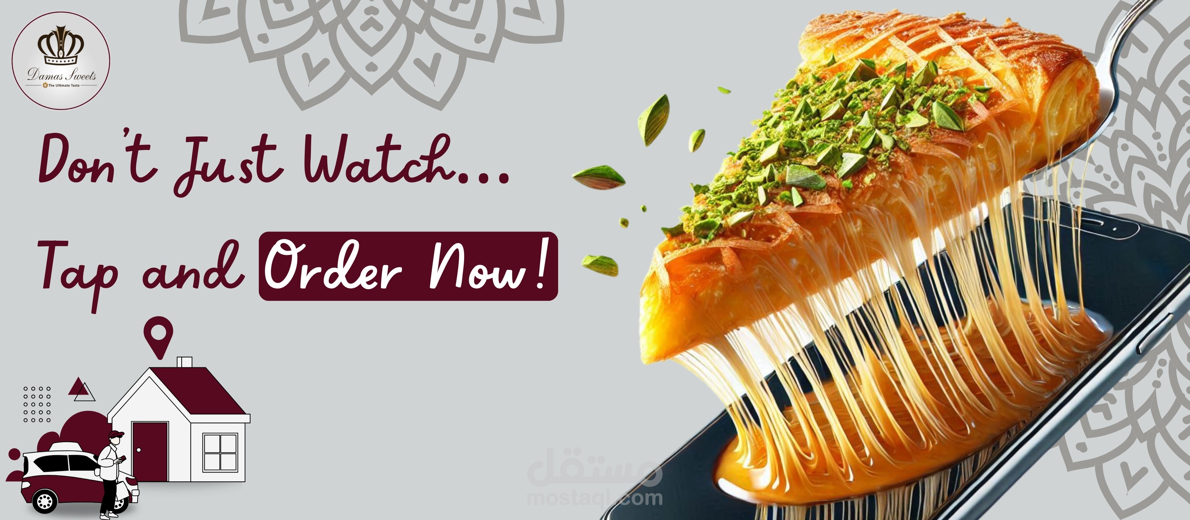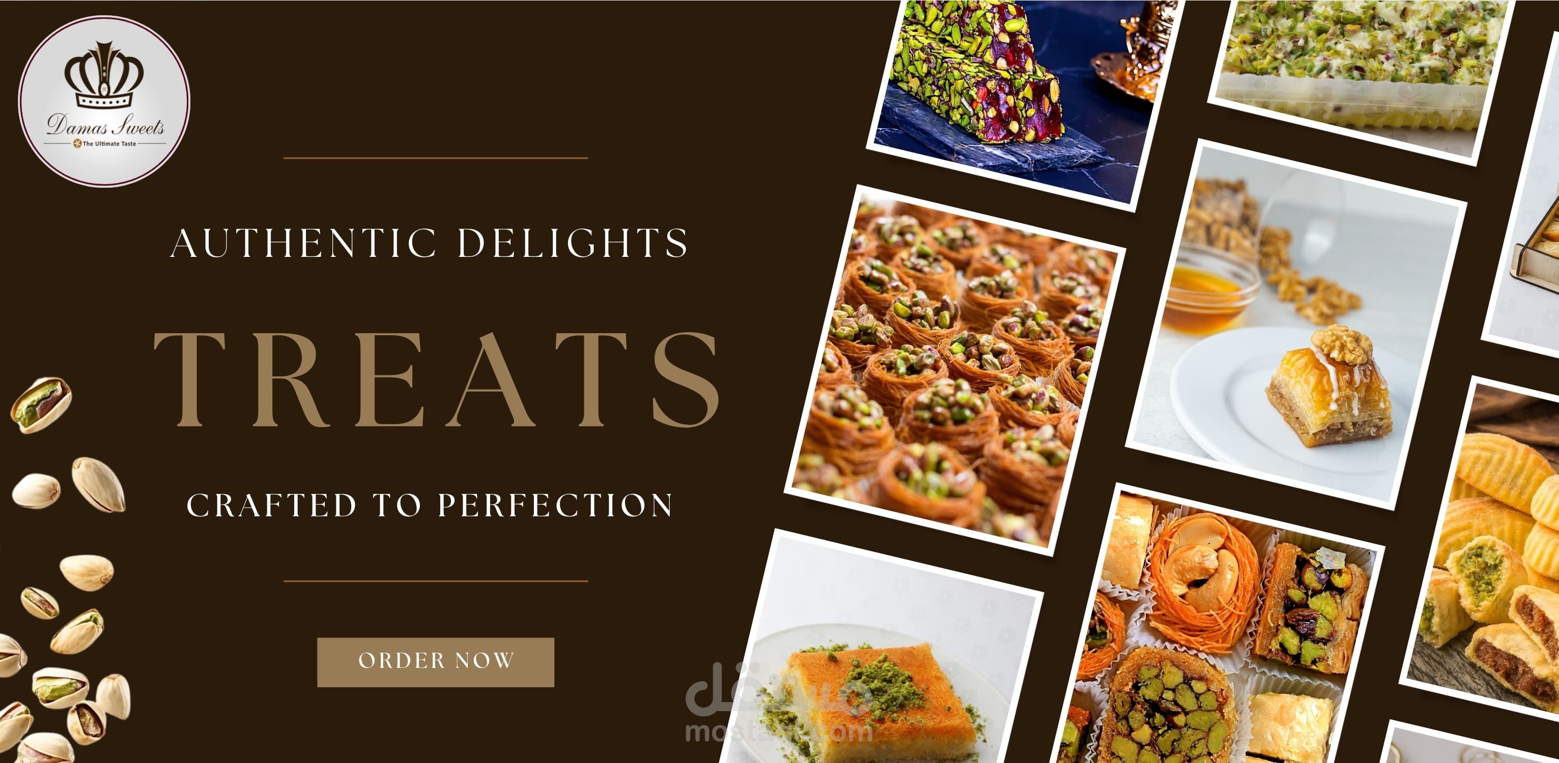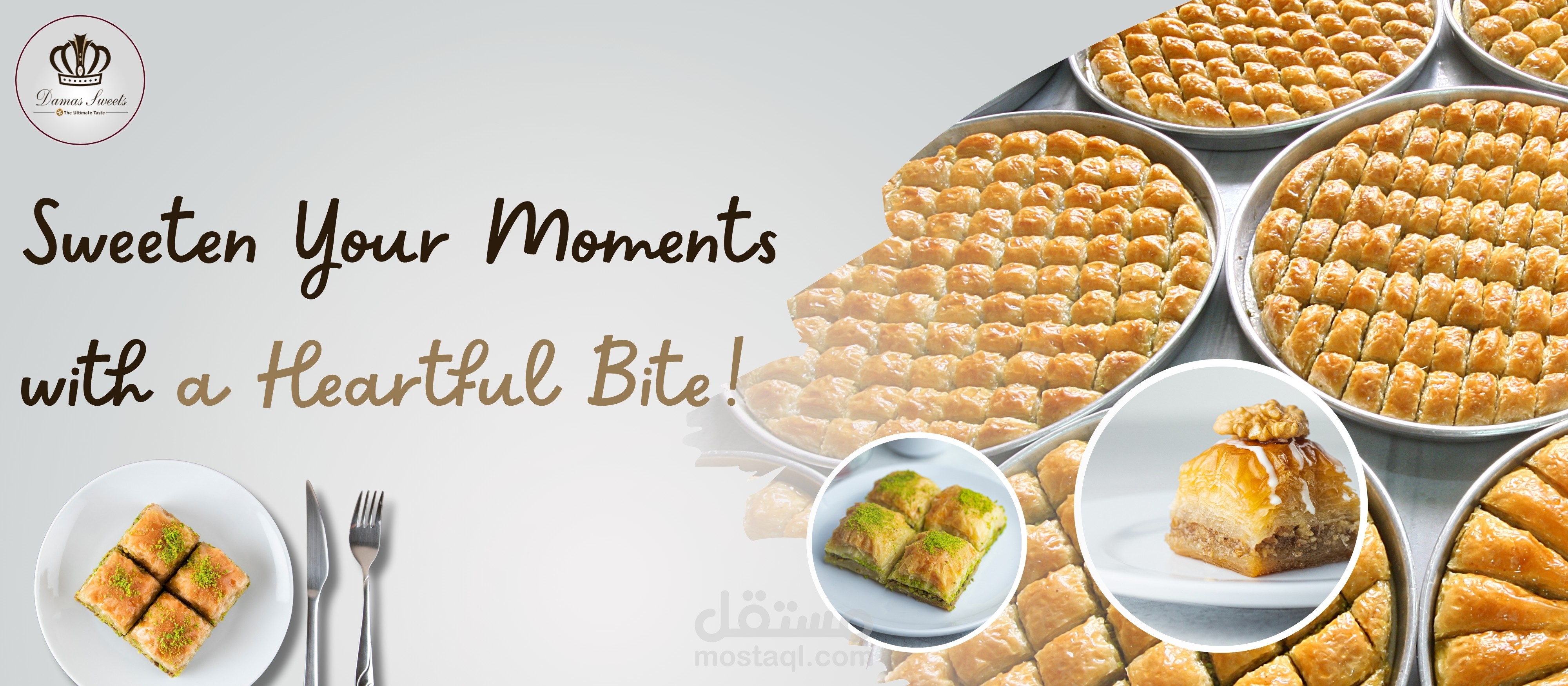 تصميم إعلاني جذاب لحلويات في ماليزيا ، يدمج بين العبارات الإبداعية والرسوم التوضيحية لإبراز جمال النكهات وتوصيل رسالة مليئة بالمشاعر والدفء.