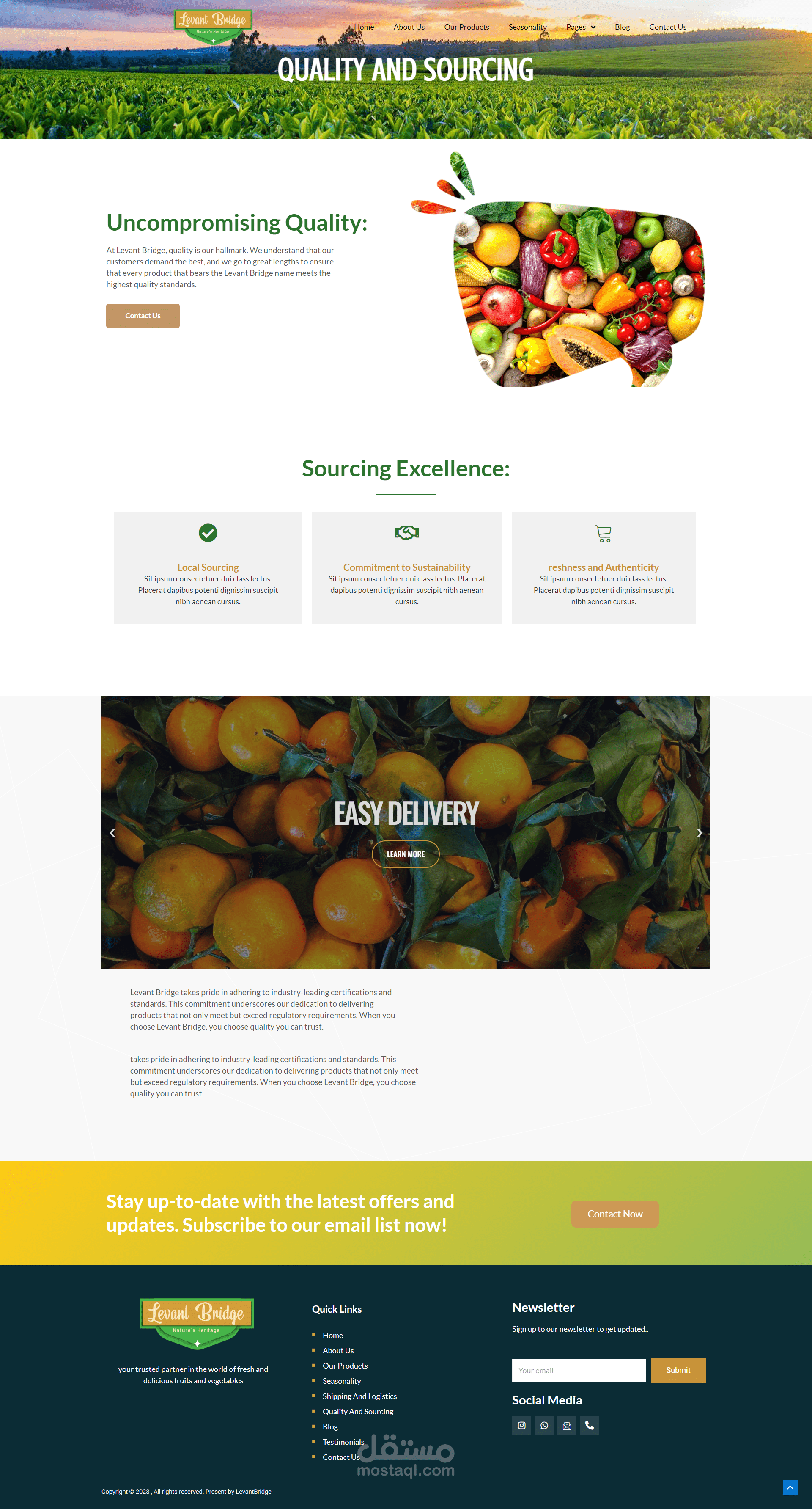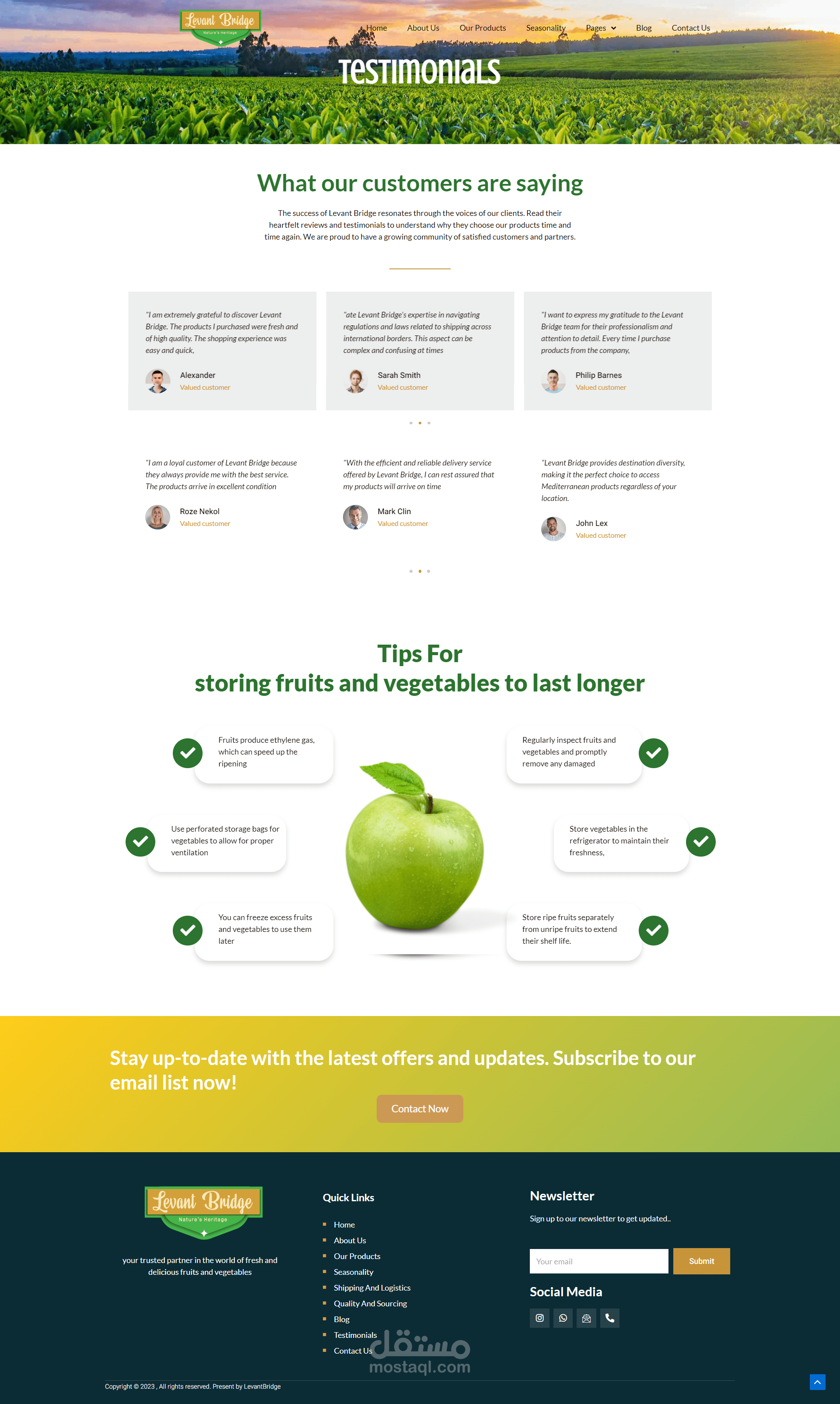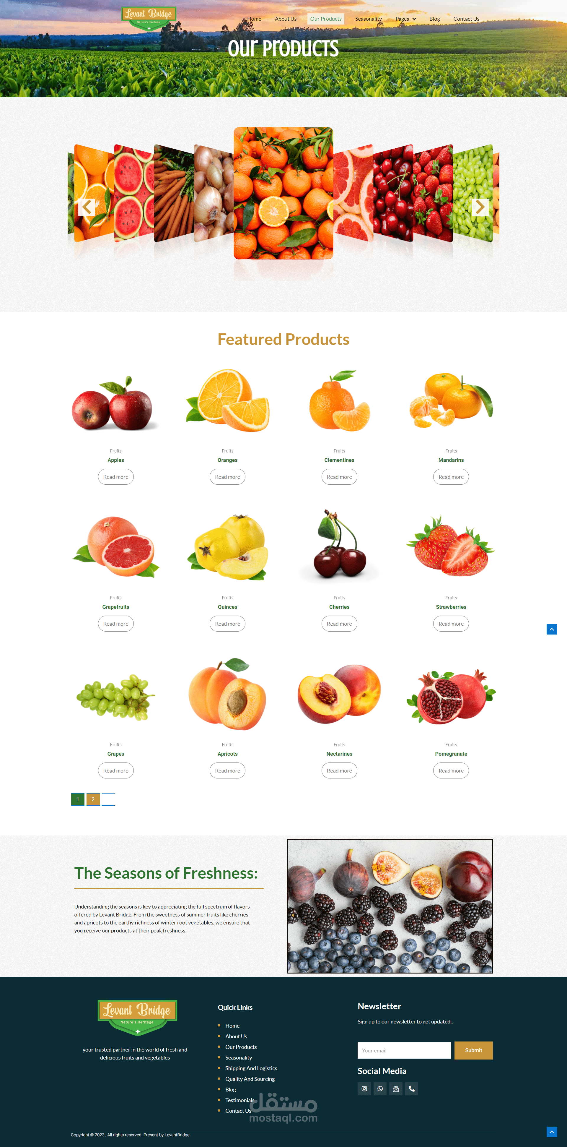 تصميم واجهة موقع إلكتروني عصري لشركة متخصصة في تصدير الفواكه والخضروات، يتميز بالألوان المنعشة والتنظيم البصري الجذاب لعرض المنتجات والخدمات بوضوح واحترافية.