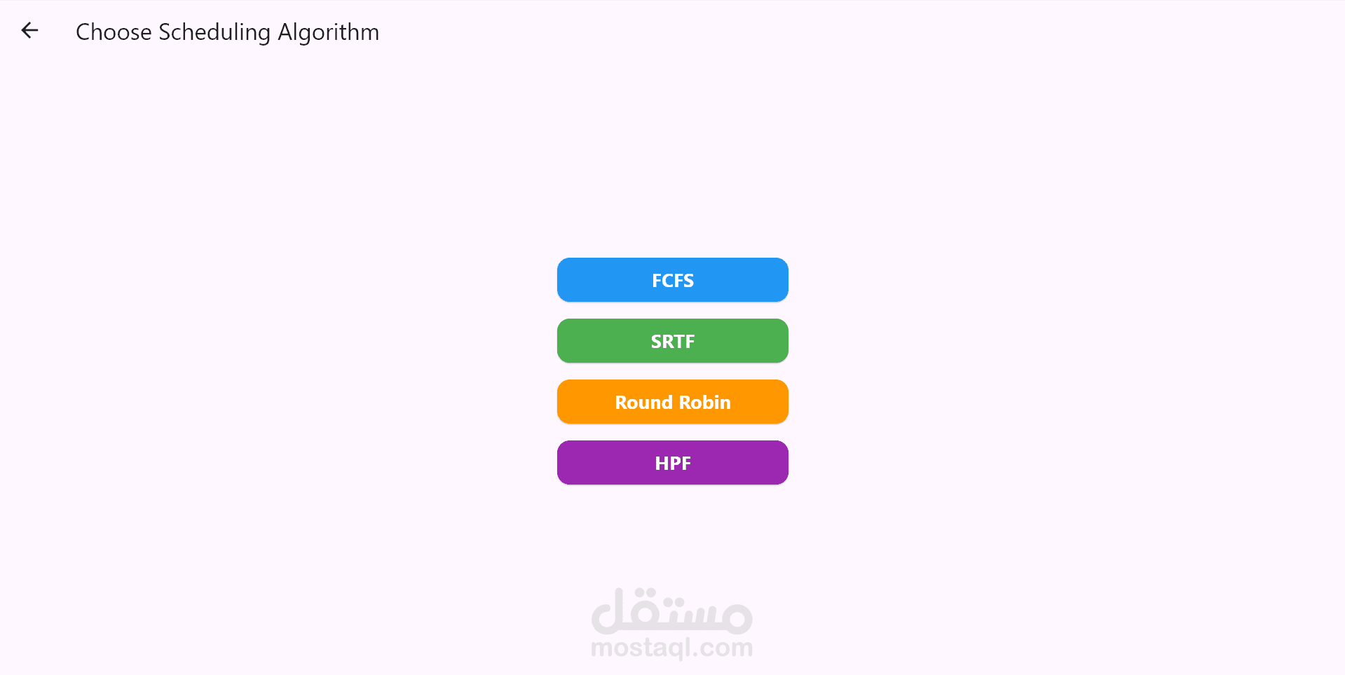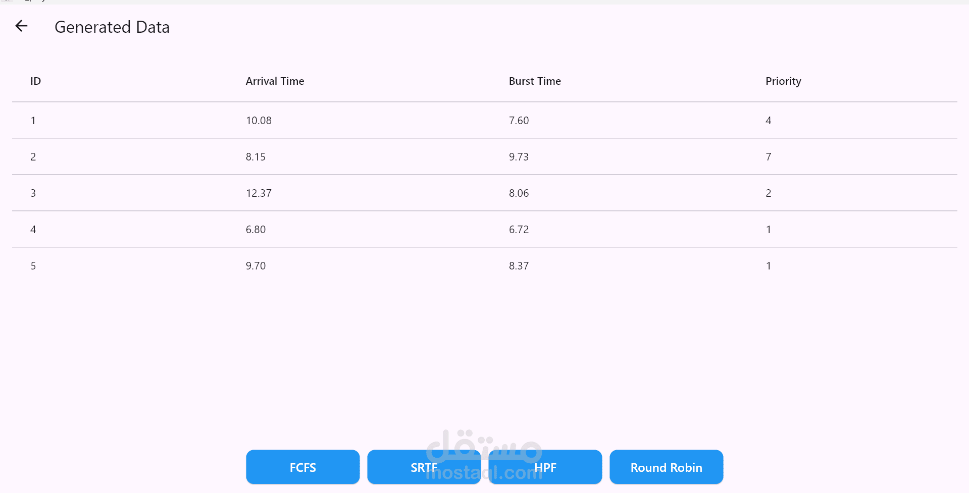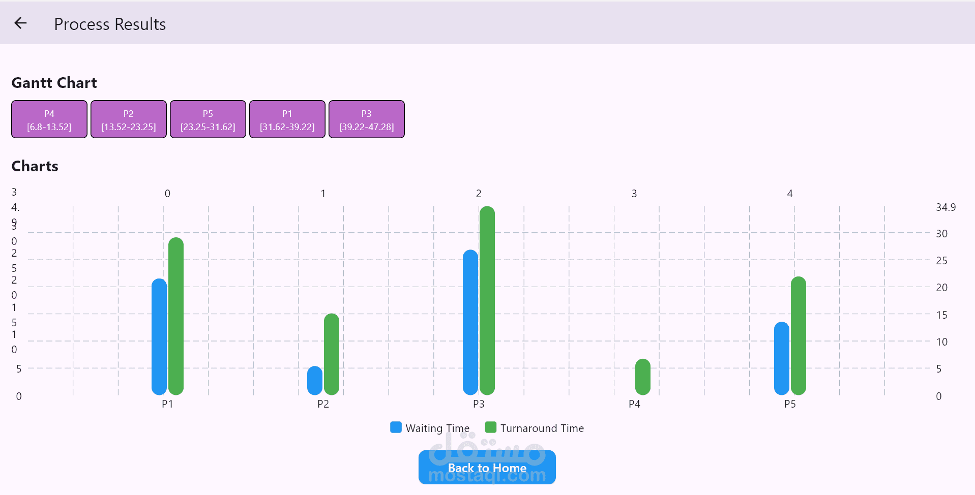 التطبيق بيحسب ويعرض حاجات زي متوسط وقت الانتظار، ومتوسط وقت الدوران، لكل خوارزمية.