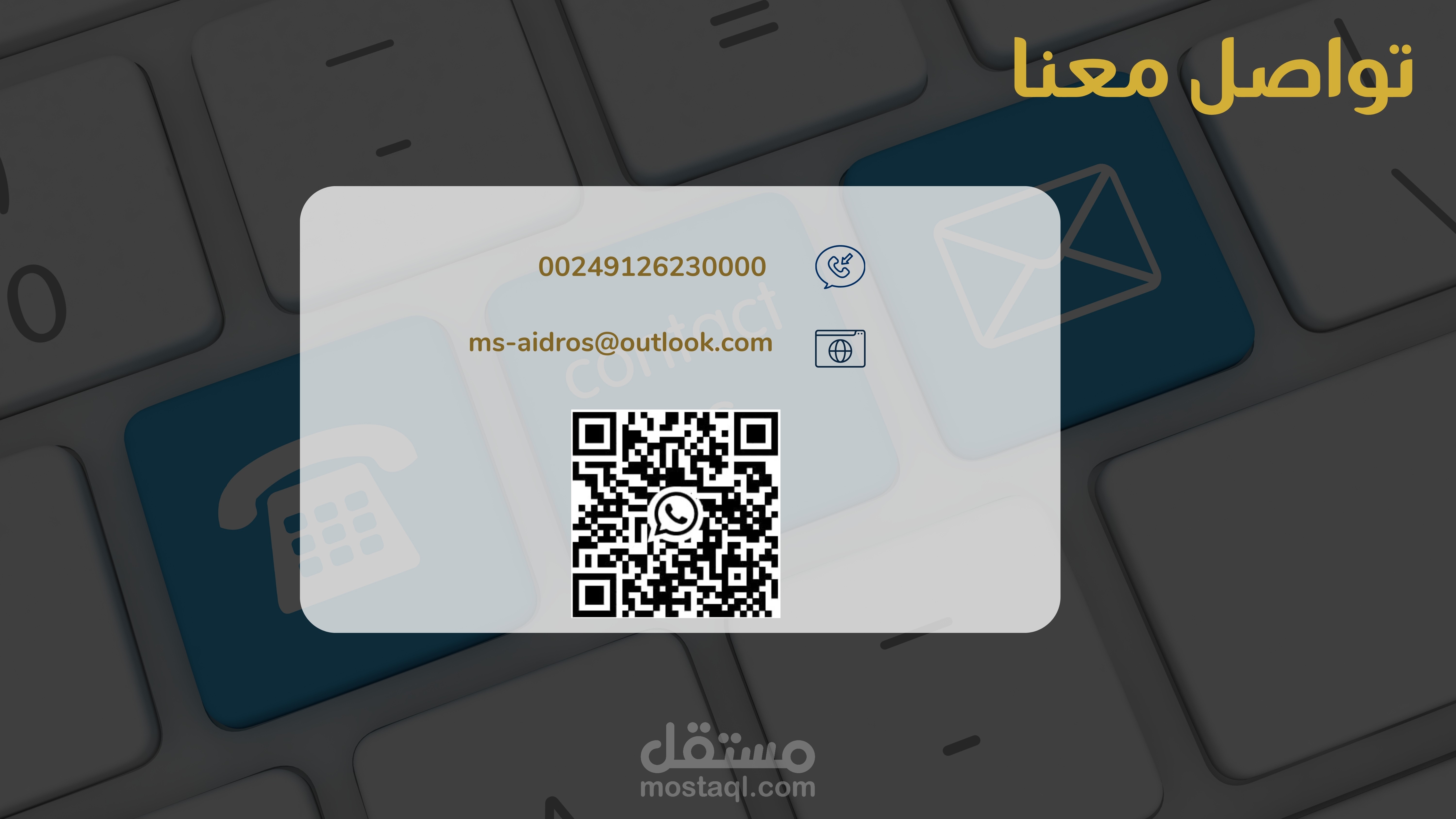 قمت بتنفيذ مشروع متكامل شمل تصميم شعار وهوية بصرية مميزة، بالإضافة إلى إعداد ملف تعريفي احترافي لشركة عيدروس للاستشارات المالية، مع التركيز على إبراز الثقة، الاحترافية، والخبرة في المجال المالي.