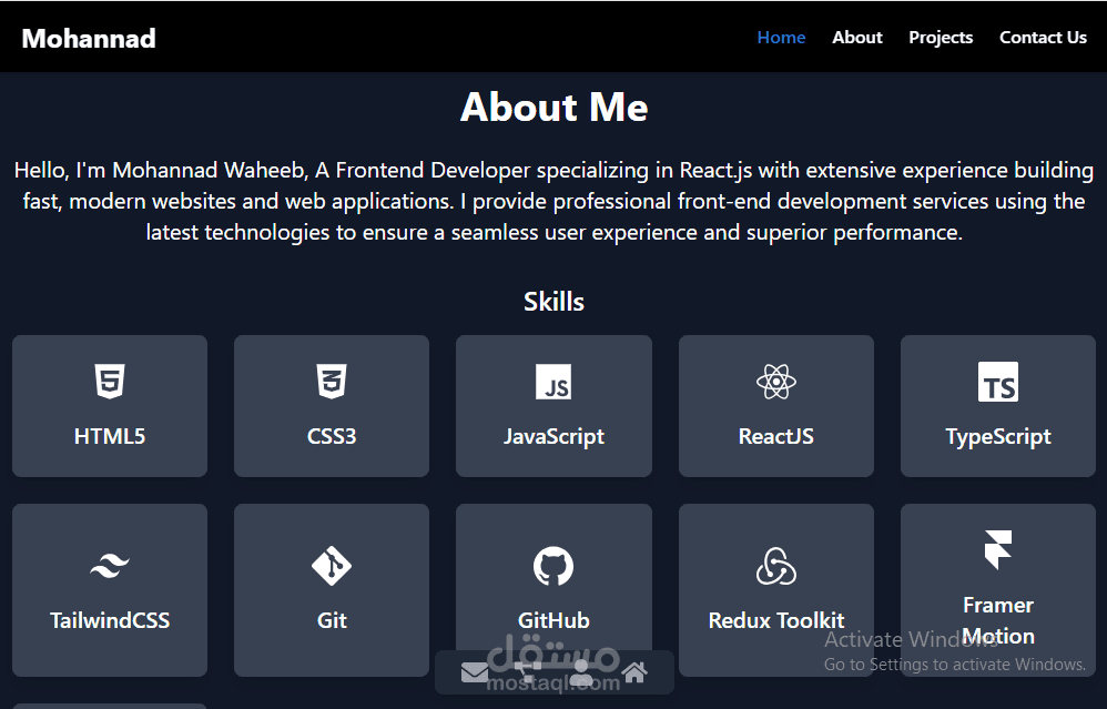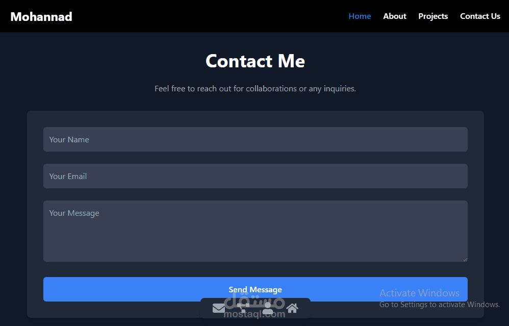 قمت بتصميم وتطوير موقع شخصي متكامل يعرض نبذة عني، مهاراتي، وأعمالي السابقة، بالإضافة إلى قسم تواصل بسيط وسلس.
