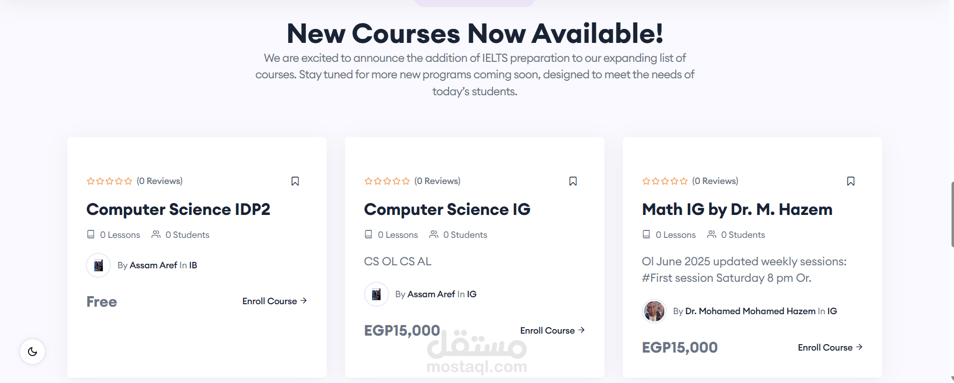 قمت بعمل منصه للكورسات التعليميلة لطلاب الig , ib and american