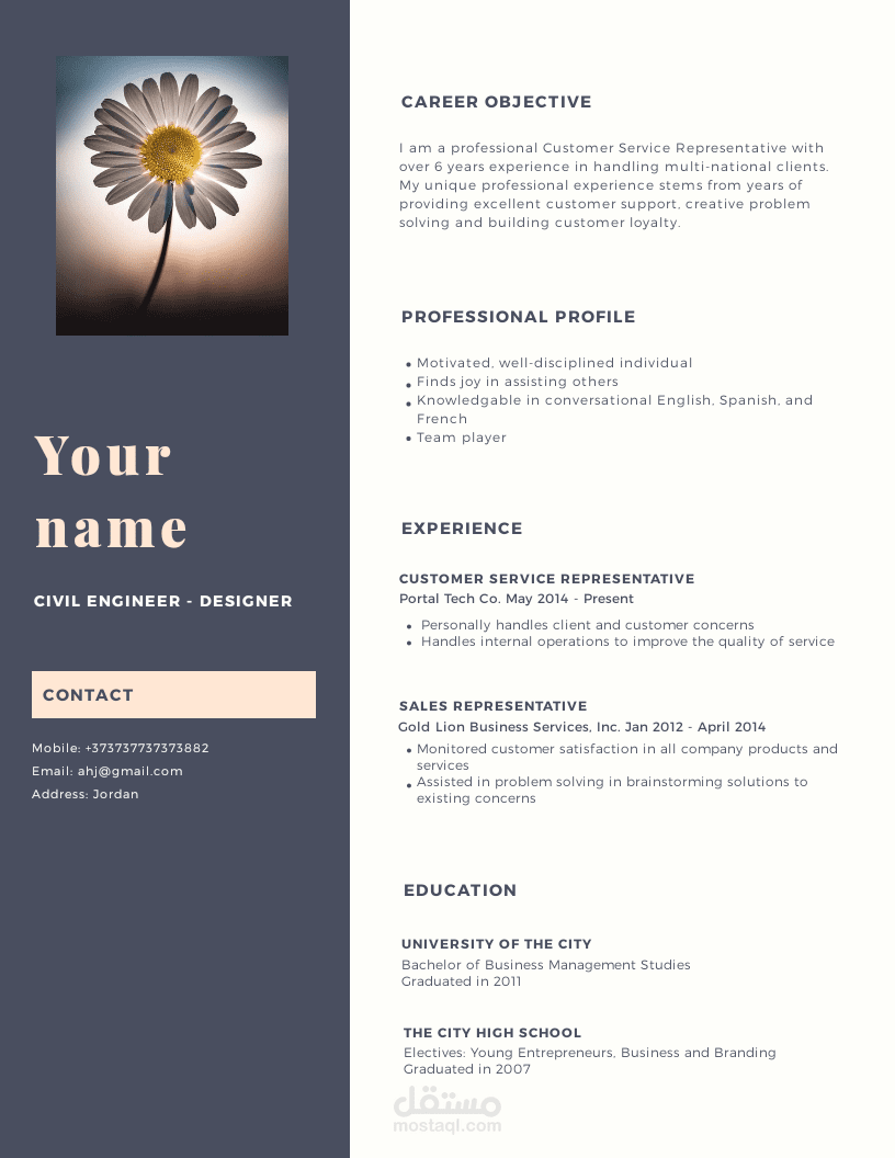 عمل سيرة ذاتية باحترافية عالية و بالتصميم الذي تريده..
