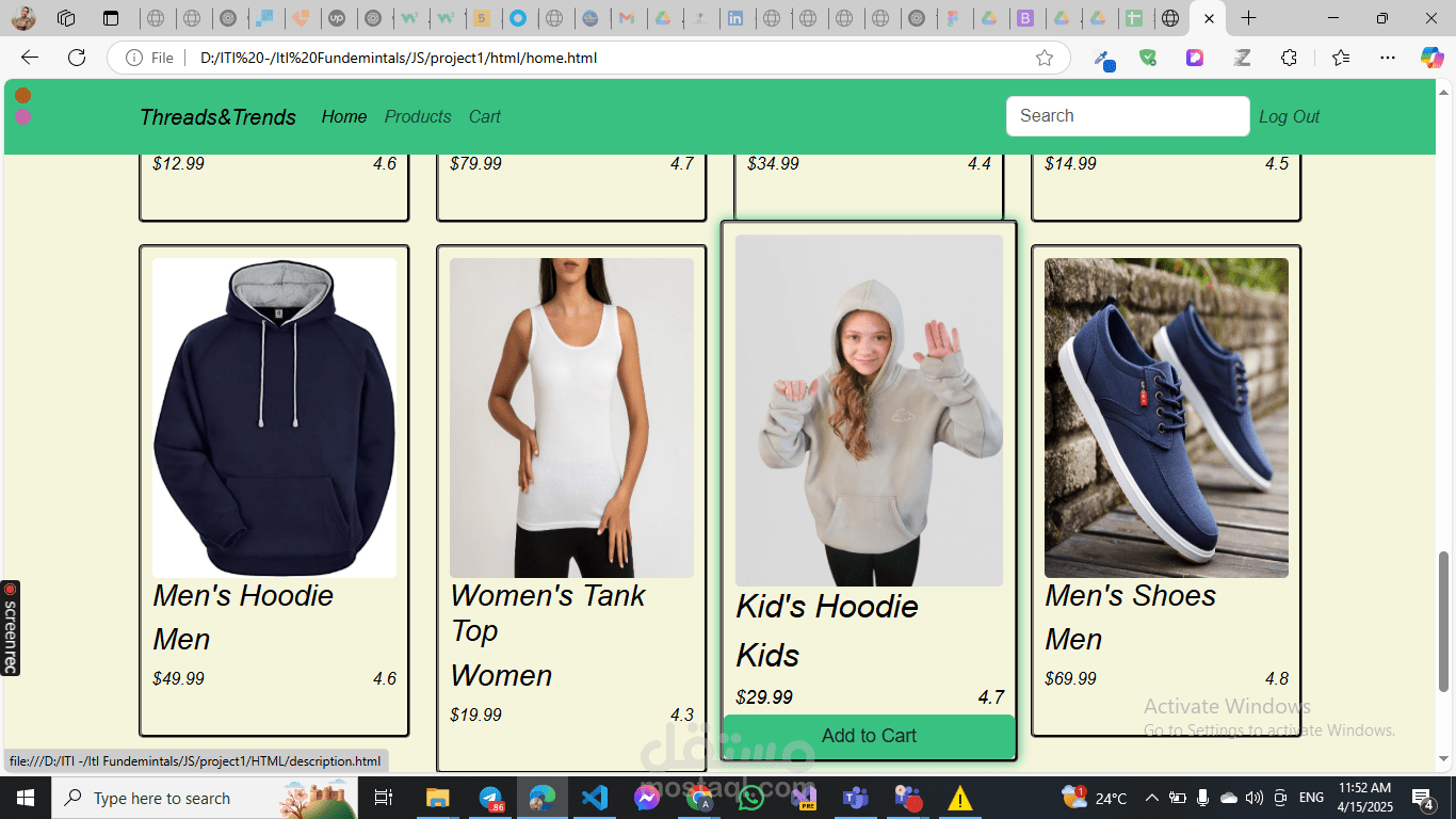 يتم عرض المنتجات في الهوم و اقسامهم