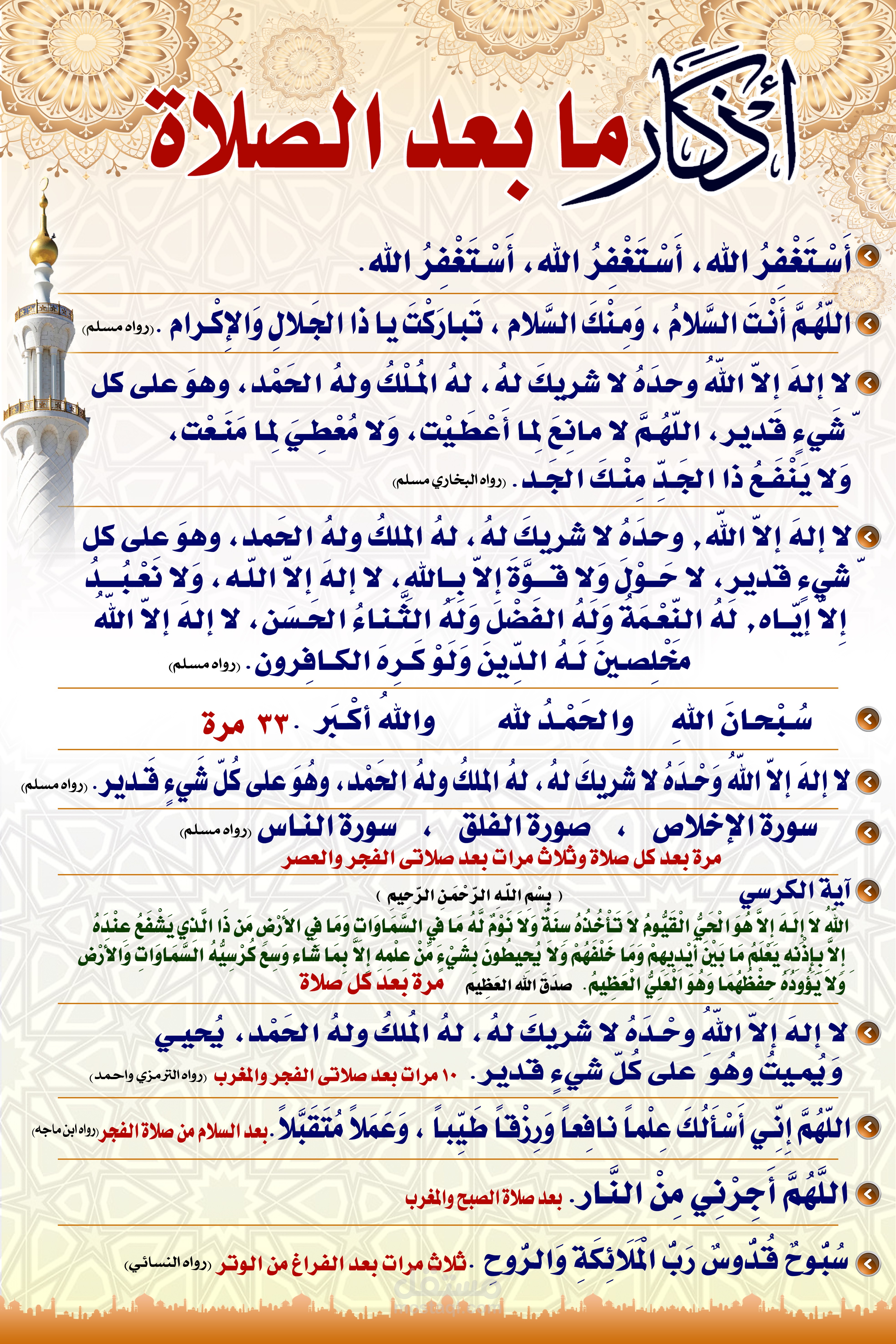 تصميم أذكار ما بعد الصلاوات المفروضة بجودة عالية