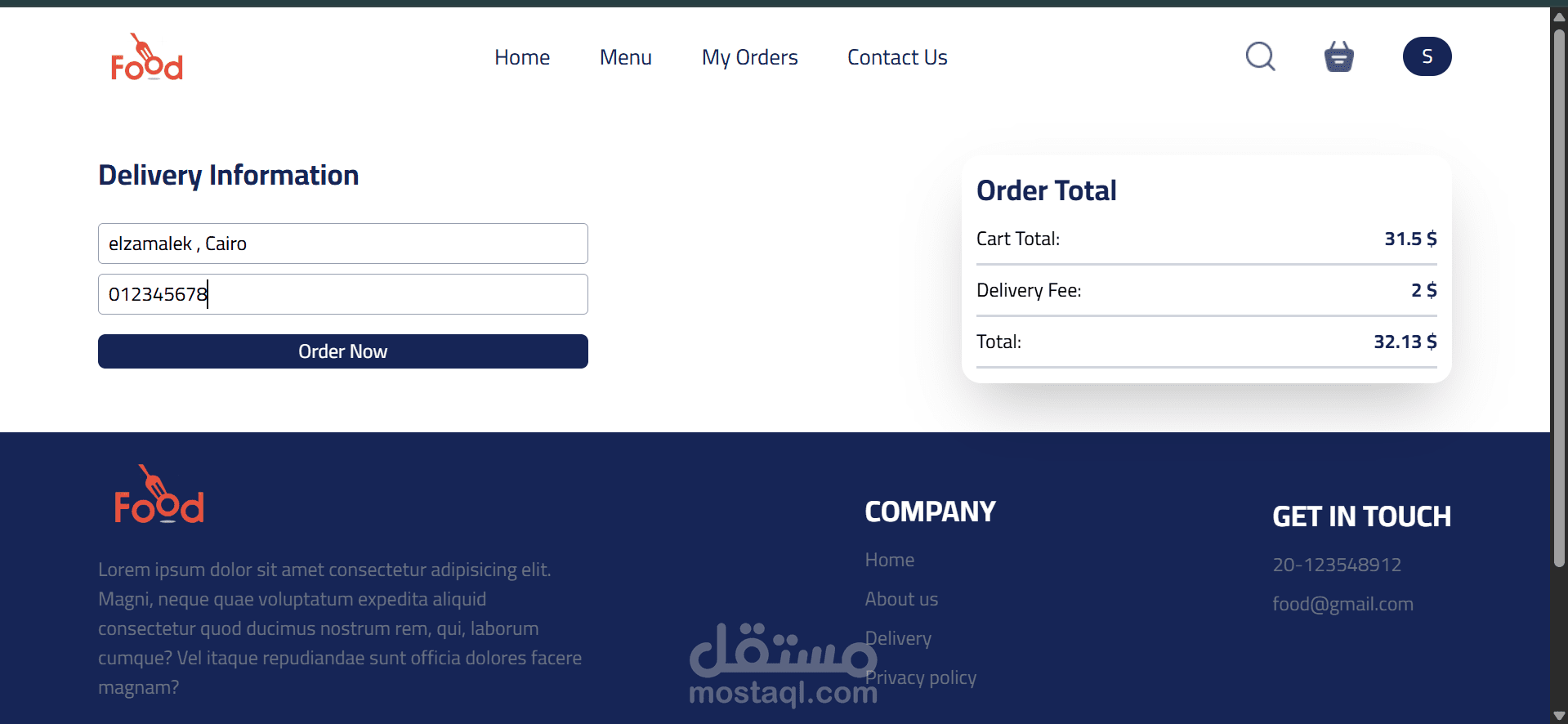 A full-stack food ordering application built using the MERN (MongoDB, Express.js, React.js, Node.js) stack and tailwind.