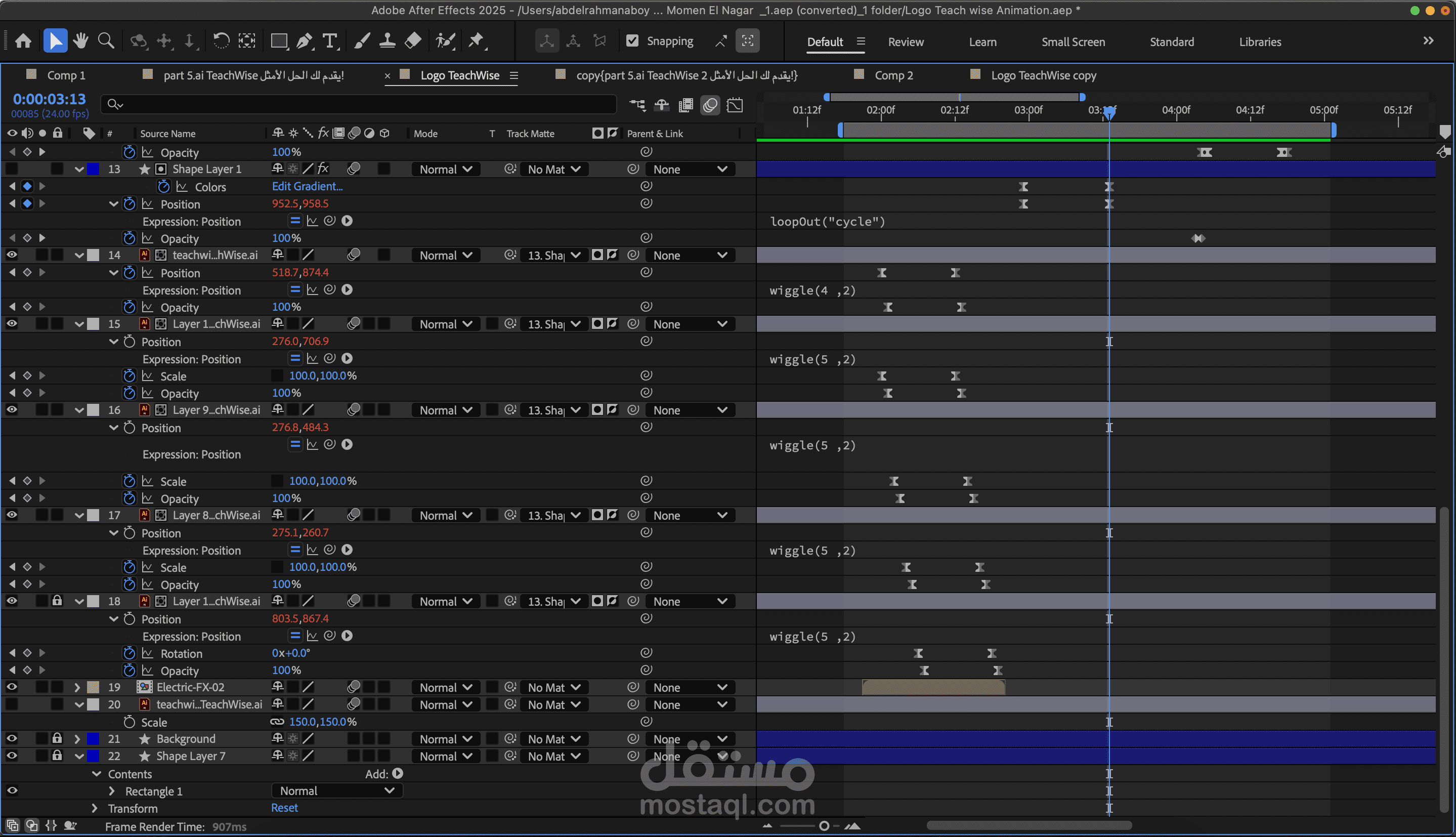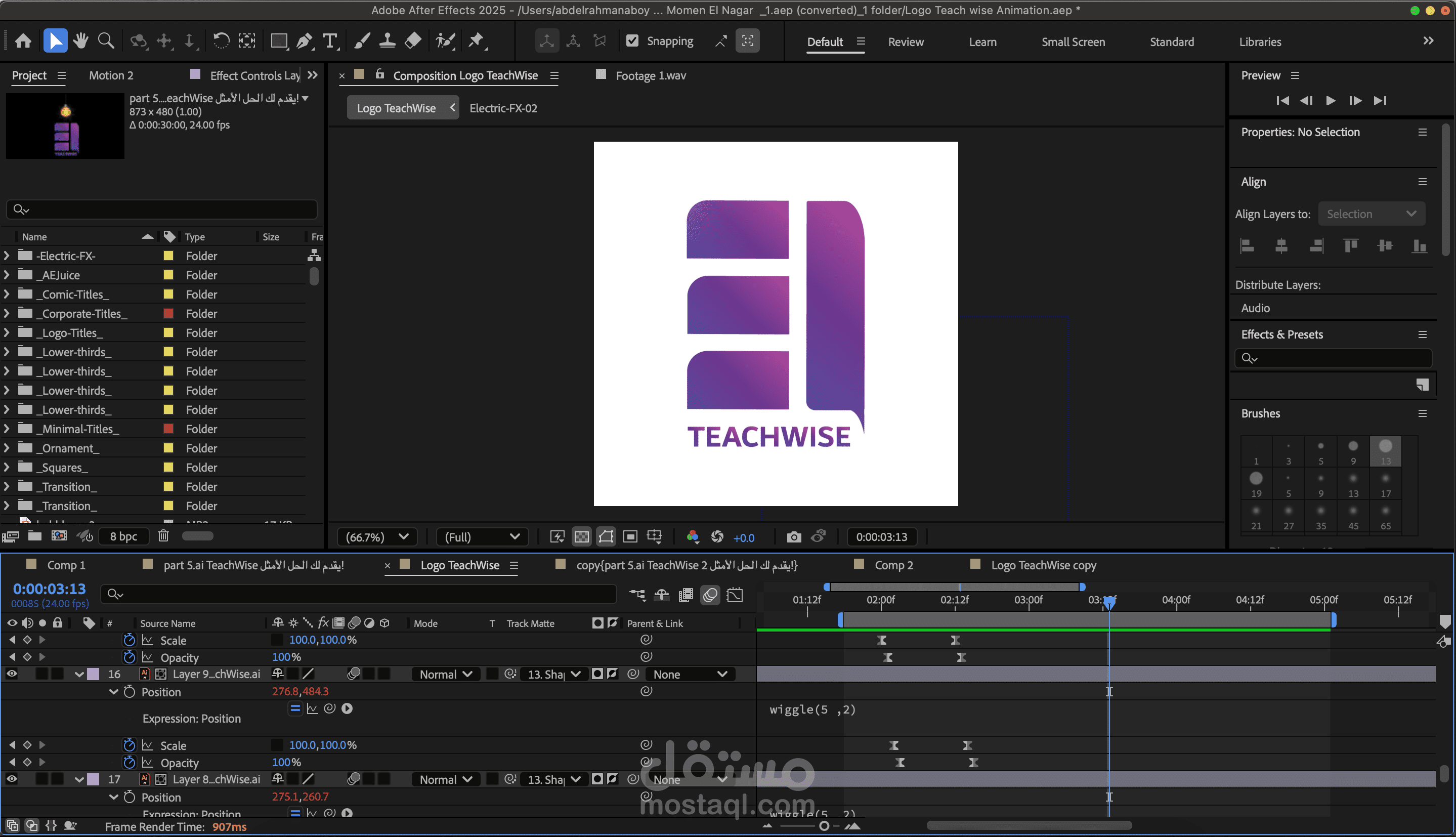 وبعد أن انتهيت من التحريك قمت بالمراجعة علي المشروع بالكامل وتحسين الحركة لجعلها أكثر سلاسة ومرونة