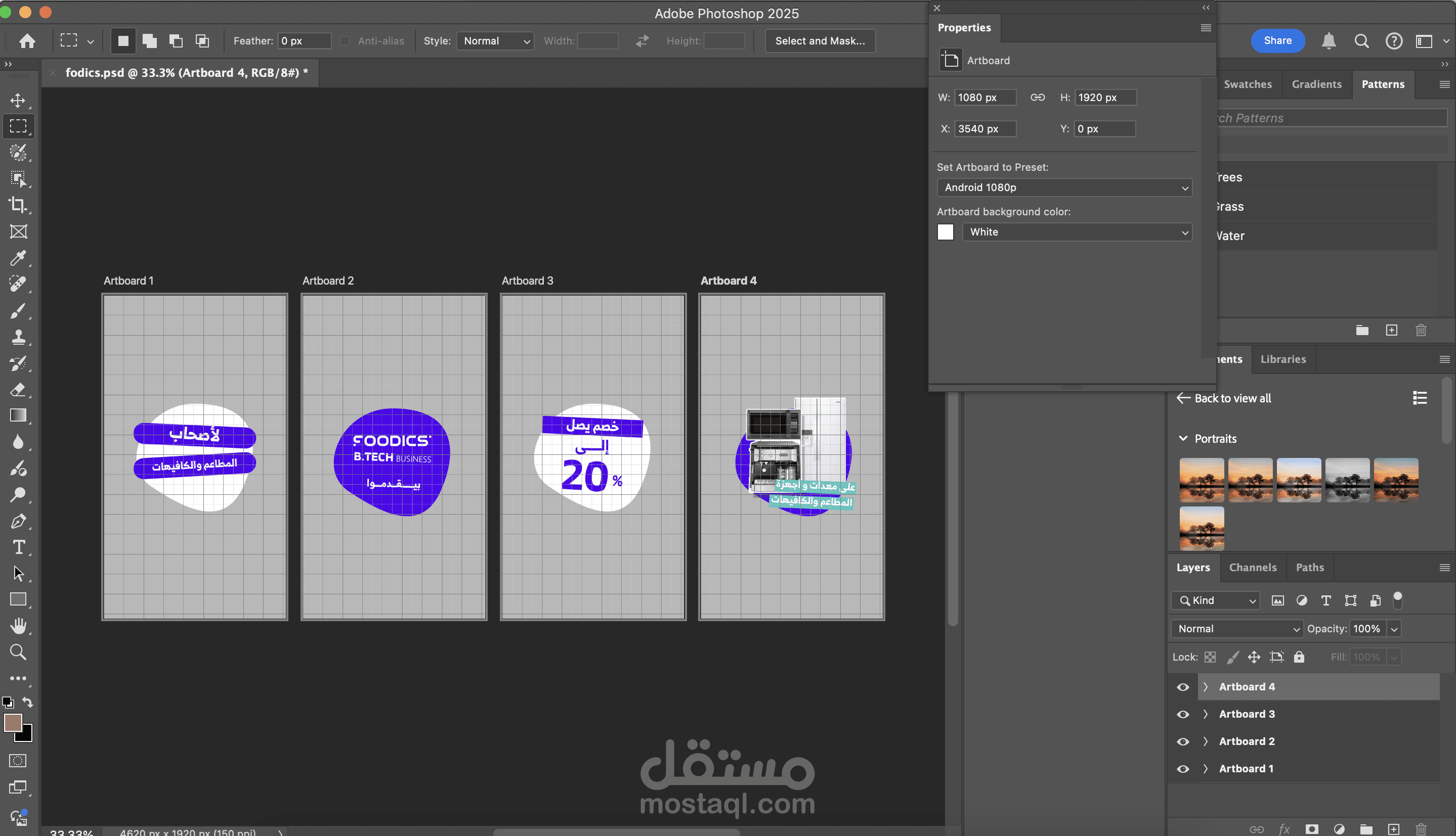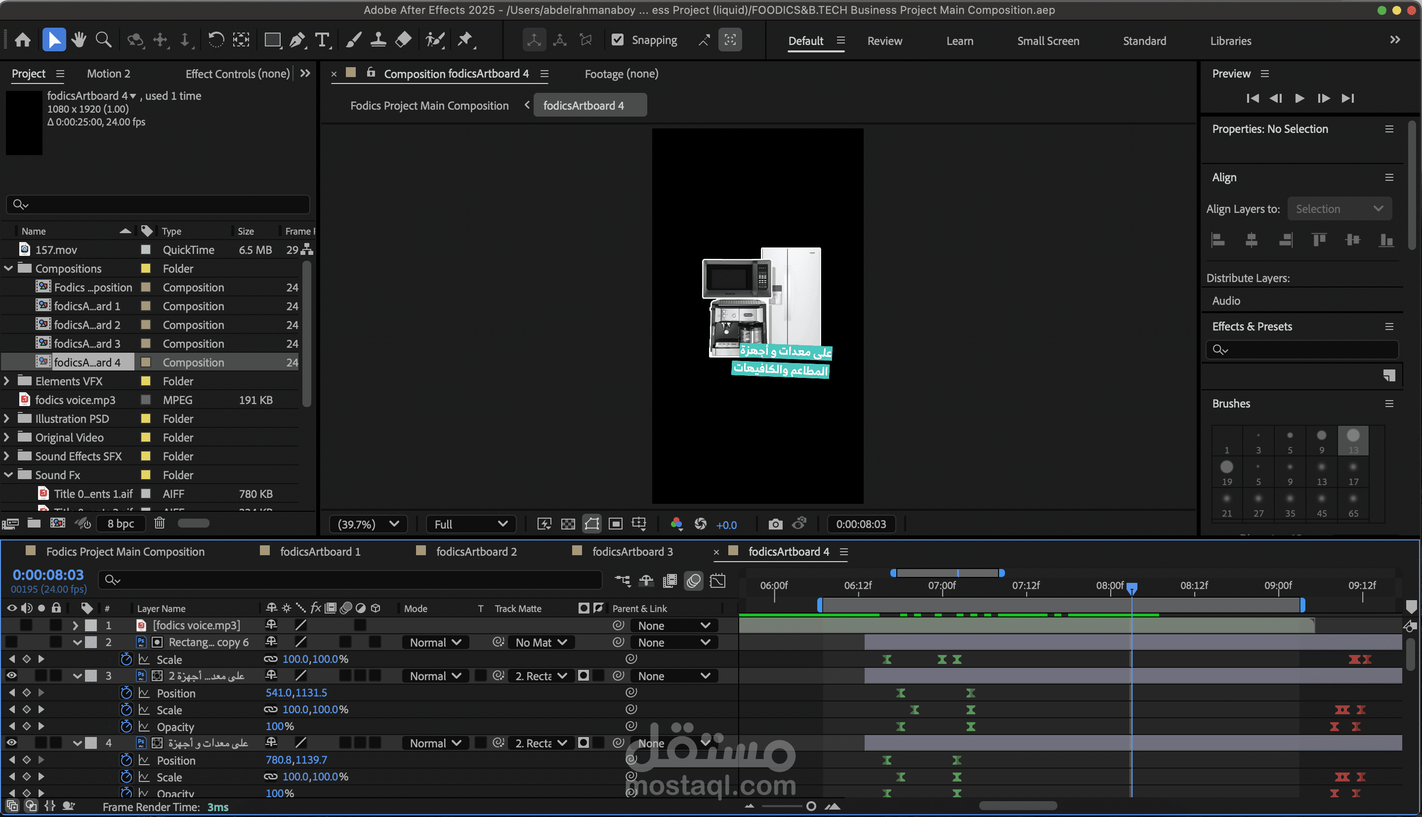أول شئ فتحت برنامج Adobe Photoshop وقمت بتفكيك الLayers وتنظيمها وتهيئة العناصر للتحريك