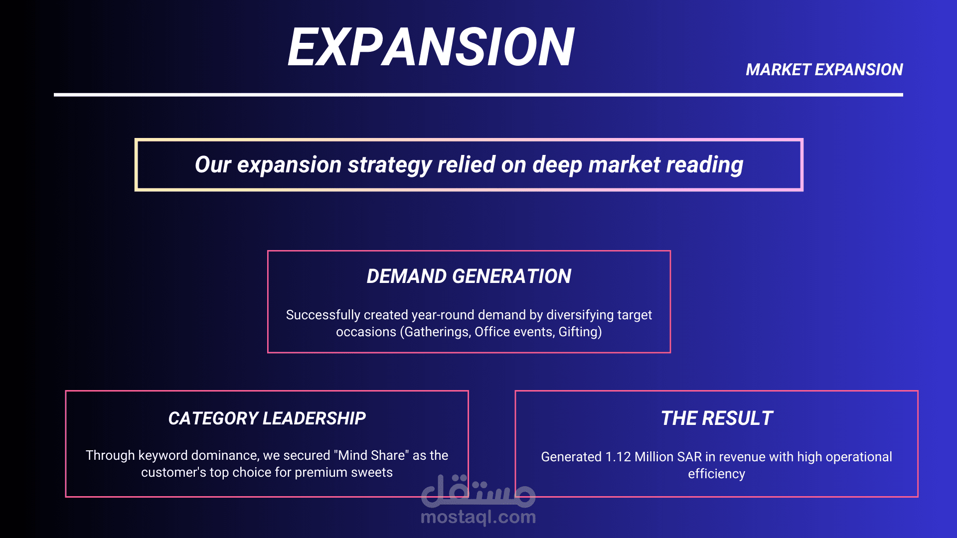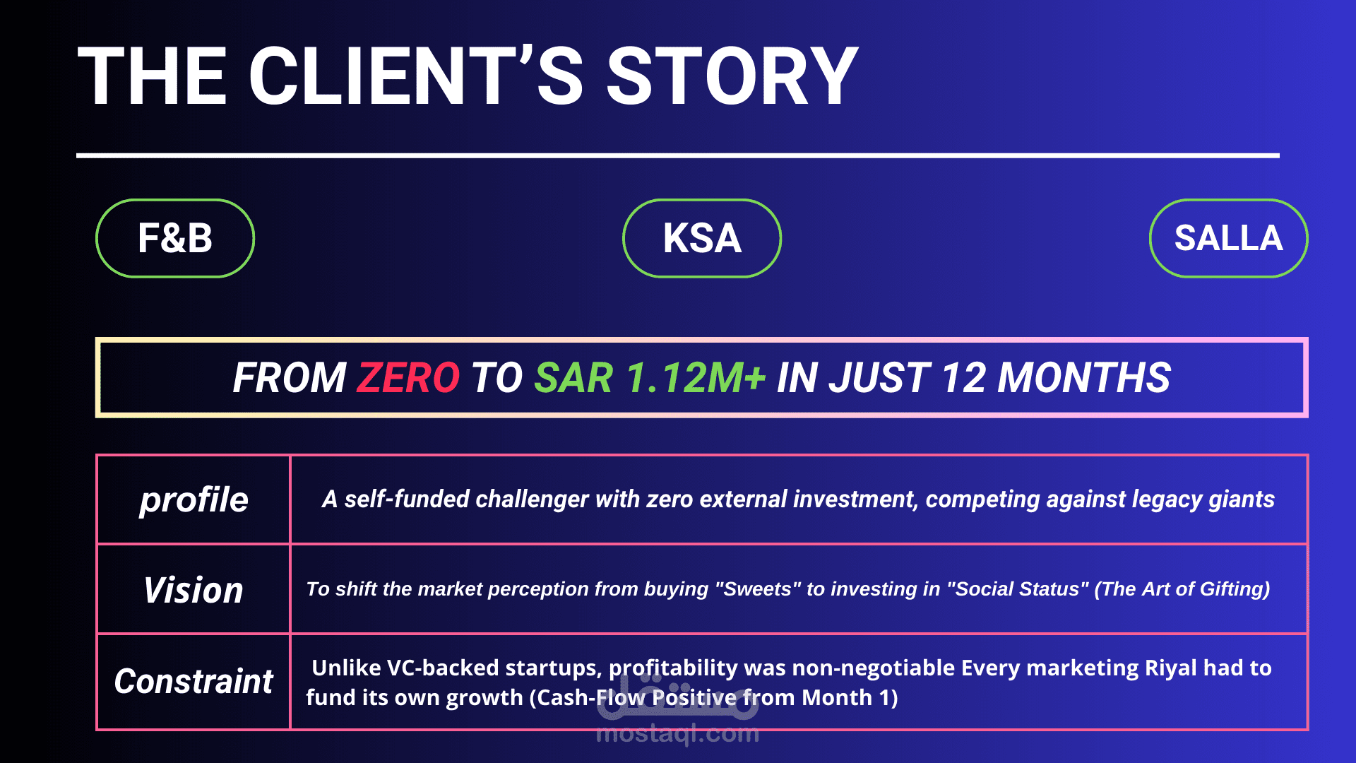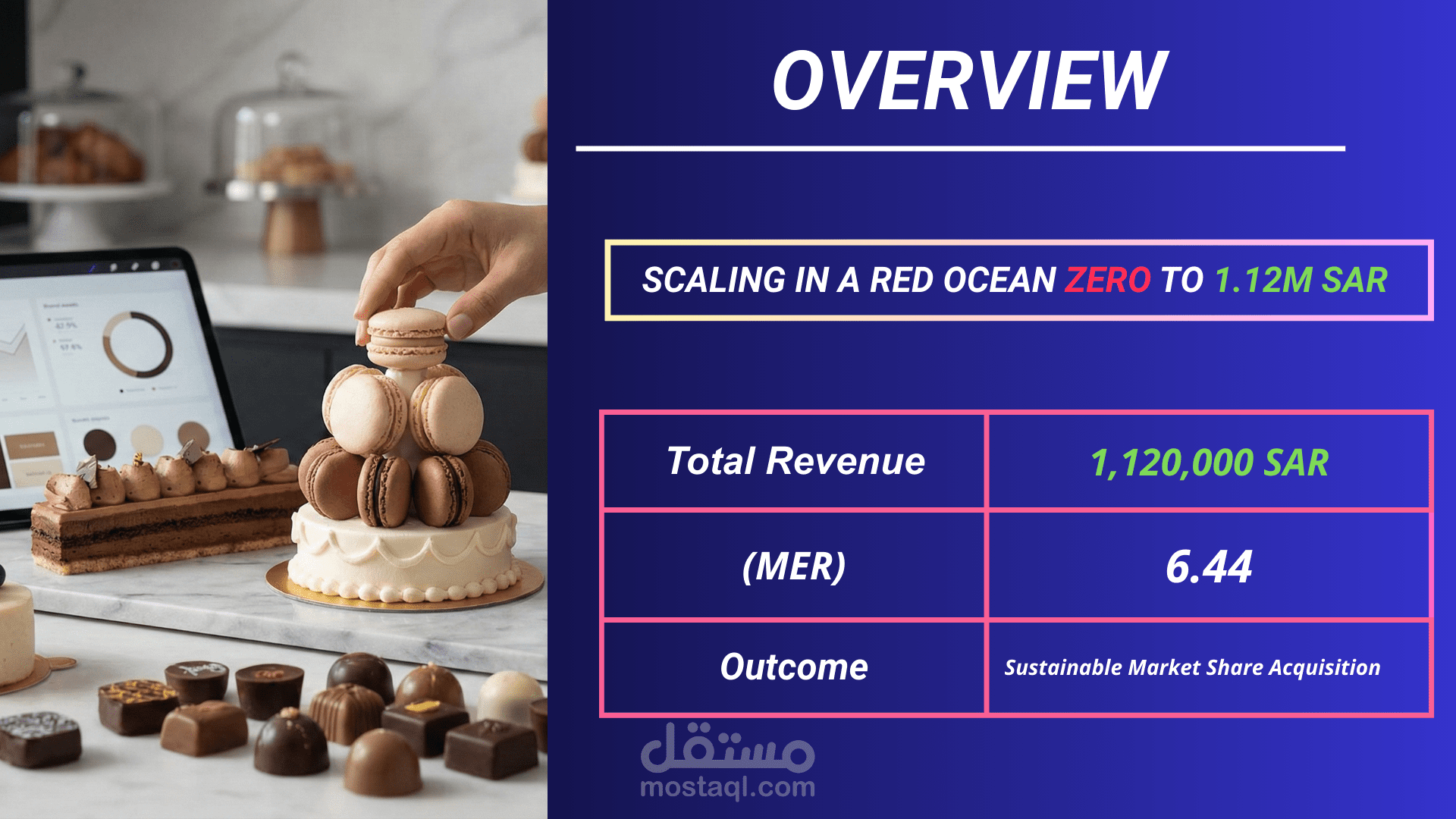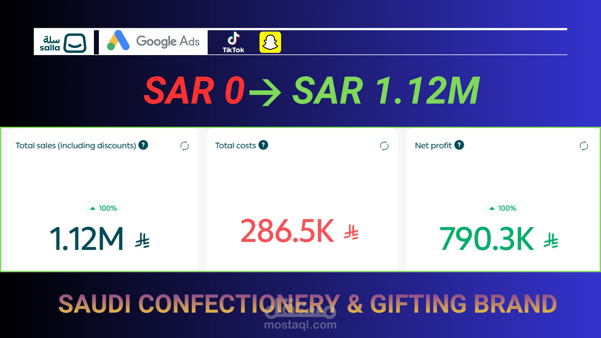 Scaled a self-funded Saudi confectionery brand to 1,120,000 SAR in revenue using omni-channel performance branding