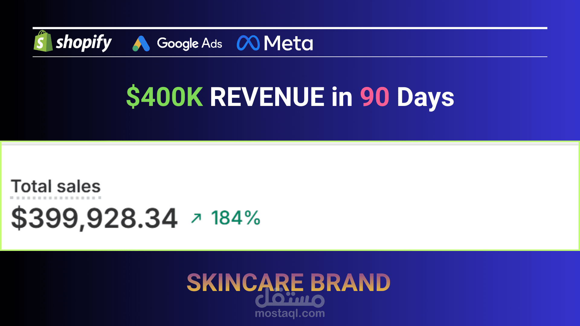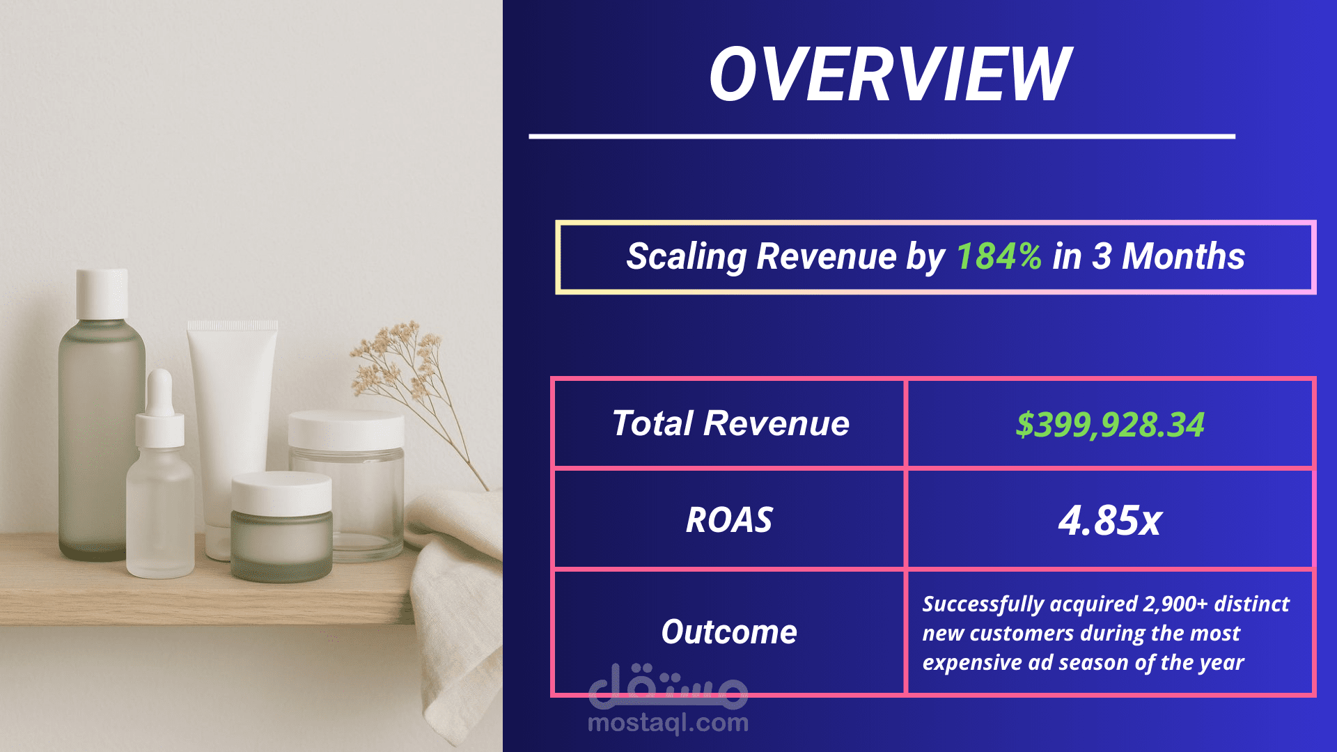 Scaled a premium vegan skincare brand from $140K to $399,928 (+184%) in Q4 using profit-centric performance branding