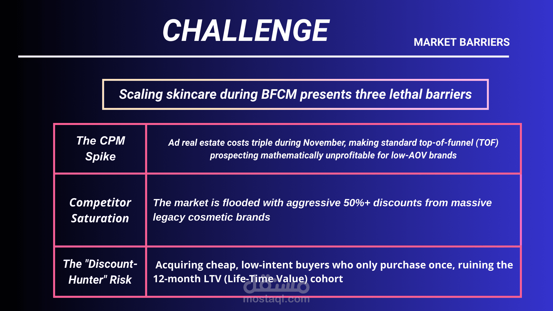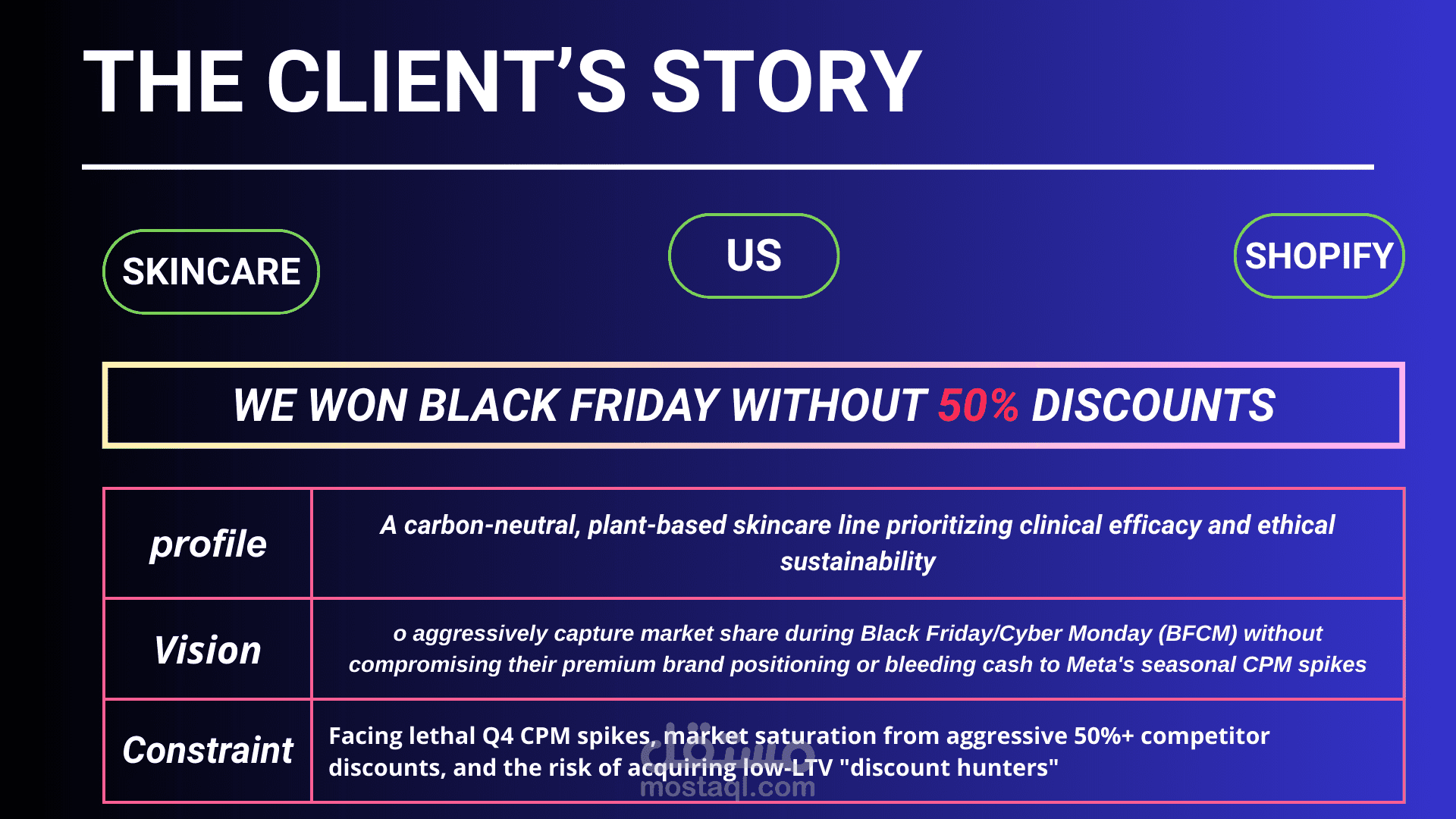 A premium vegan skincare brand struggling to scale profitably beyond baseline revenue due to rising Q4 acquisition costs