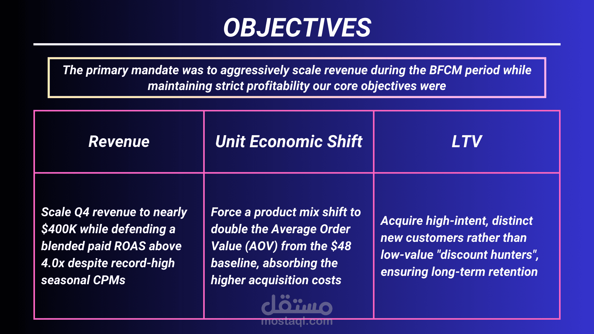 The goal was to aggressively capture market share during BFCM without compromising brand positioning or attracting low-value discount hunters