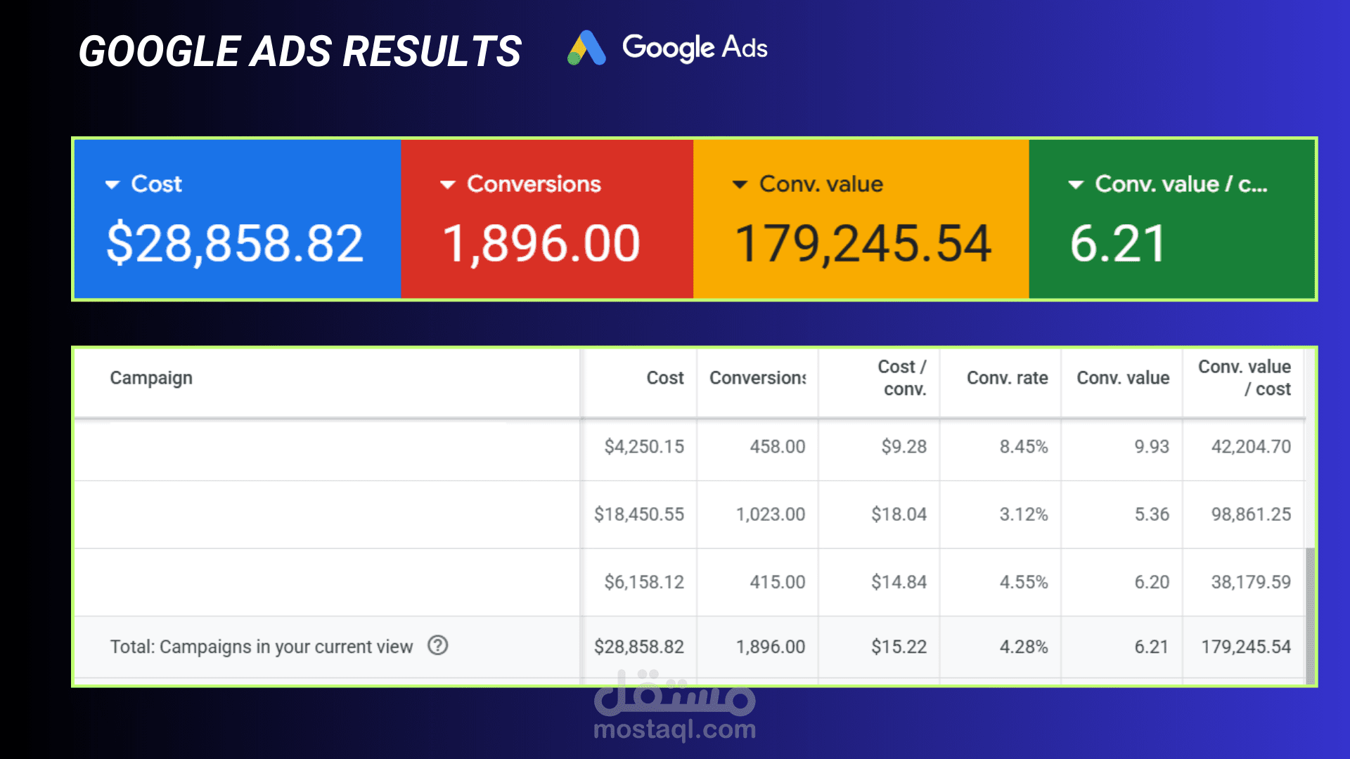 Google Ads generated $179,245.54 at a 6.21x ROAS while securing a 9.93x ROAS on Search