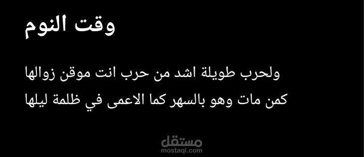 كتبت قصيدة قصيرة فصيحة بعنوان وقت النوم الذي يعد راحة للبعض وعذاب نفسي للبعض الآخر والصور الملحقة تظهر جزءًا بسيطًا من القصيدة الأصلية، وهذا العمل من اكثر الأعمال المحبوبة.
