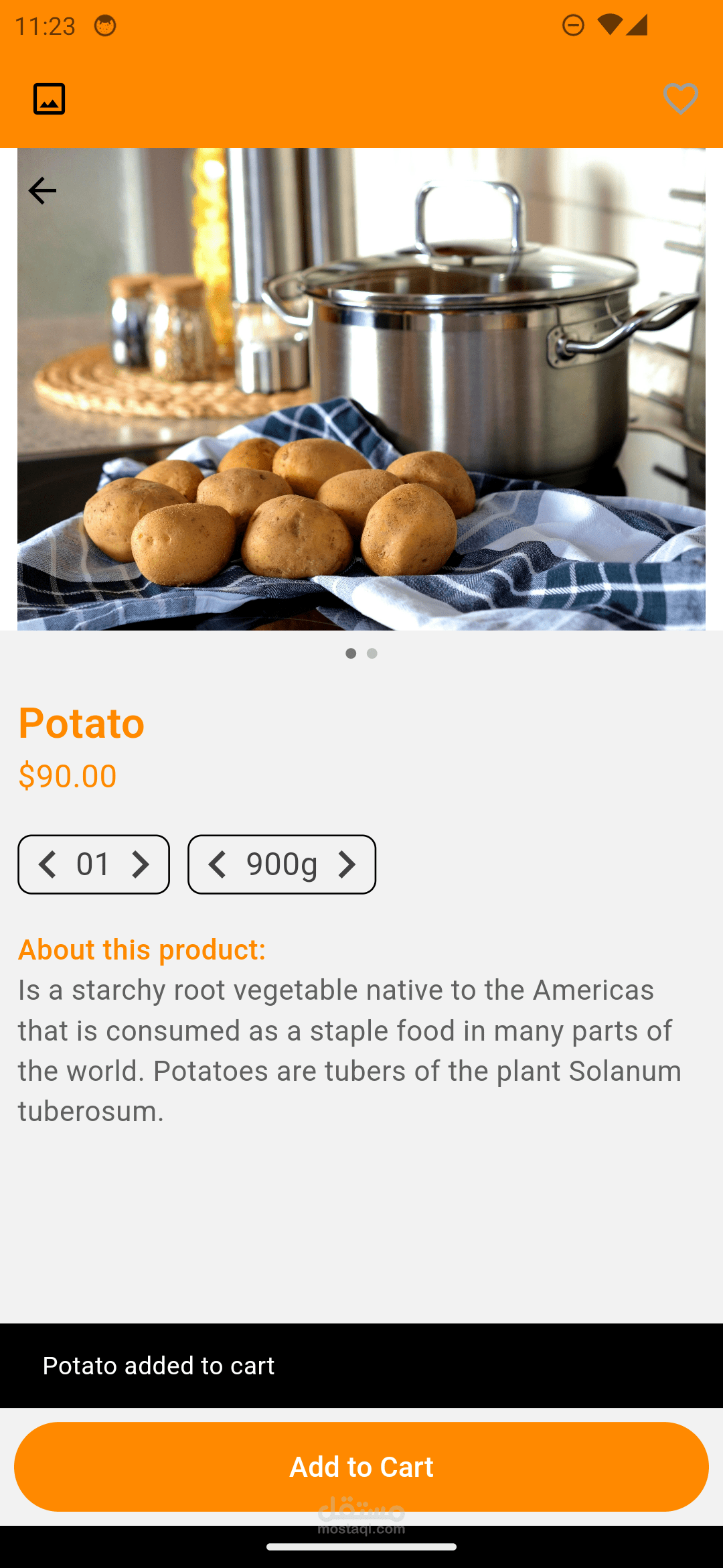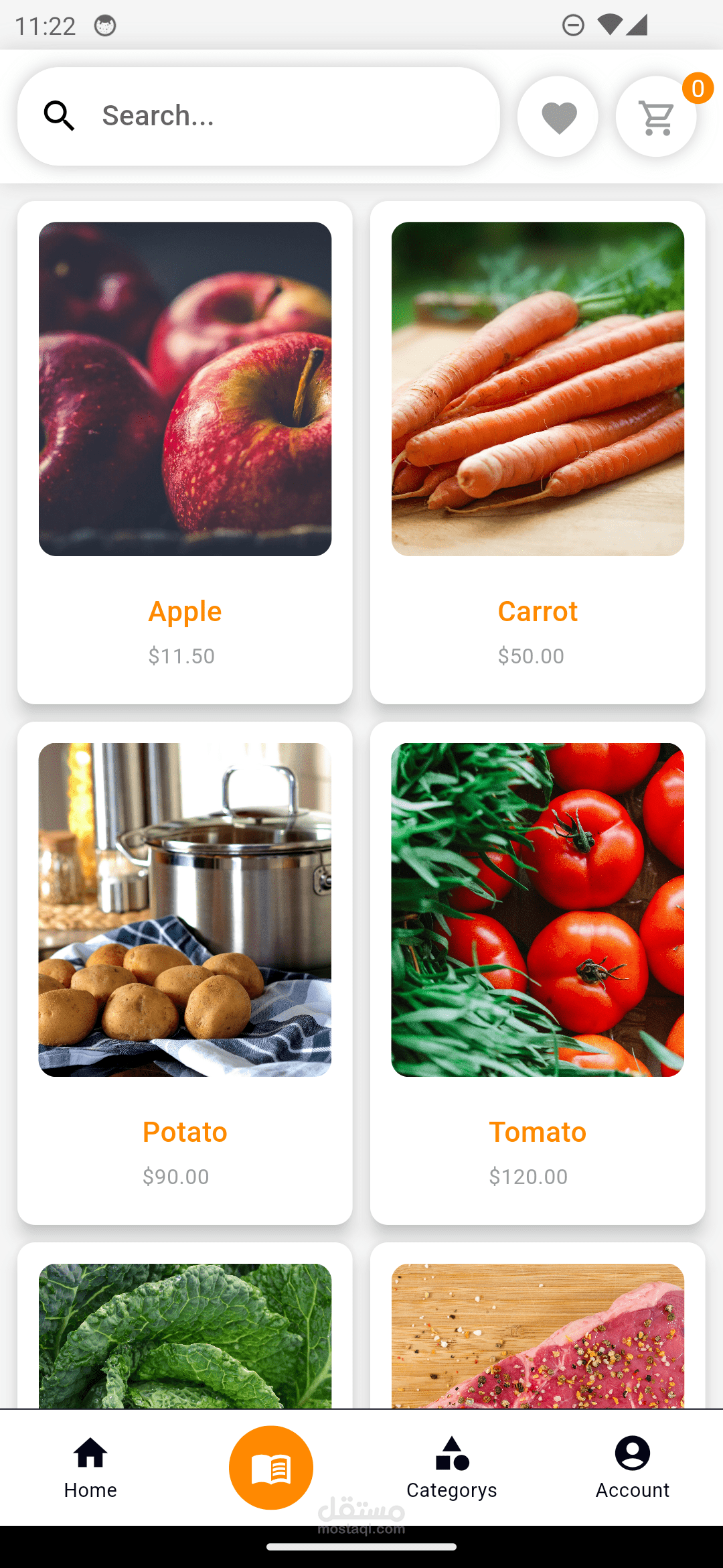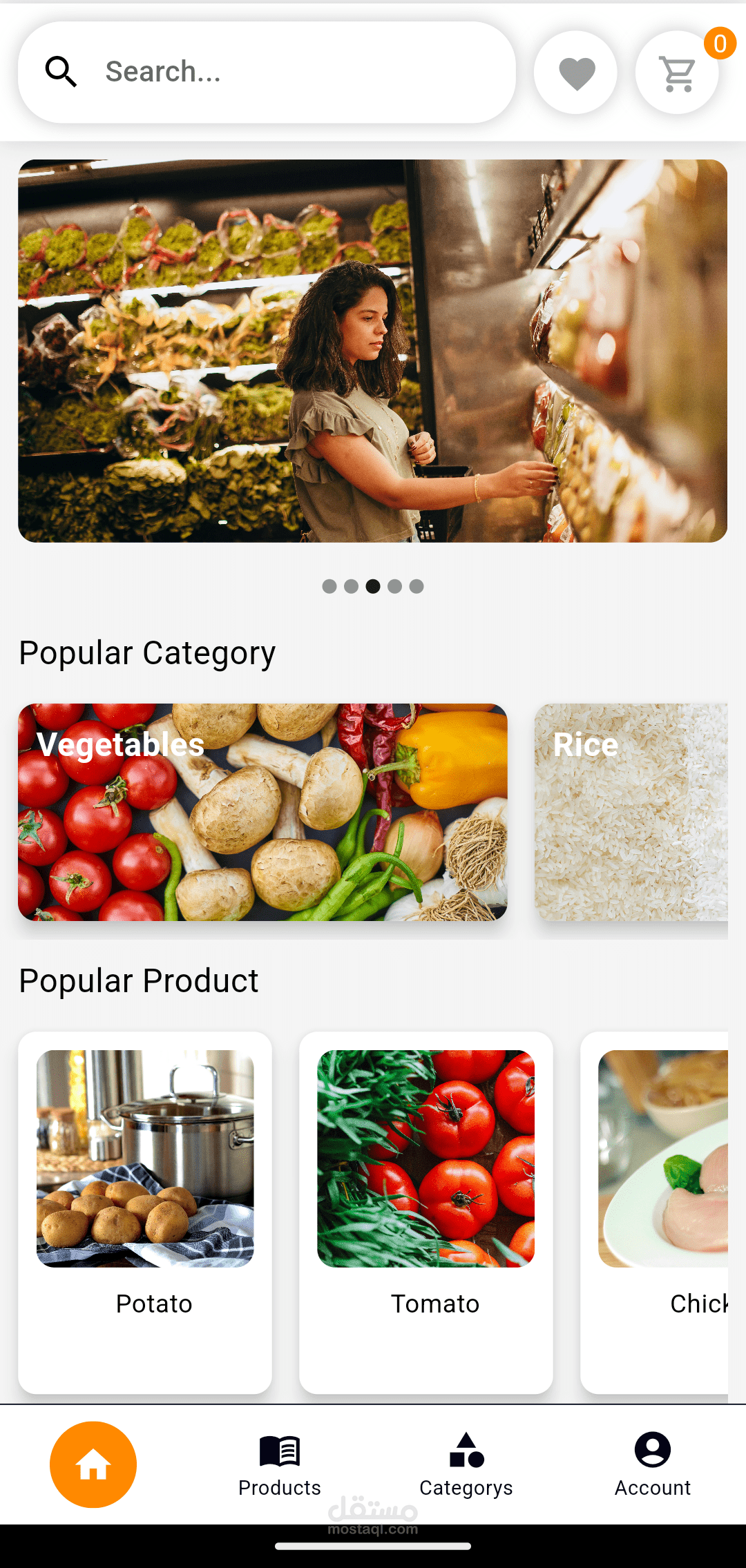 هذا تطبيق متجر إلكتروني للمنتجات الغذائية، مصمم لتقديم تجربة تسوق سهلة وسريعة للمستخدمين. يحتوي على واجهة مستخدم أنيقة ومنظمة تعرض المنتجات بشكل جذاب مع صور واضحة وأسعار محدثة. يوفر التطبيق تصنيفات متنوعة لتسهيل الوصول إلى الأقسام المختلفة مثل: خضروات، فواكه، لحوم، أسماك وغيرها.