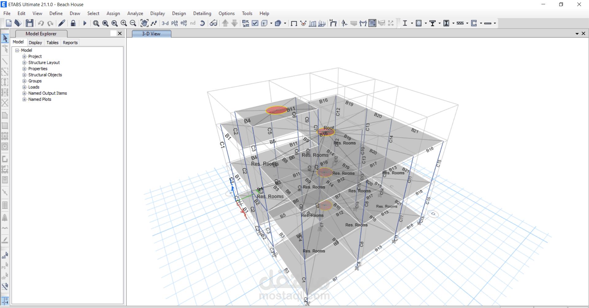 صممت النموذج الإنشائي لمنزل شاطئ عجمان باستخدام برنامج ETABS مع الأخذ بعين الاعتبار الظروف البيئية للموقع الساحلي مثل الرياح العالية والرطوبة. تم تحليل النظام الإنشائي وتصميم جميع العناصر الأساسية وفقاً للكودات المعتمدة، مما وفر هيكلًا متينًا وآمنًا يدوم طويلاً.
