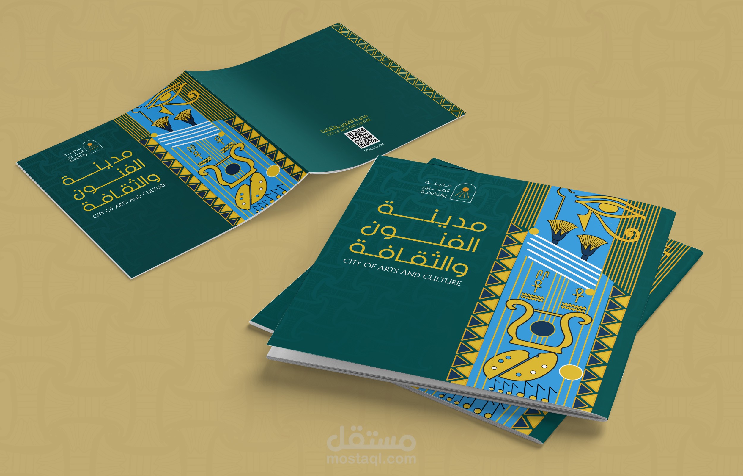 تصميم حملة دعائية ل ( مدينة الفنون والثقافة ) وهى مدينة مصرية لذلك قمت بدمج  الفنون والثقافة بالحضارة الفرعونية لتعبر عن الهوية المصرية