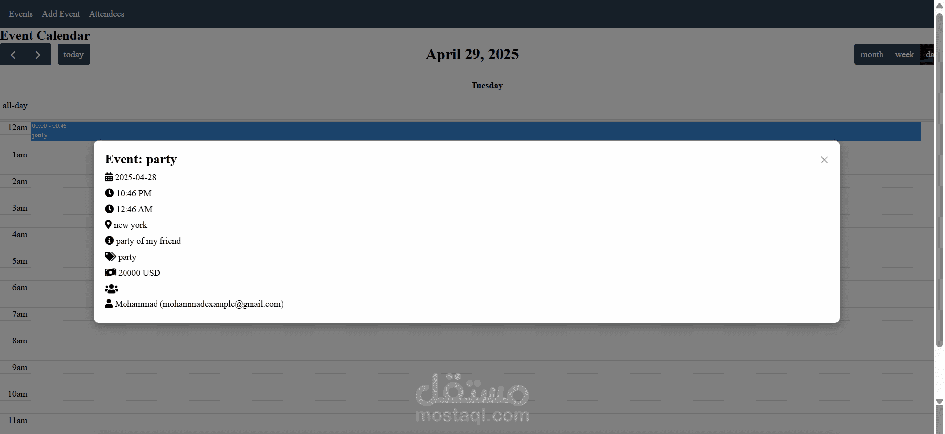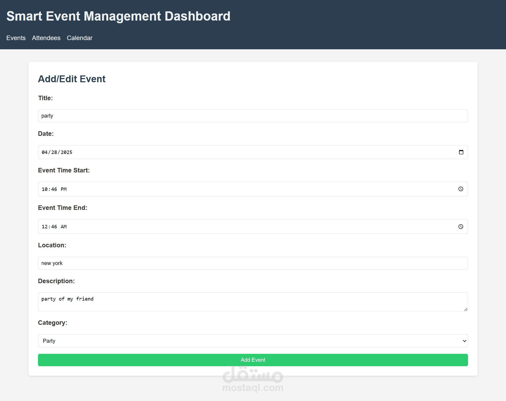 Add/edit events with full details